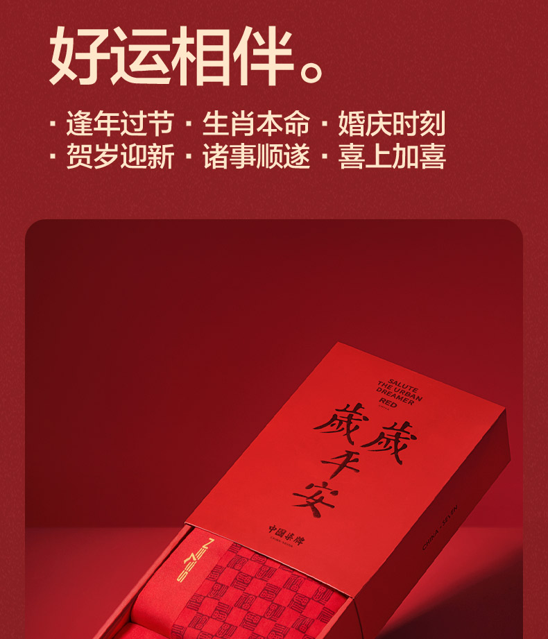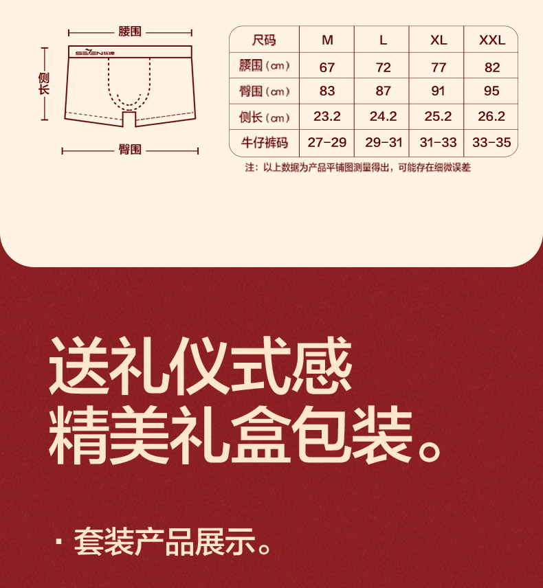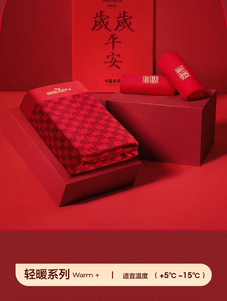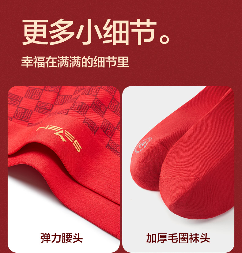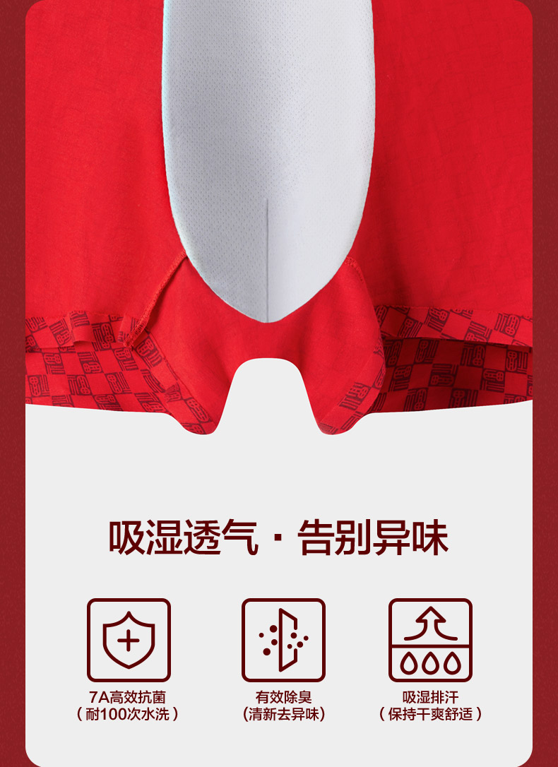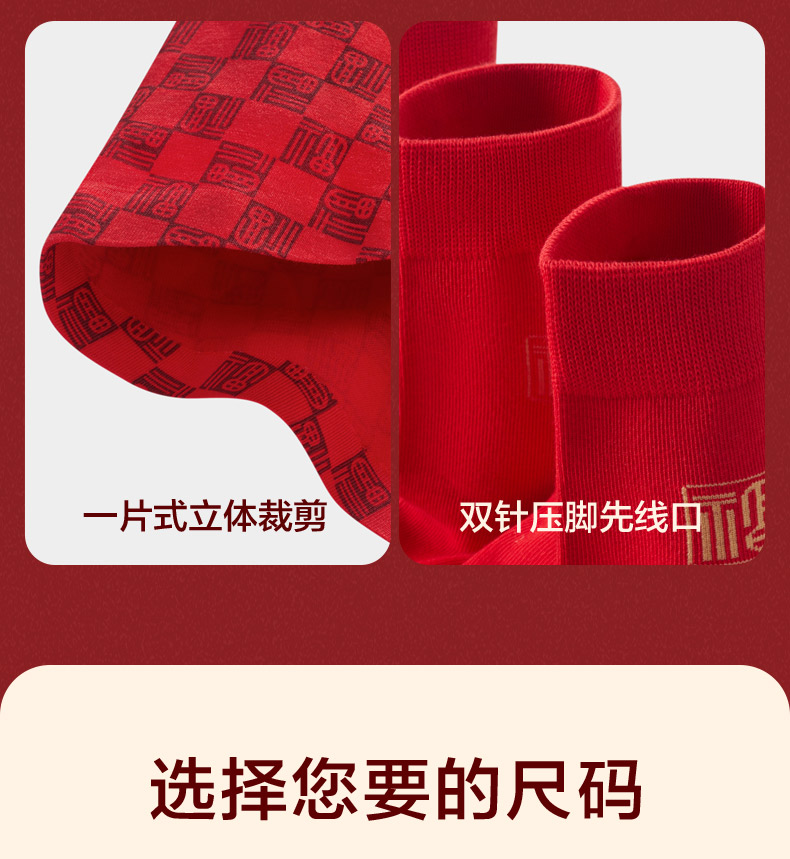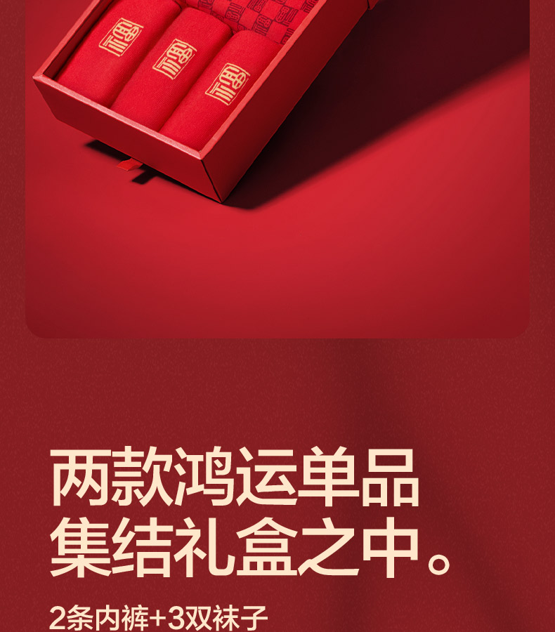 柒牌男士鸿运套装内裤袜子组合套装本命年新年红色平角内裤礼盒装129F70460