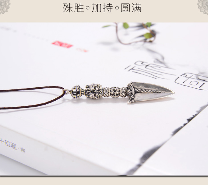 天语龙吟纯银精工普巴金刚橛挂件 银普巴杵佩戴男女款吊坠