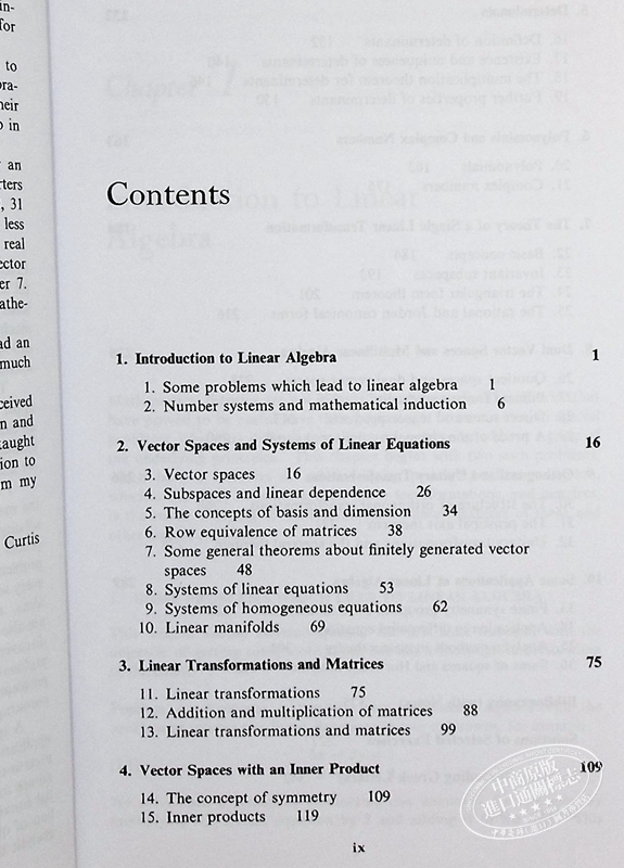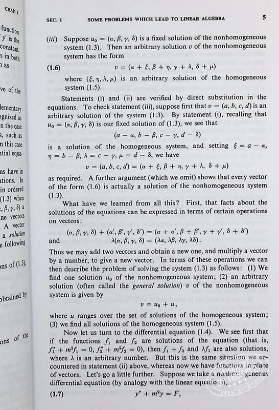 为线性代数高分课程设计的第四版修订和更新包括域上向量空间、行列式、单线性变换理论和内积空间的基本结果。虽然它不以较早的课程为前提,但讨论中涉及了线性代数和微积分之间的许多联系。一个特点是包含了专门用于线性代数应用的部分,这些部分可以是课程的一部分,也可以用于独立学习,本版的新内容是矩阵理论中的分析方法部分,适用于马尔可夫链在概率论中。包括所有主要定理的证明,并与解决数值问题的方法同等地提出。几乎每个部分都集成了工作示例,以带出定理的含义,并说明解决问题的技巧。许多数值练习利用了所有的想法,并培养了计算技能,而理论性质的练习则为学生提供了自己发现的机会。