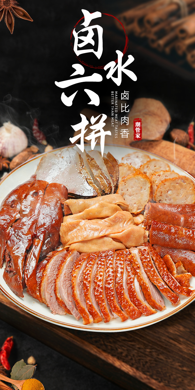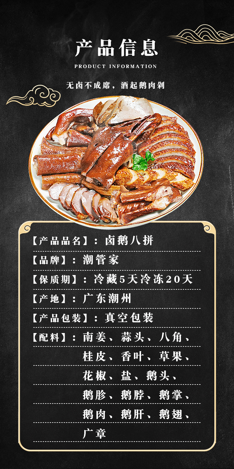 狮头鹅八拼拼盘(750g: 鹅肉200g+鹅头100g+鹅脖100g+粉肝100g+鹅掌50g+鹅翅50g+鹅珍50g+广章100g)