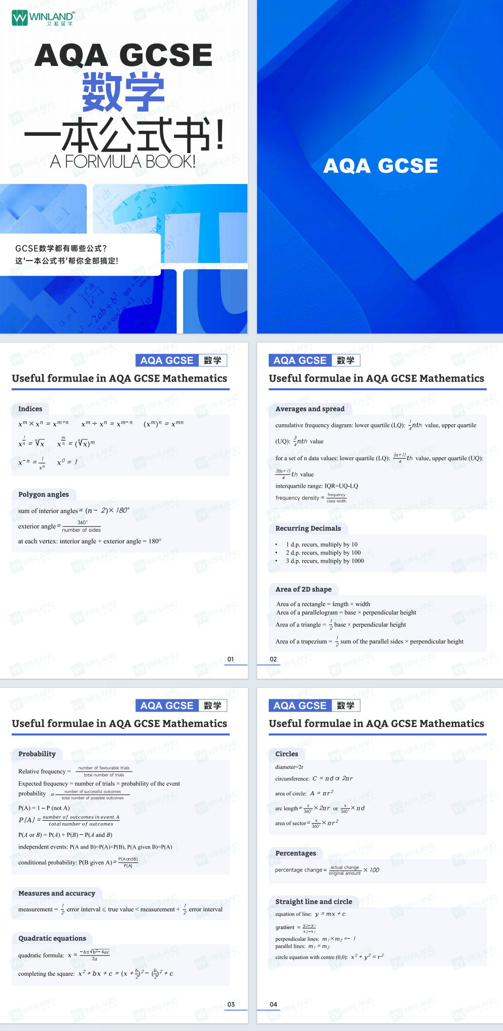 一本书,帮你搞定GCSE全部数学公式!高清PDF版本,每本8-10页