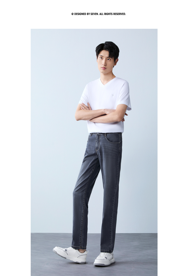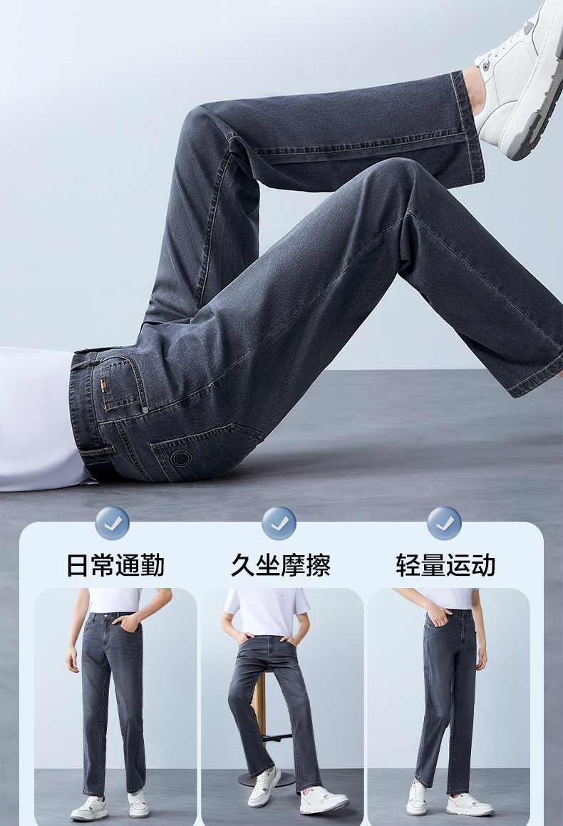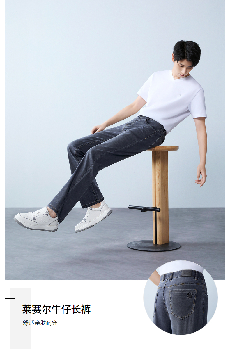 【含莱赛尔】柒牌男装2026春季直筒中弹耐磨亲肤商务休闲牛仔长裤130H70810