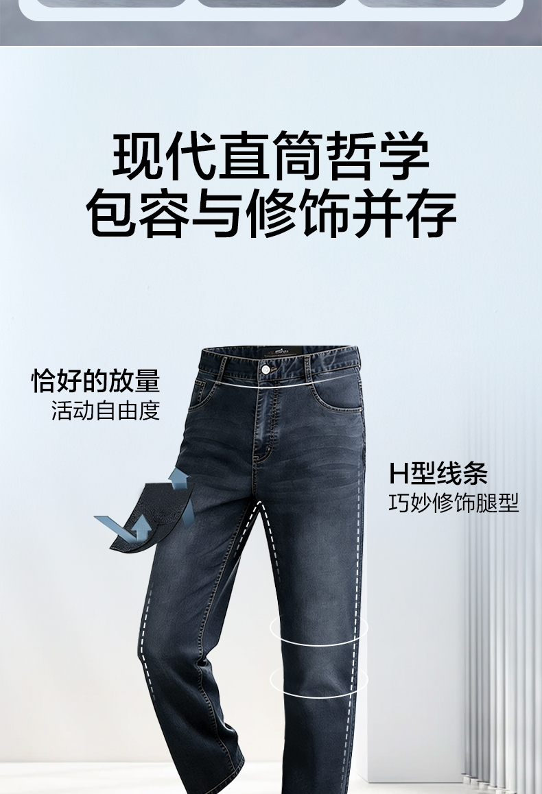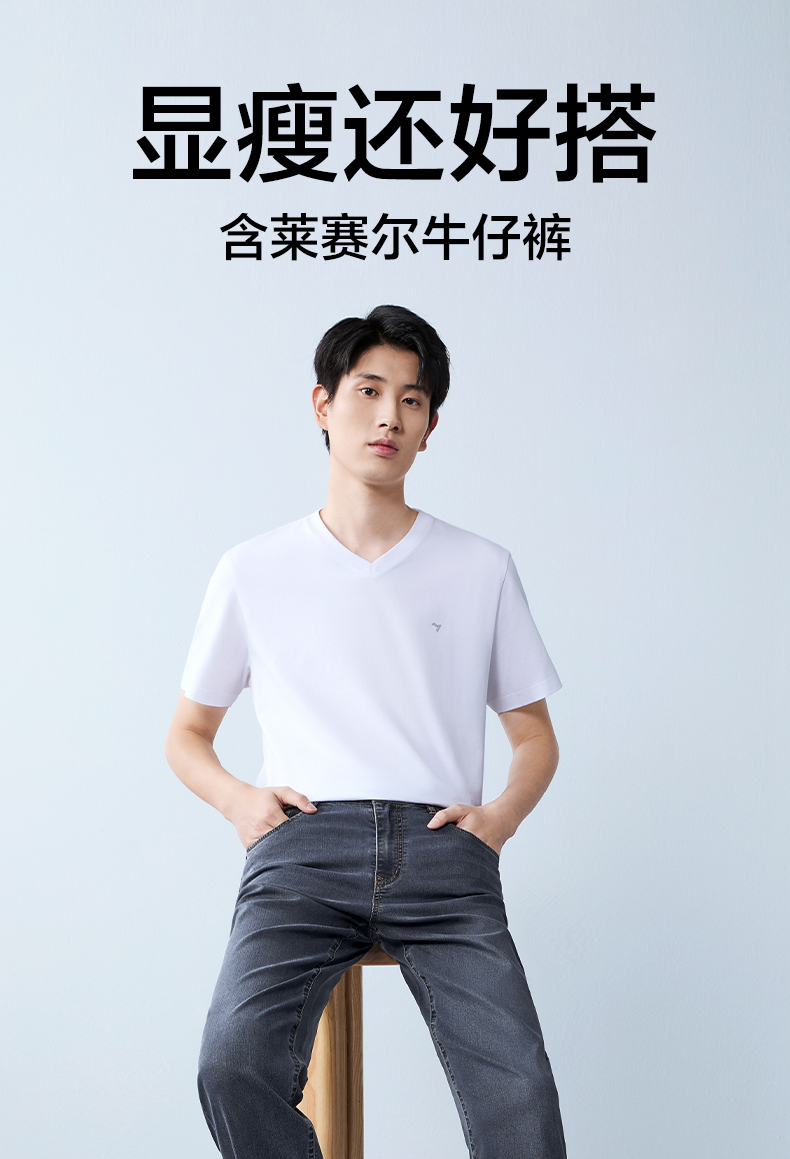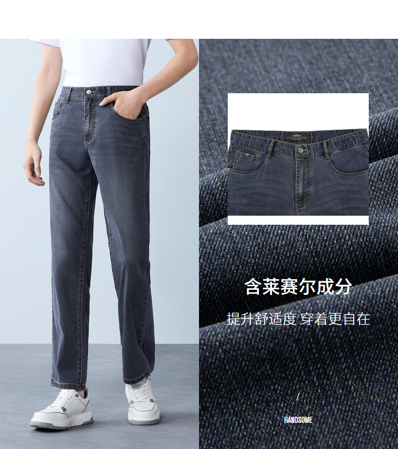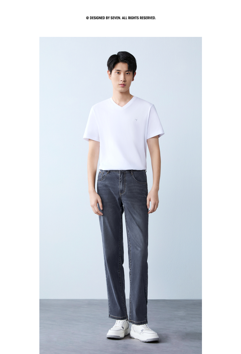 【含莱赛尔】柒牌男装2026春季直筒中弹耐磨亲肤商务休闲牛仔长裤130H70810