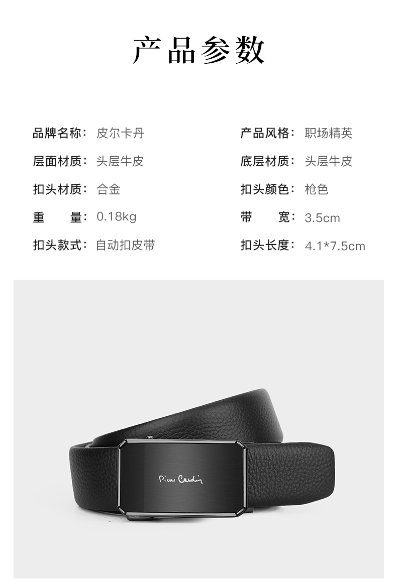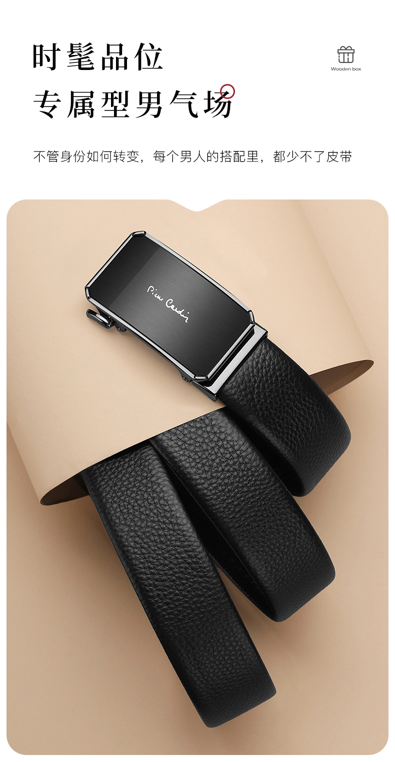 皮尔卡丹男士牛皮皮带自动扣官方正品都市休闲腰带