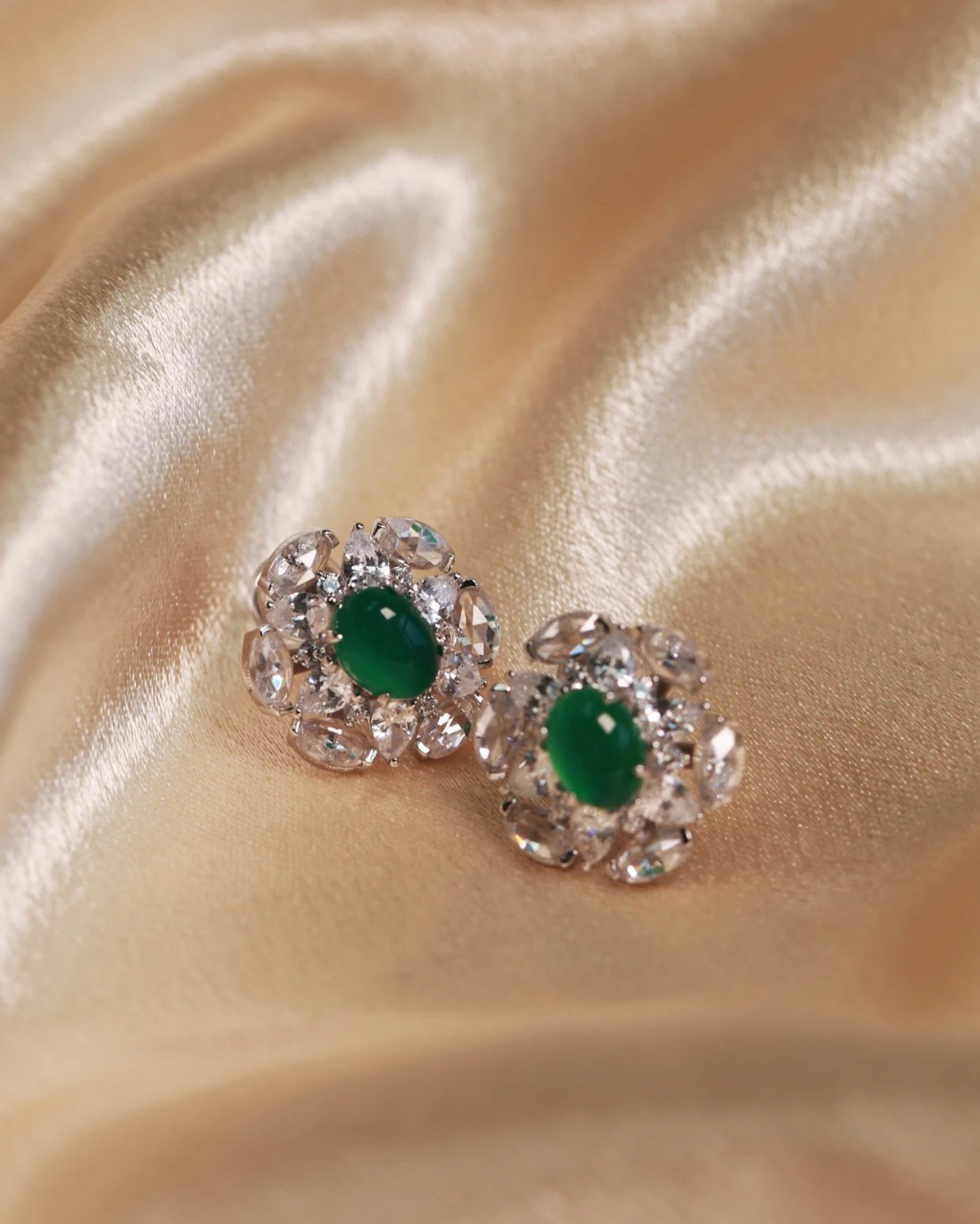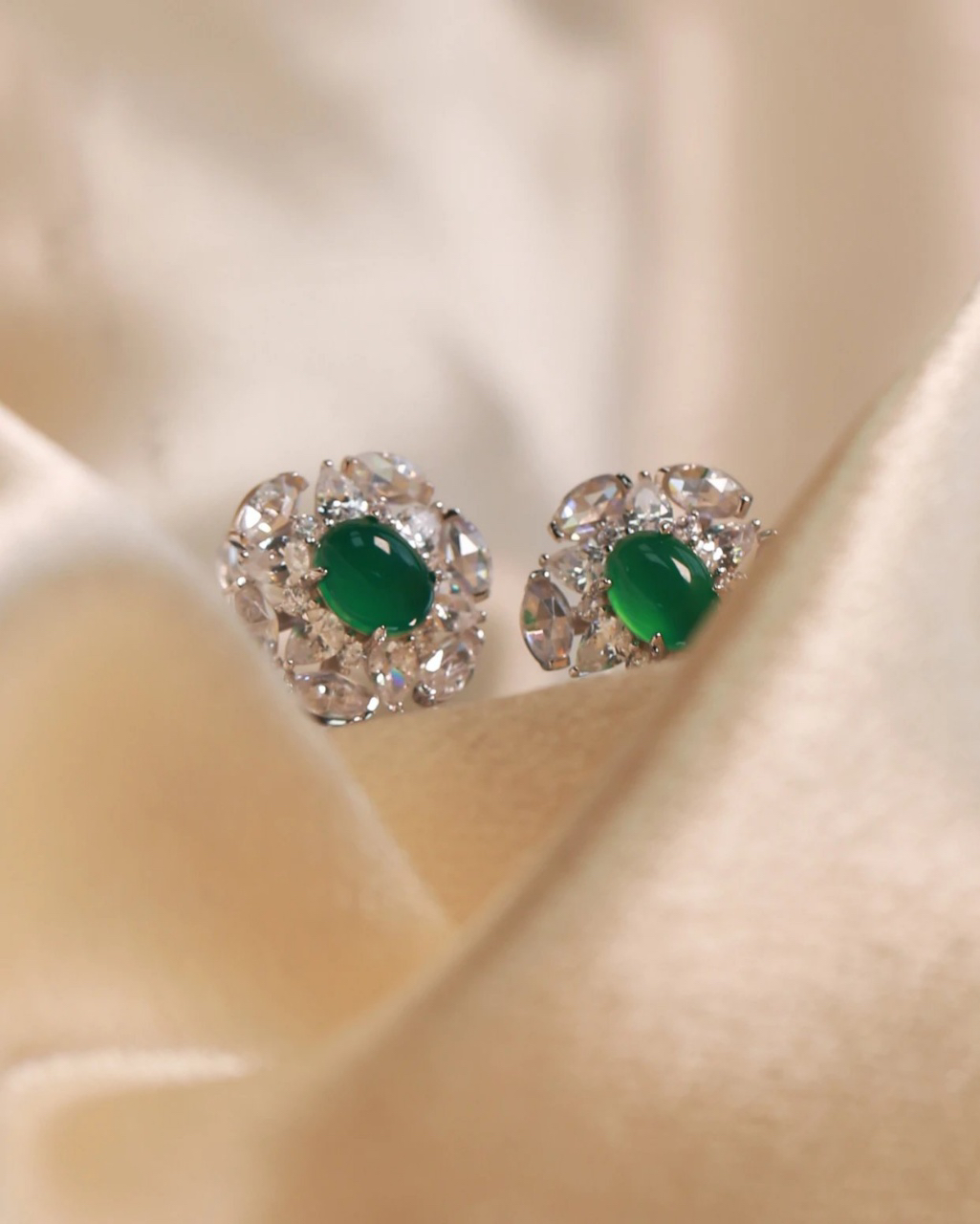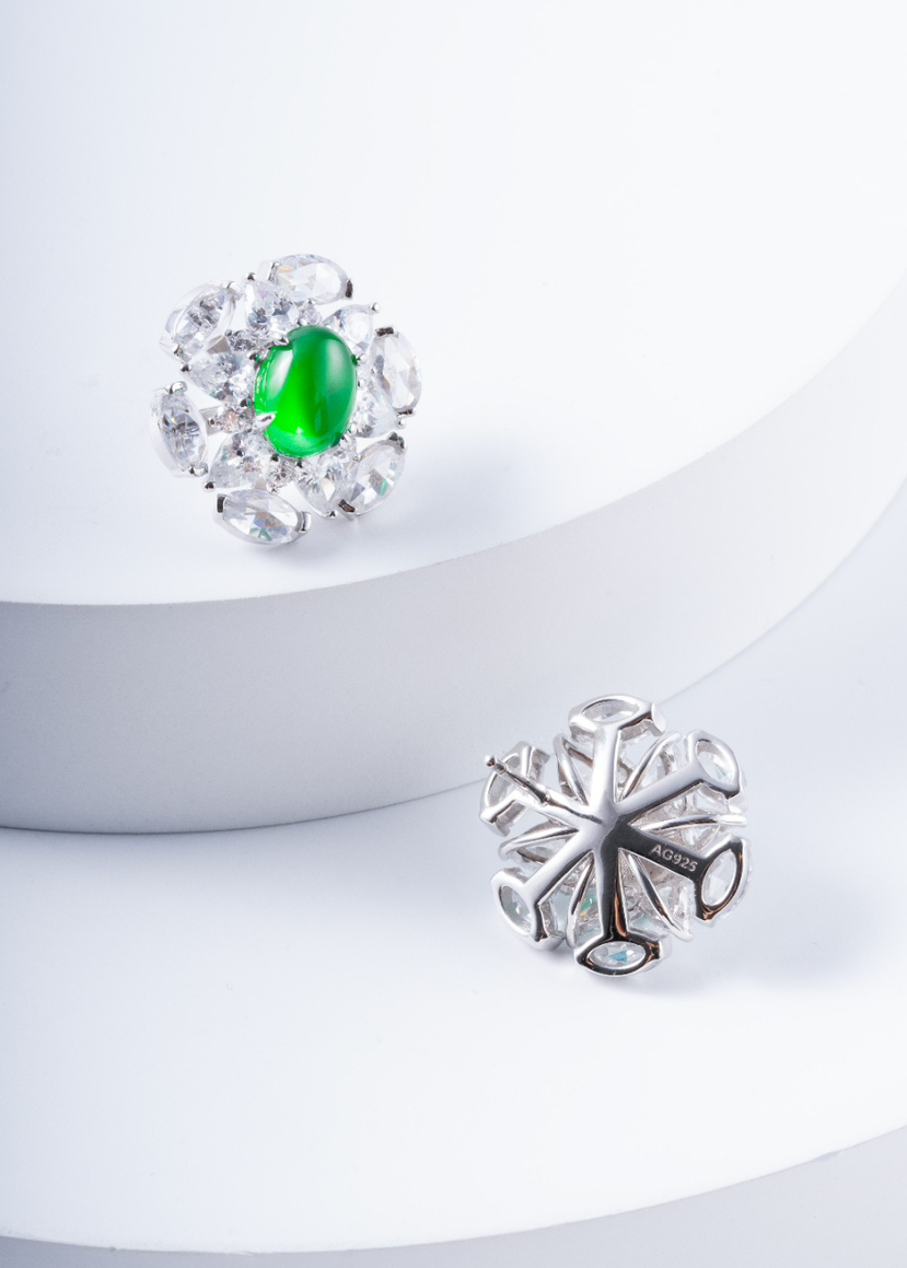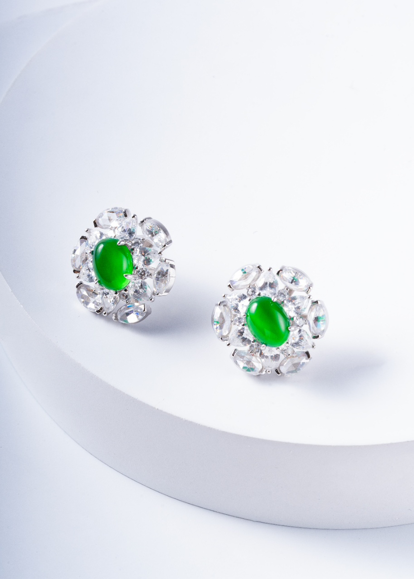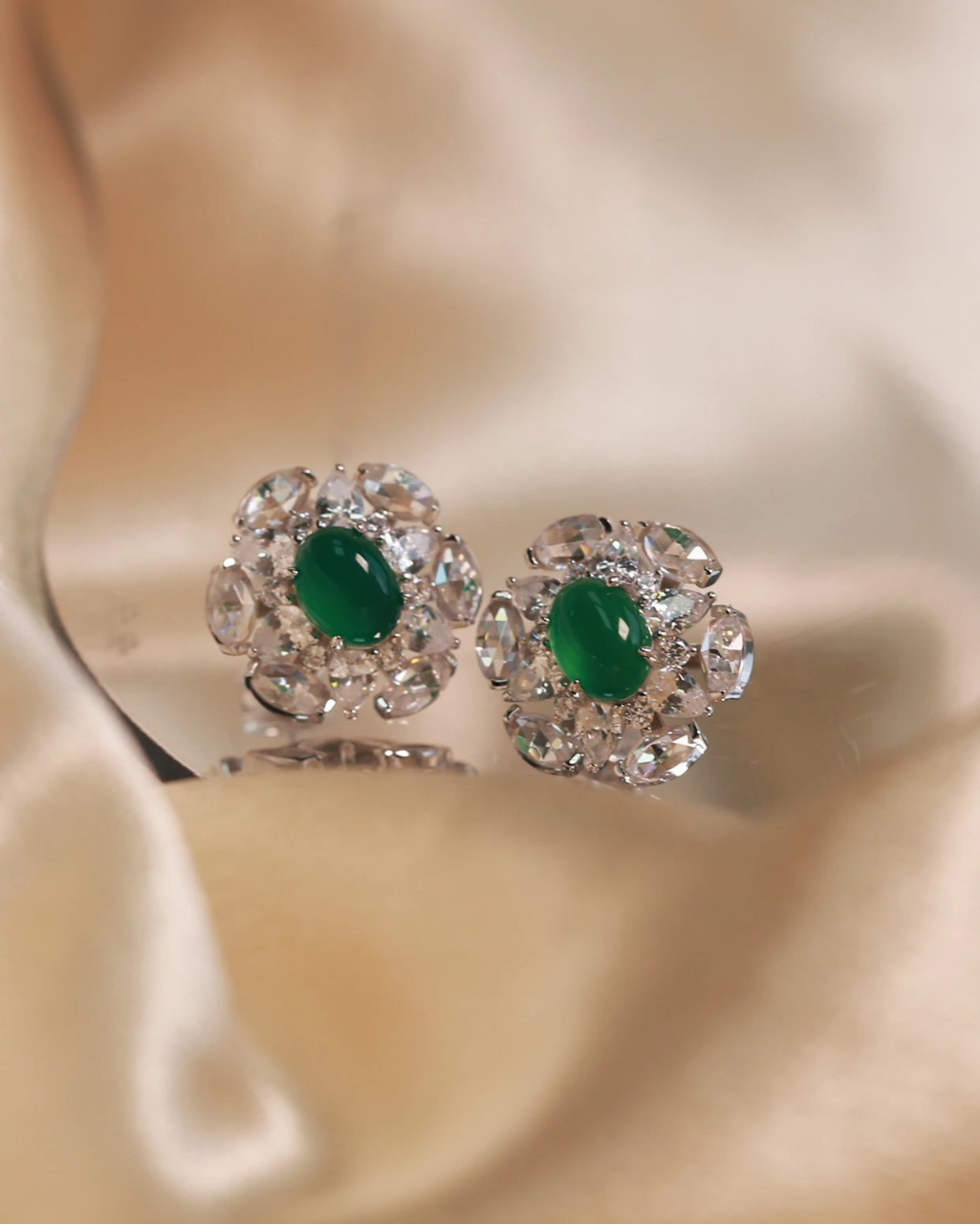 烟花易冷,绿玉髓烟花耳钉不会冷,你们看过视频的,这个底托要分件一点点打磨,即便是如此小蛋面,也是一个个挑选,三分之二不能用,分件+全手镶,天花板级别的绿玉髓用料,这一点而言是有点难度在的