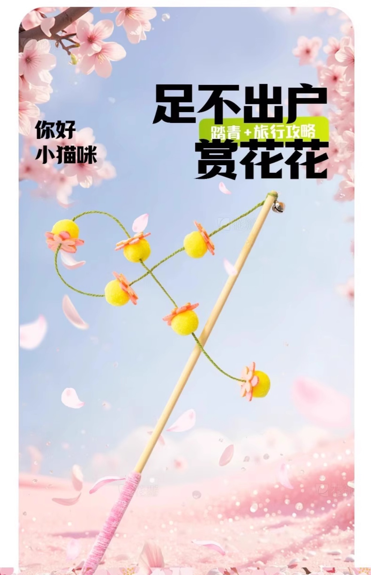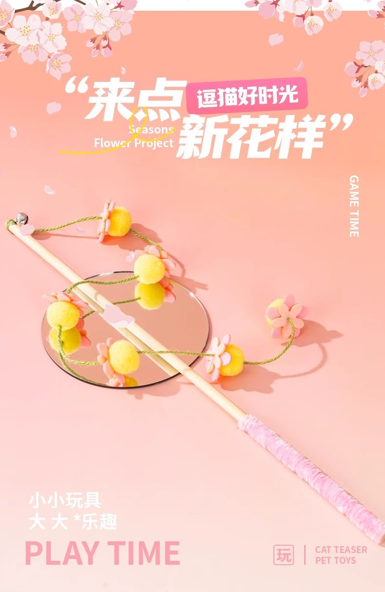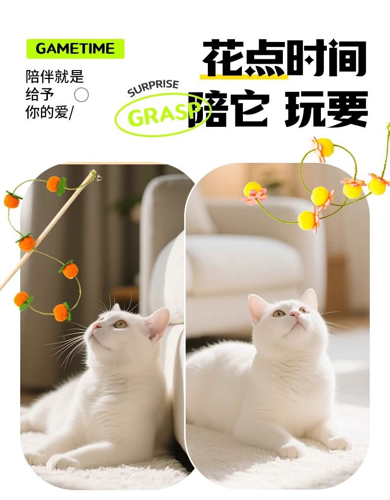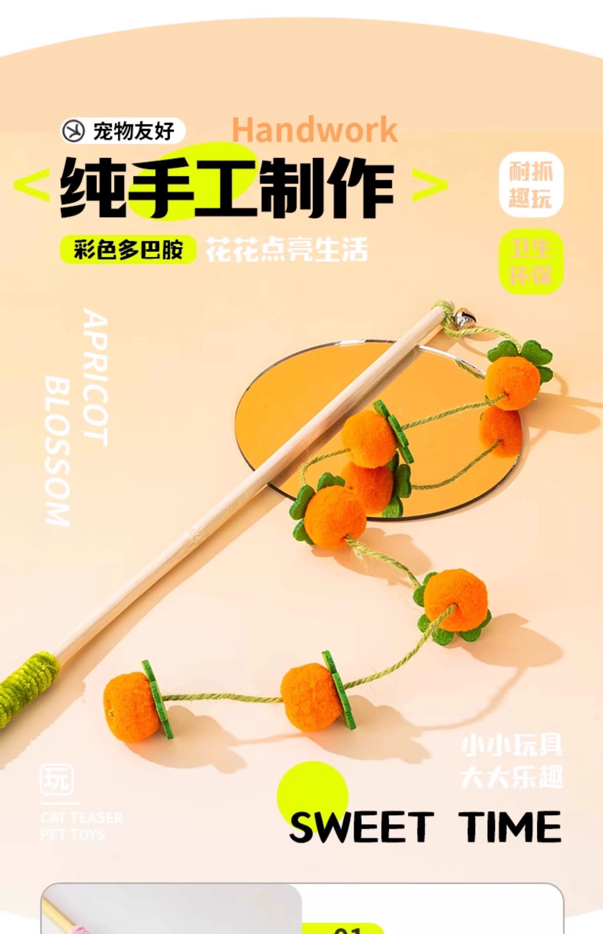 柿子毛球逗猫棒 带铃铛 猫咪玩具批发