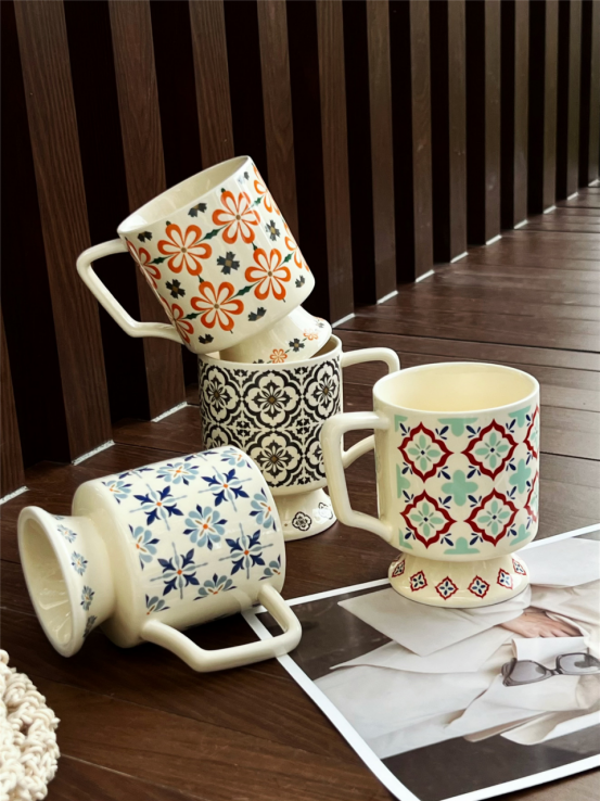 独特的造型搭配复古波西米亚花纹,摆拍都随便出片📸 釉面光滑细腻,质感摸起来十分温润 让喝水的仪式感的