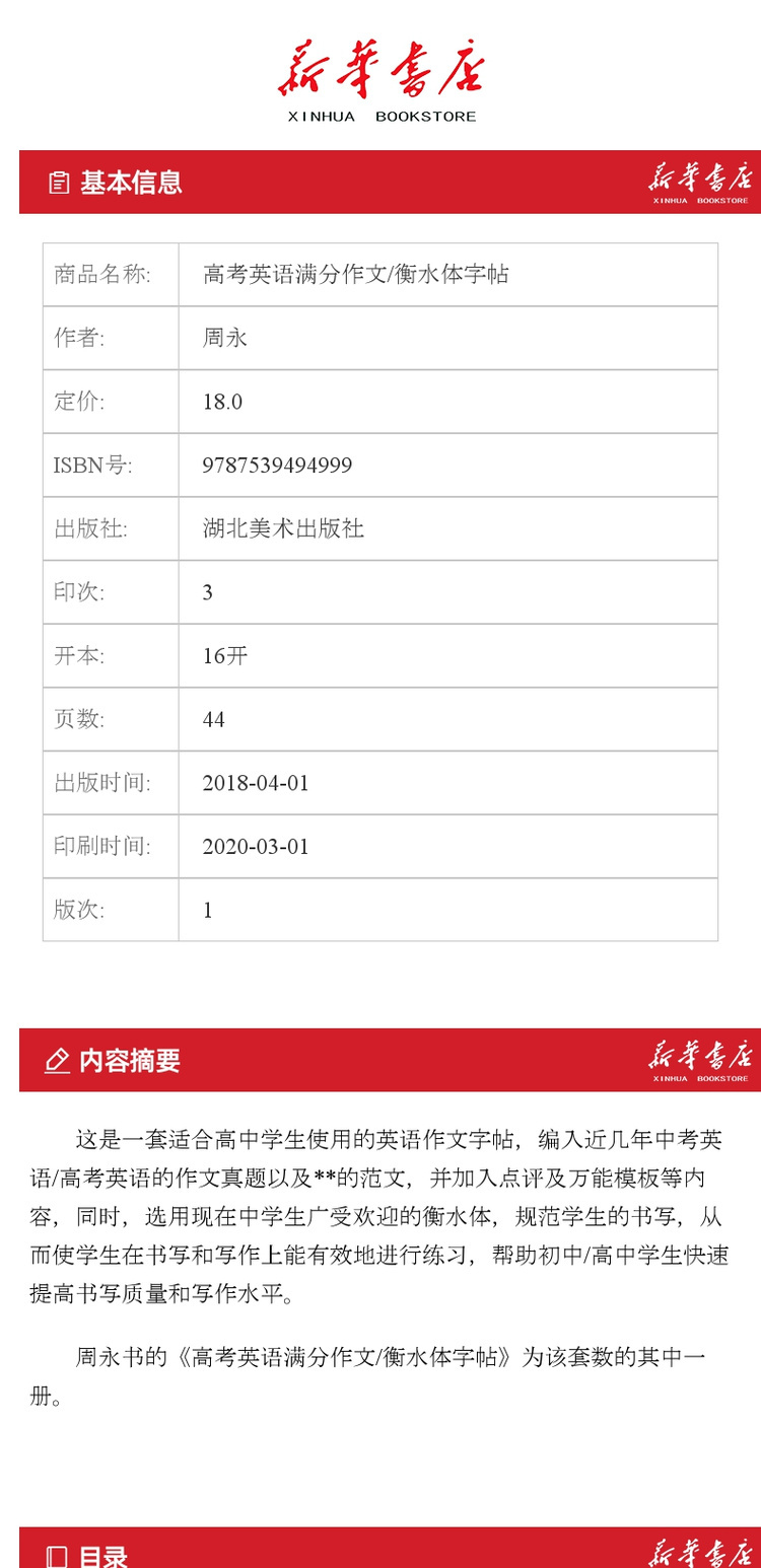 【新华书店旗舰店官网】正版 高考英语满分作文/衡水体字帖