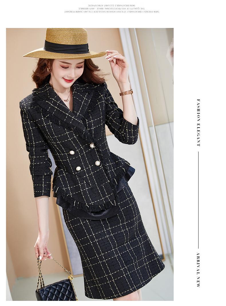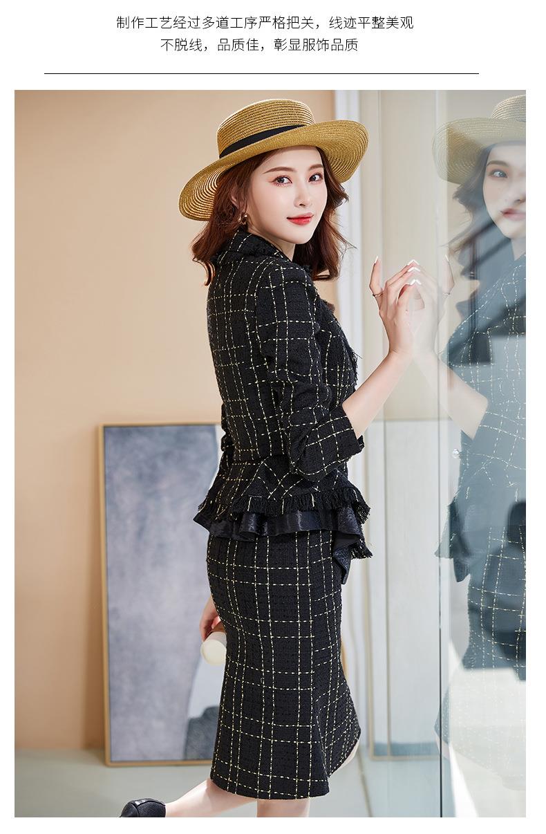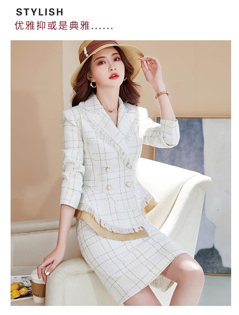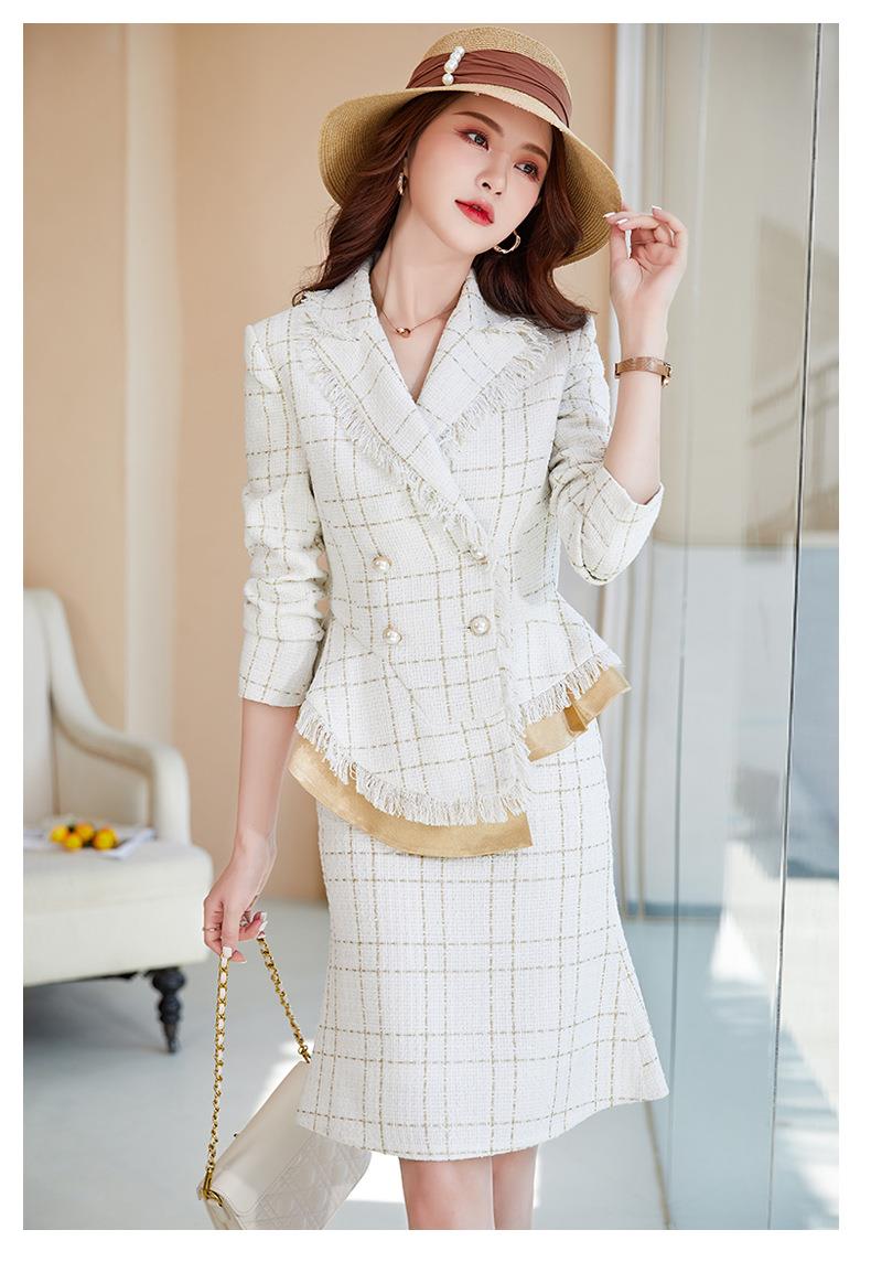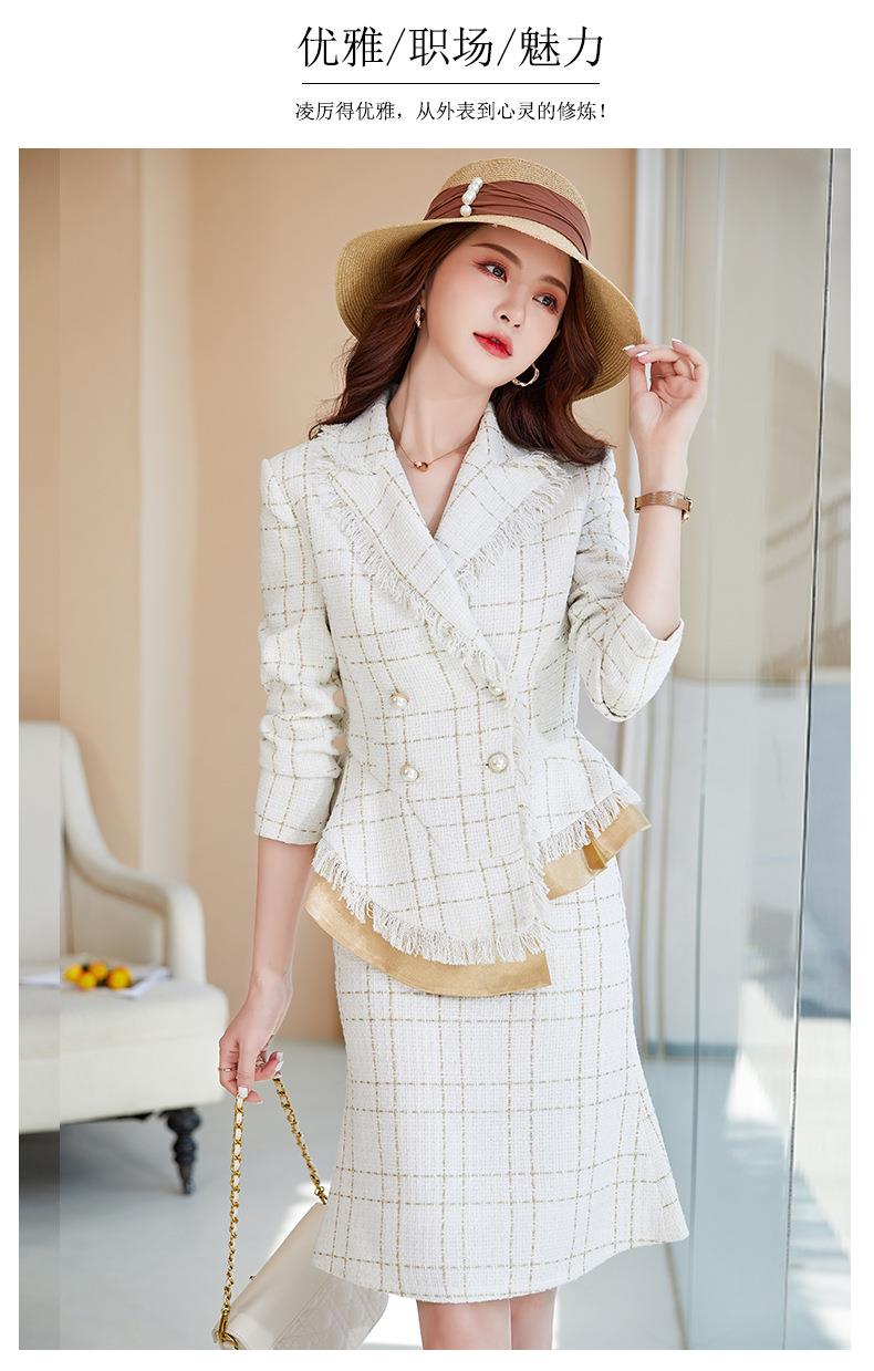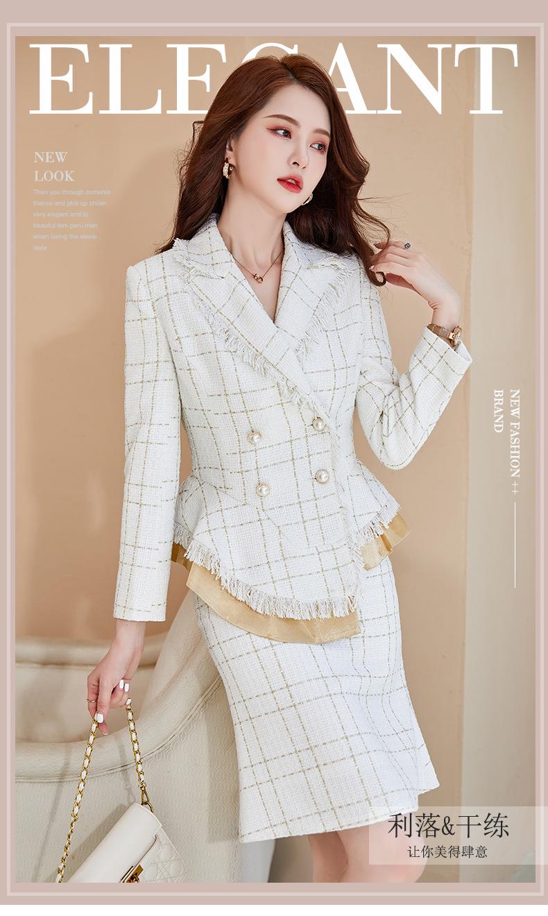 娜璐多 格子高腰裙套装2023春秋休闲气质通勤时尚长袖洋气小香风上衣外套