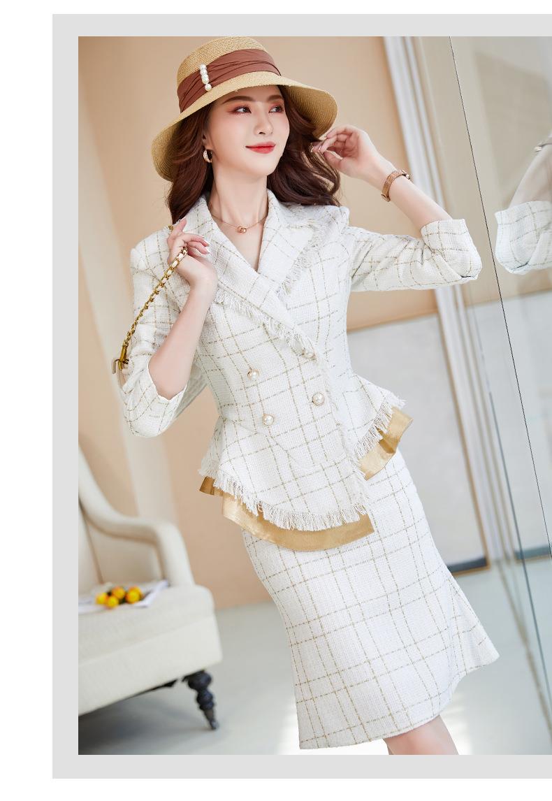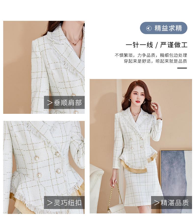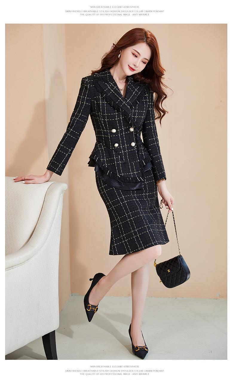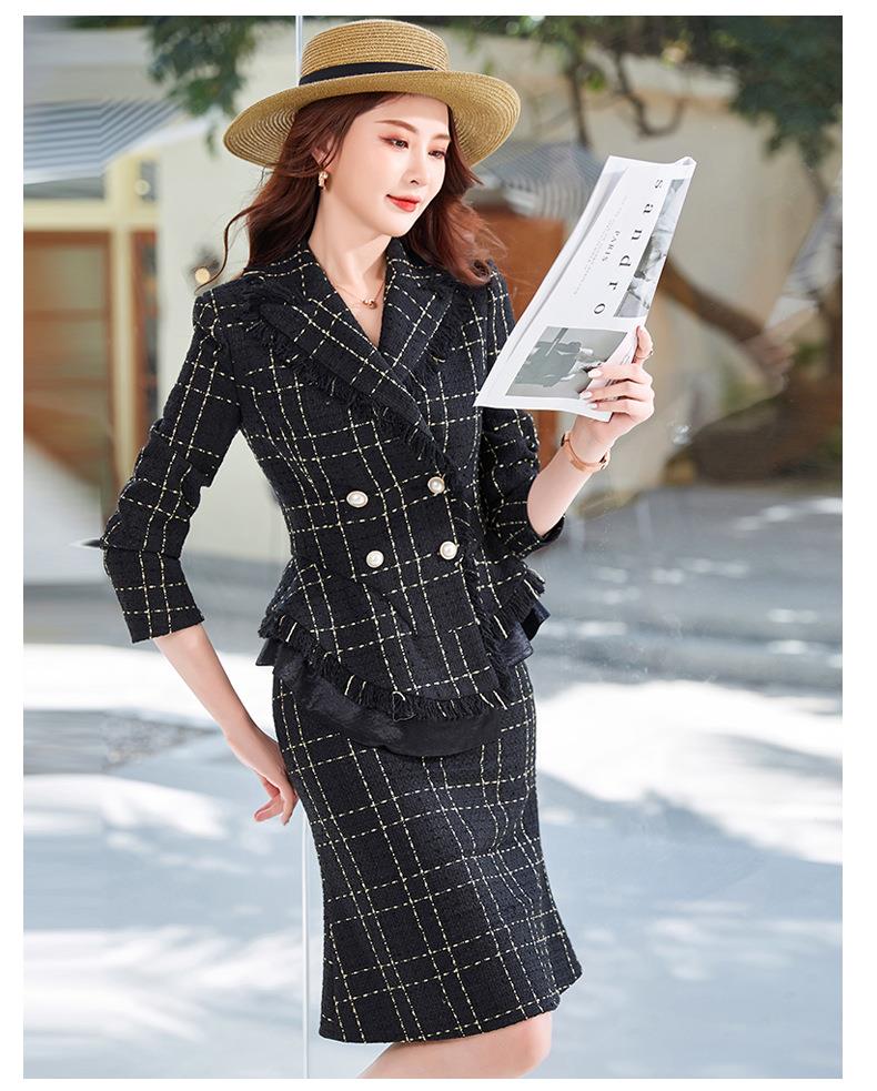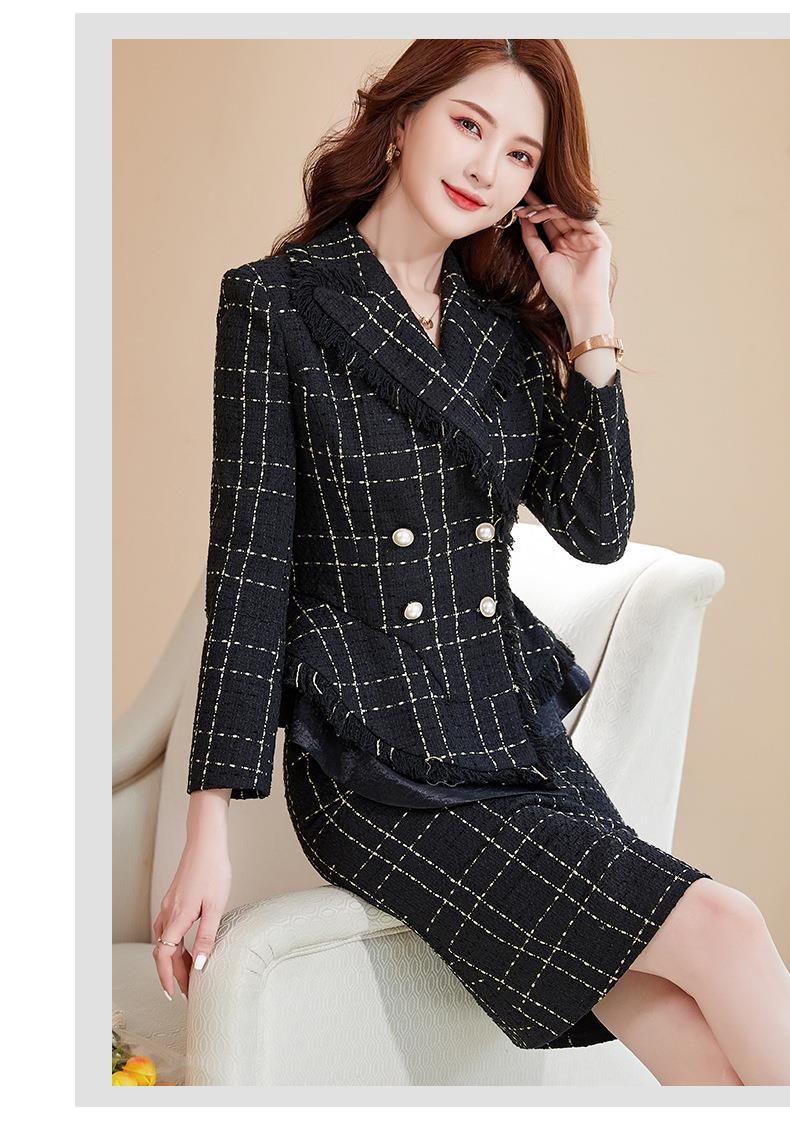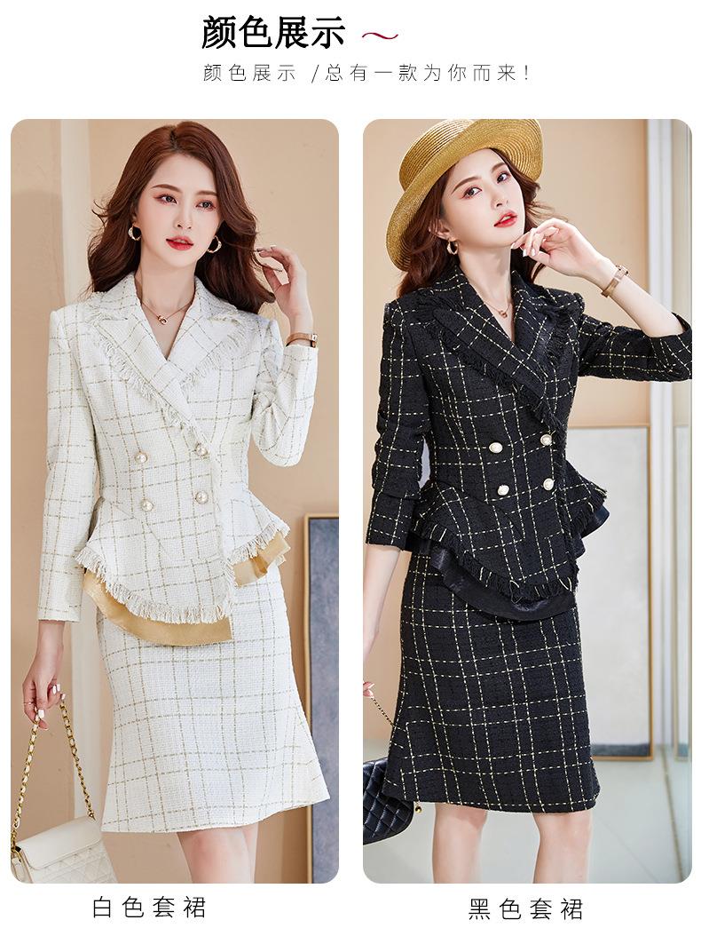 娜璐多 格子高腰裙套装2023春秋休闲气质通勤时尚长袖洋气小香风上衣外套