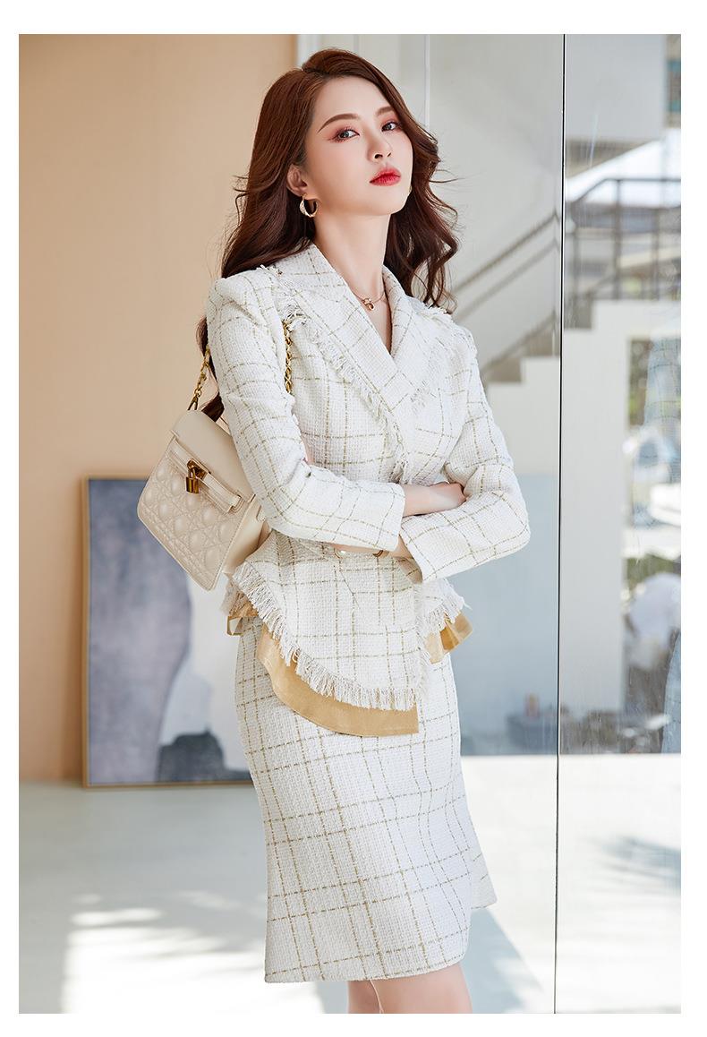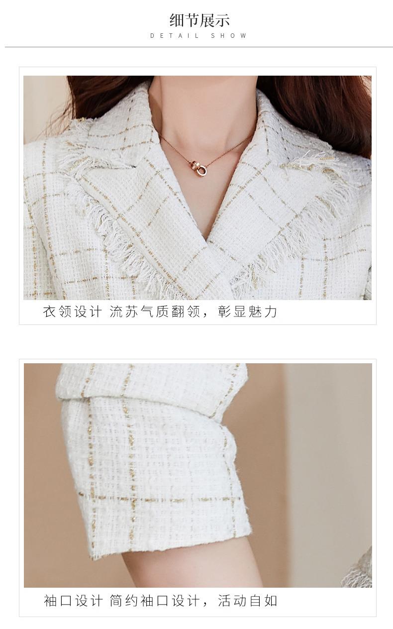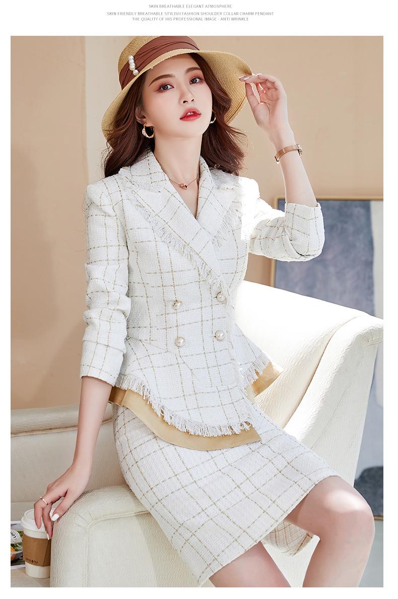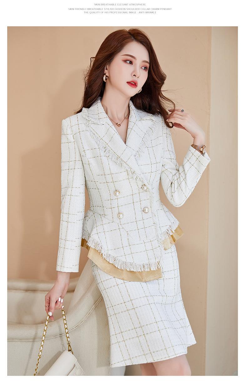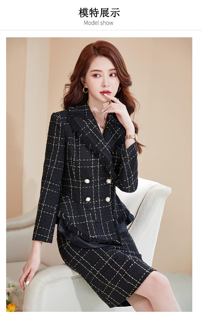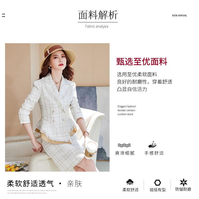 娜璐多 格子高腰裙套装2023春秋休闲气质通勤时尚长袖洋气小香风上衣外套