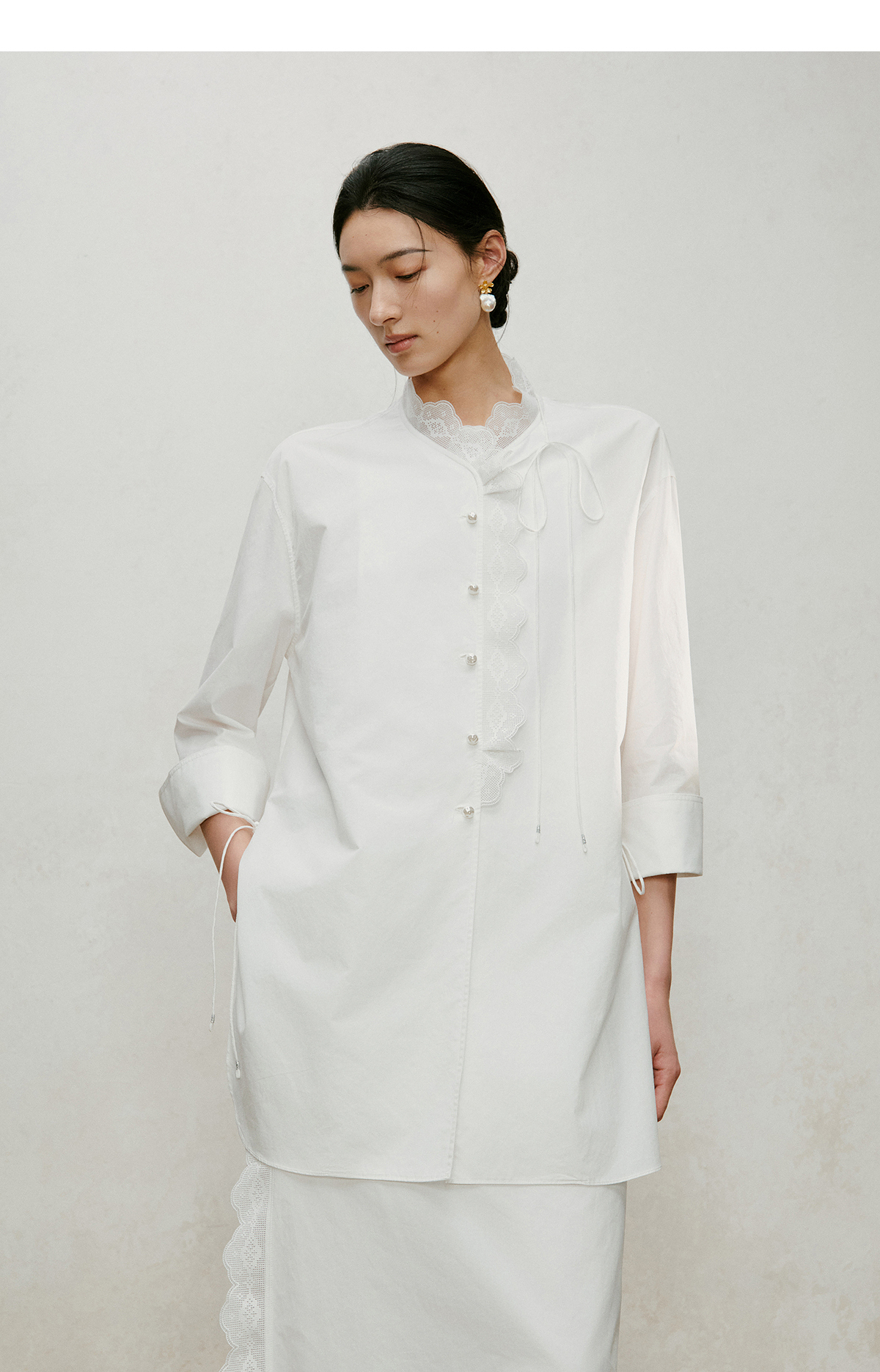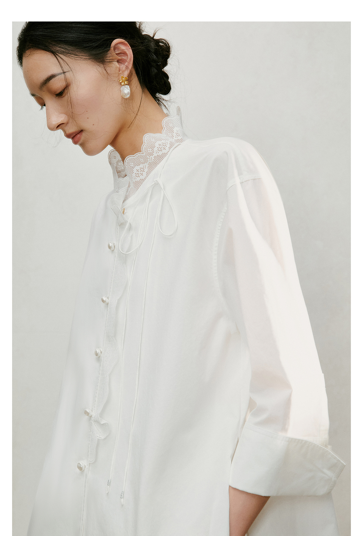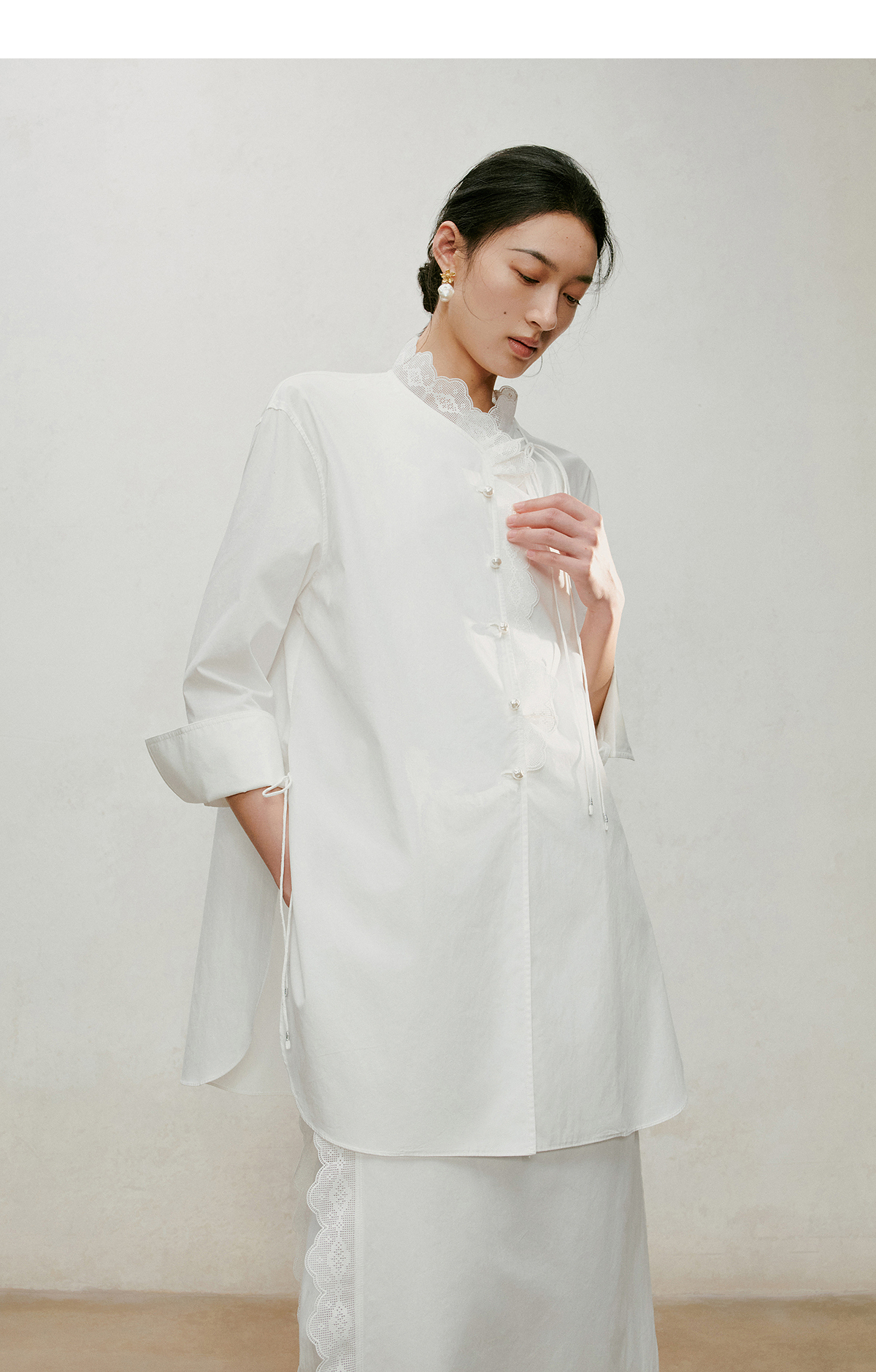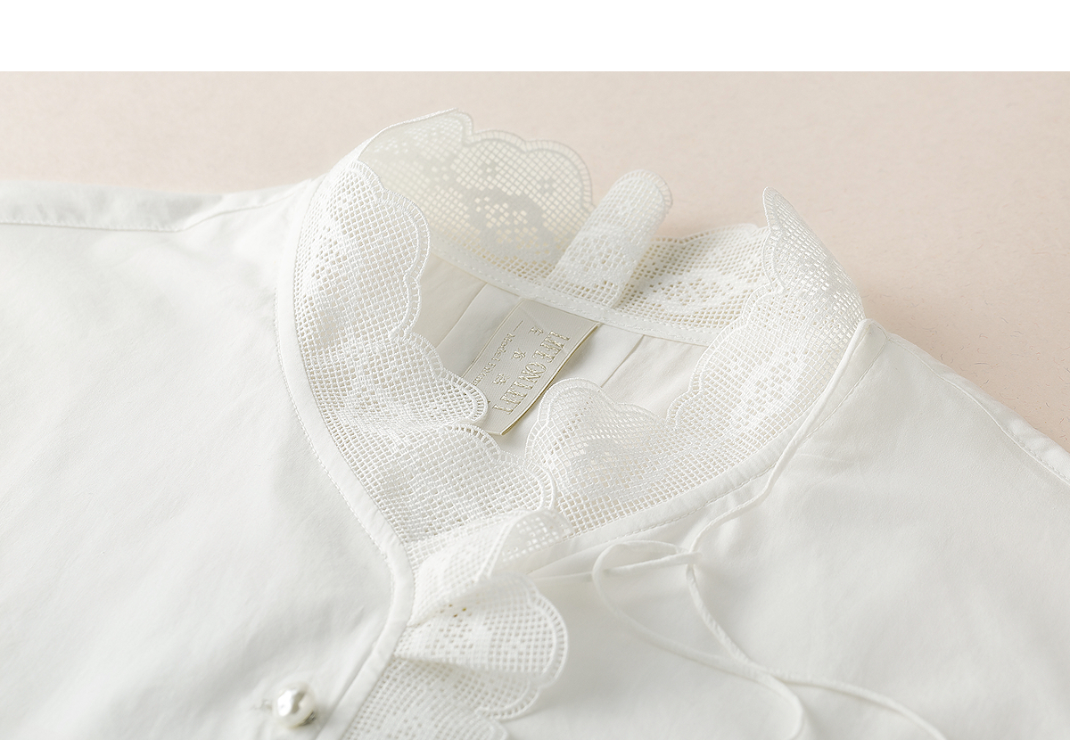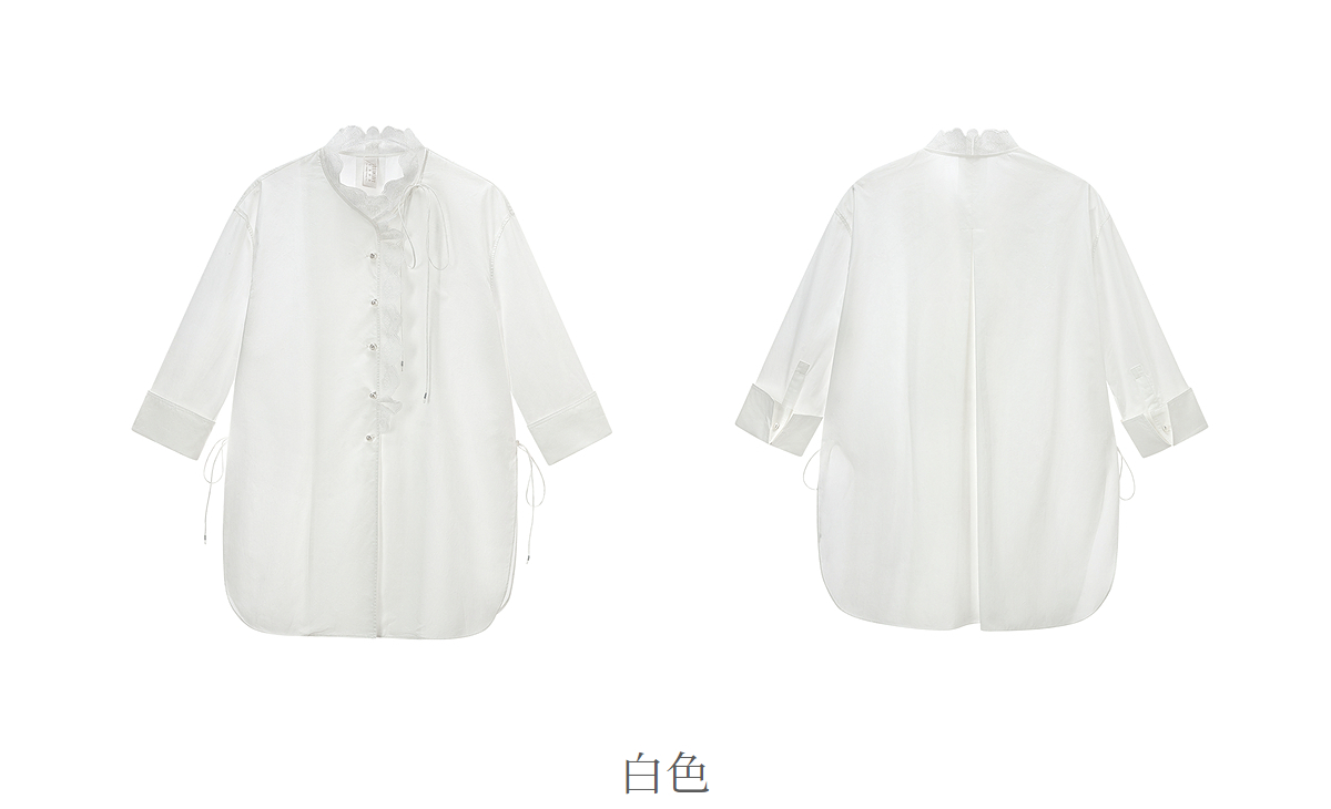 【林栖设计小店】手工系带|白色优雅国风百搭镂空花边2026夏新款纯棉衬衣1962087