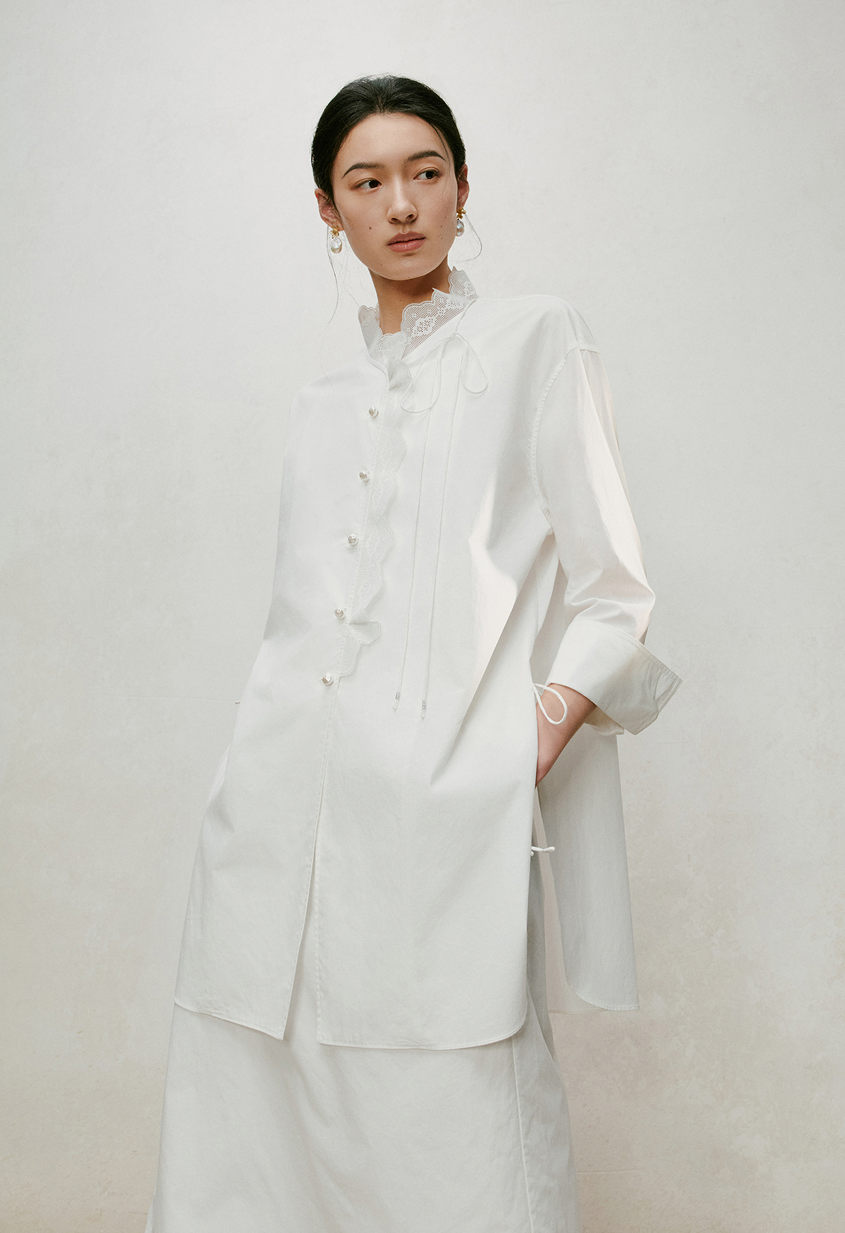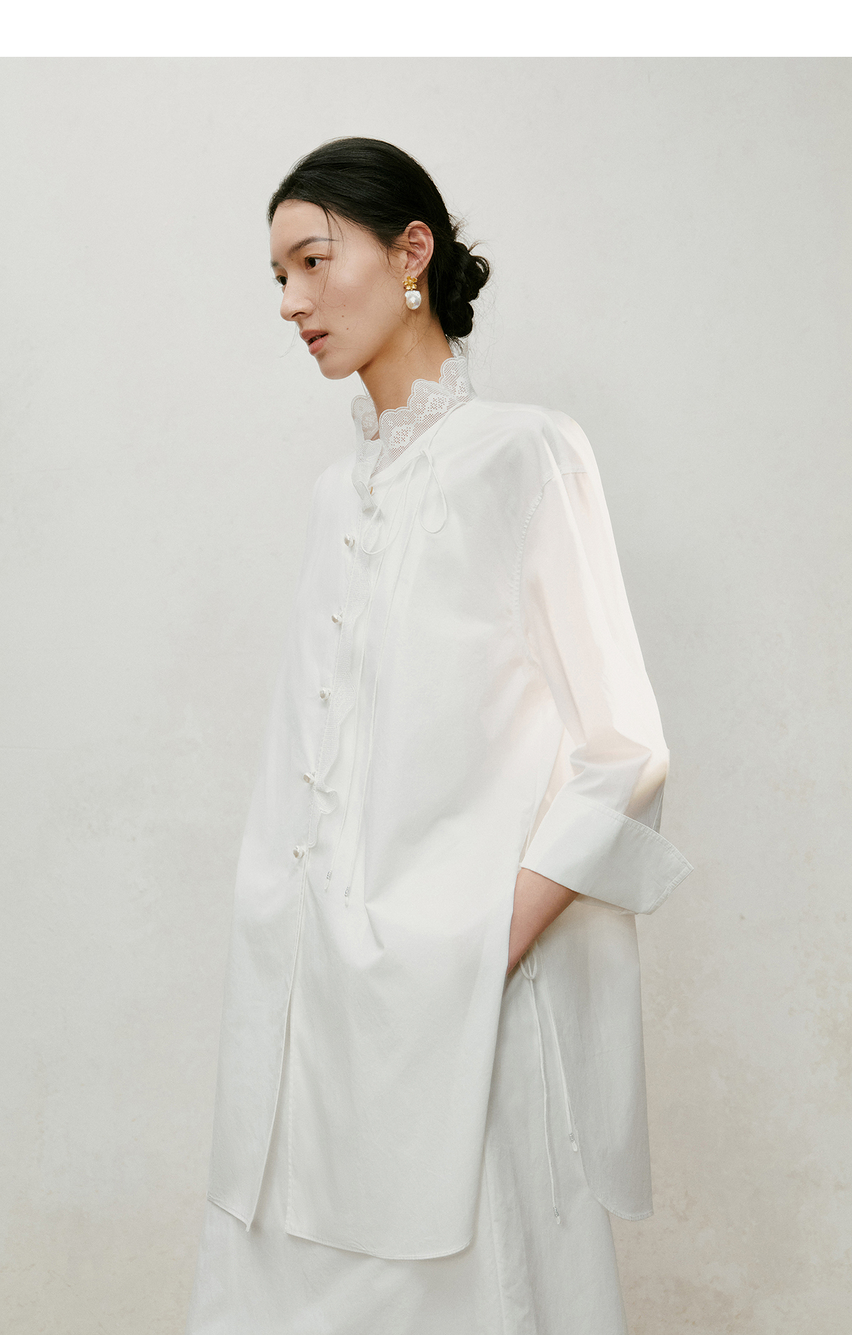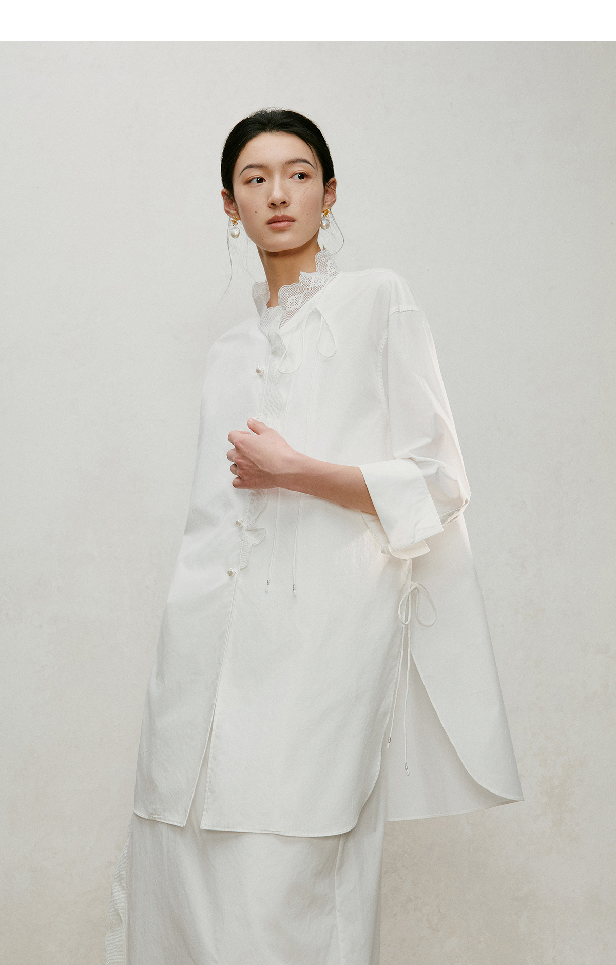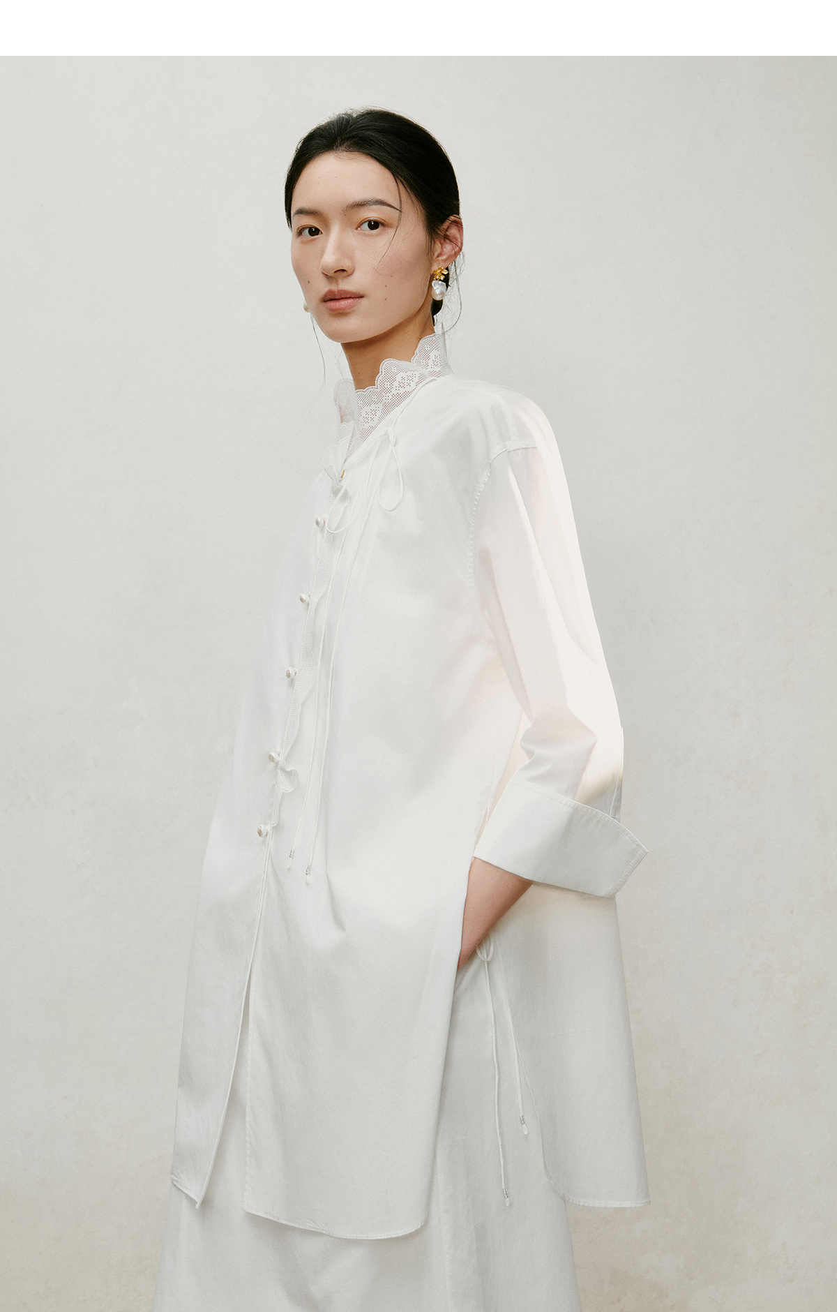 【林栖设计小店】手工系带|白色优雅国风百搭镂空花边2026夏新款纯棉衬衣1962087