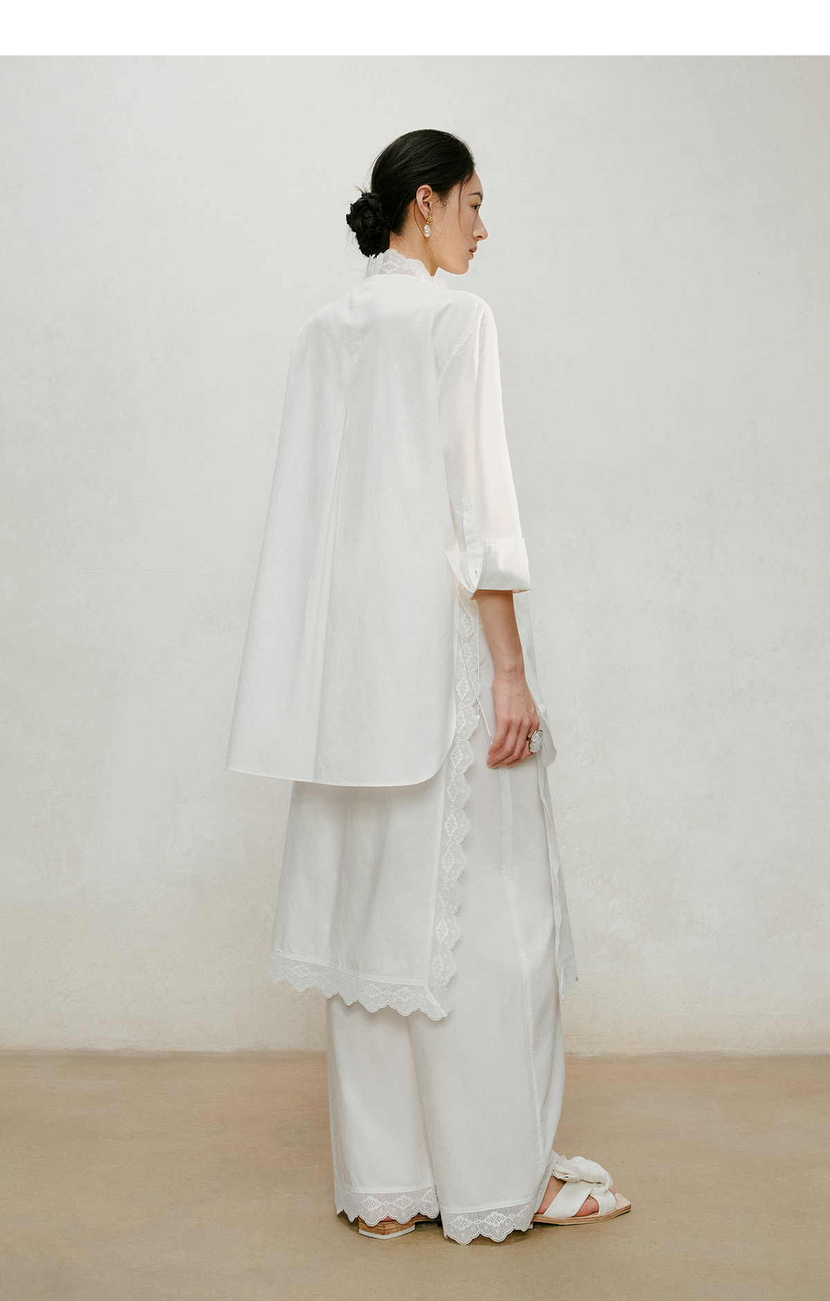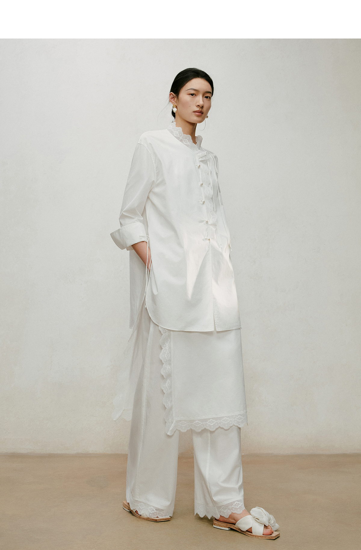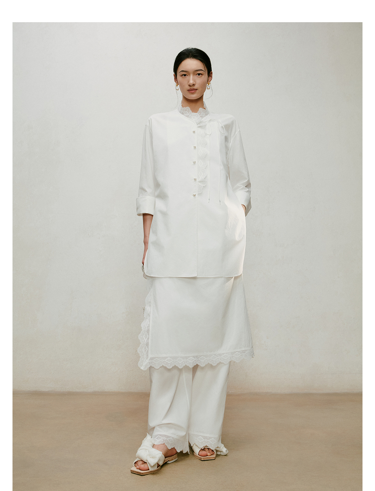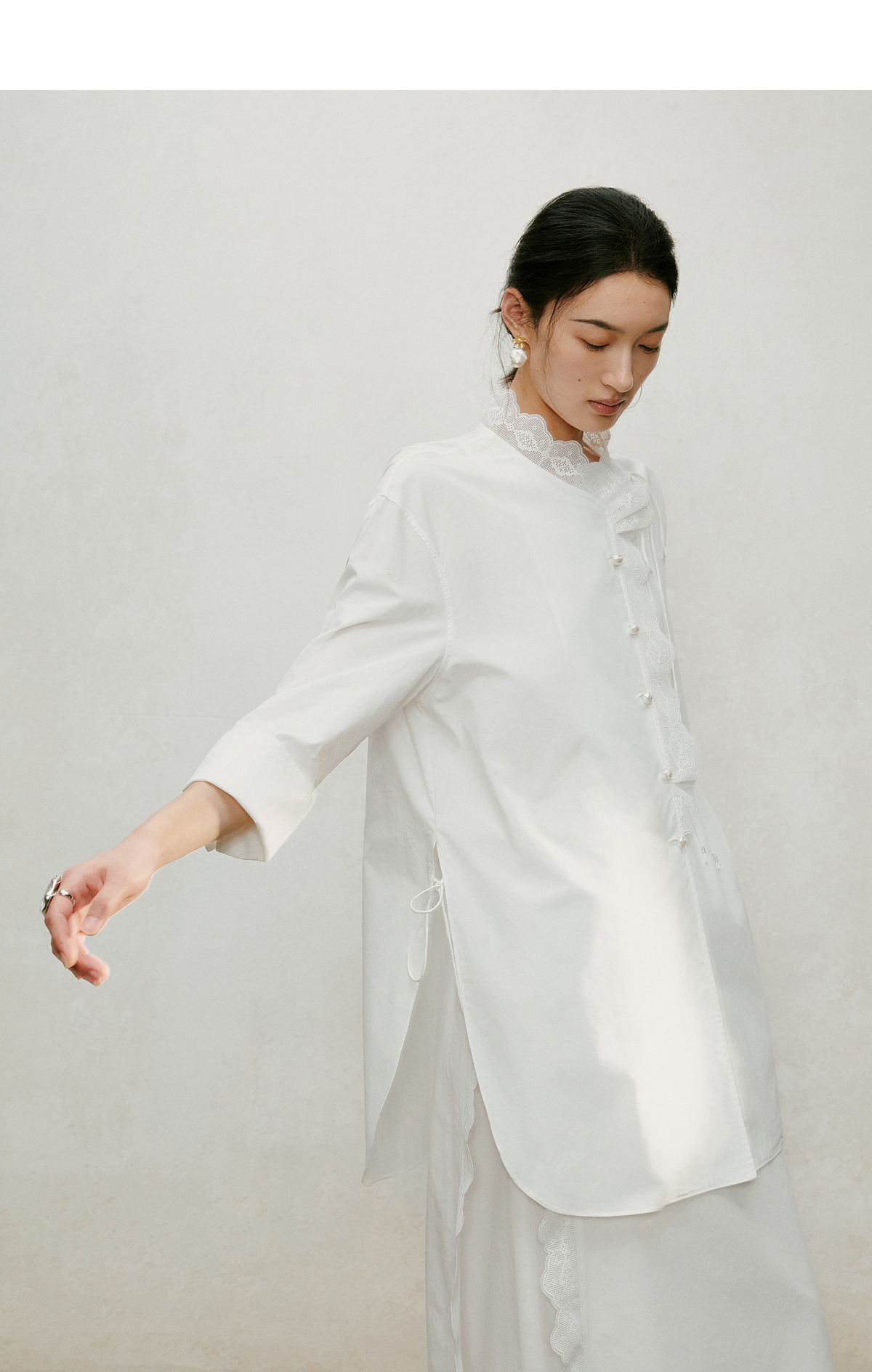 【林栖设计小店】手工系带|白色优雅国风百搭镂空花边2026夏新款纯棉衬衣1962087