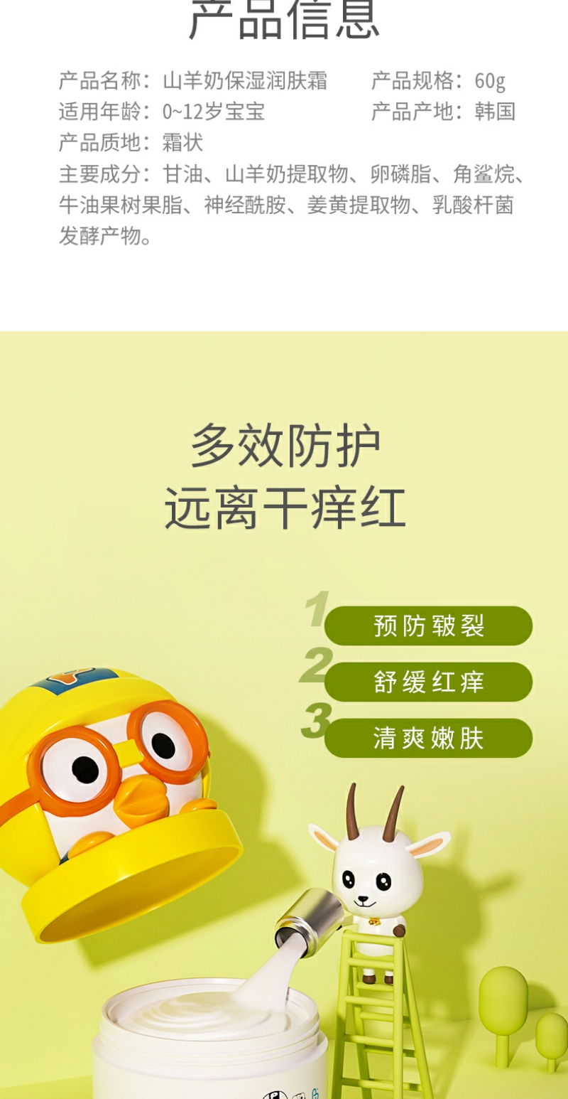 【YZ】啵乐乐婴儿润肤乳幼儿童面霜60g宝宝擦脸霜滋润补水秋冬季保湿宝露露