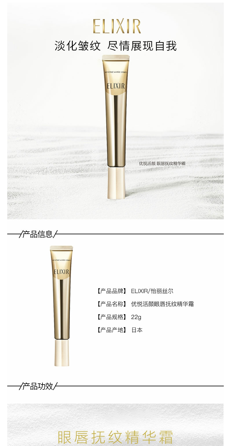 【YZ】Elixir怡丽丝尔优悦活颜眼唇抚纹精华霜22g紧致保湿弹润眼霜