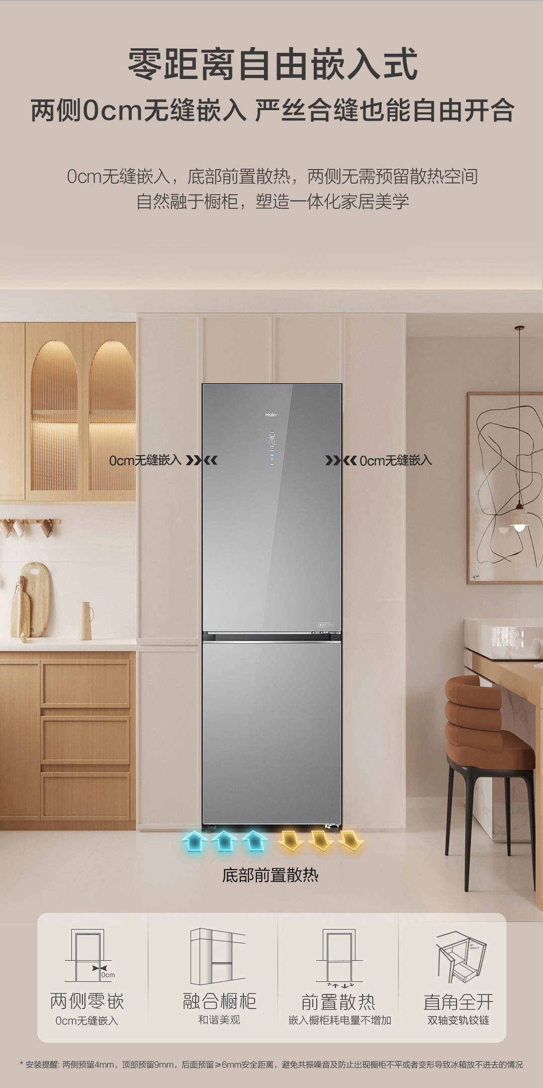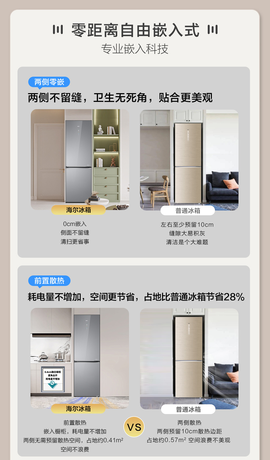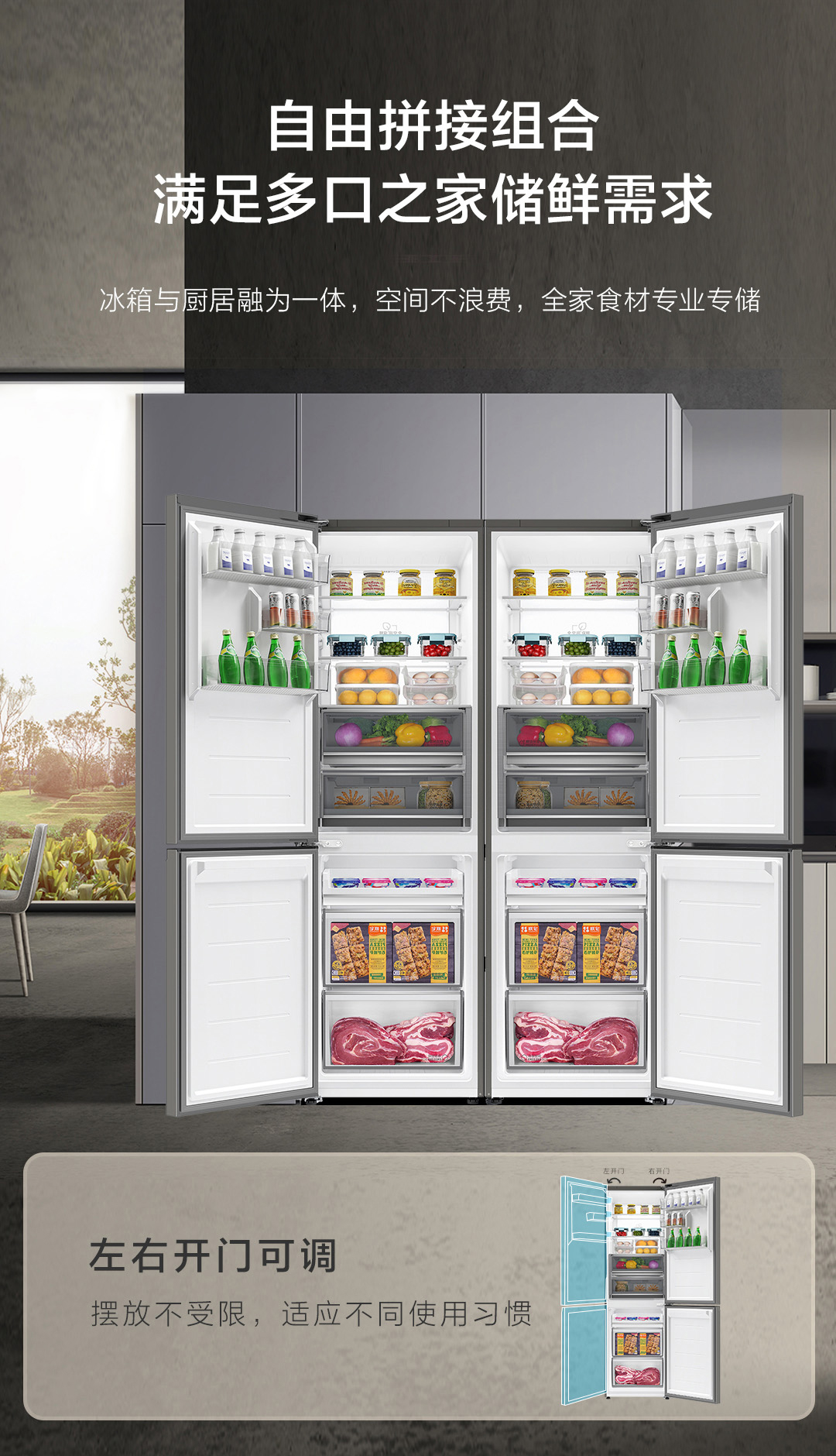 海尔(Haier)冰箱410升家用二门双开门零距离自由嵌入全空间保鲜一级双变频BCD-410WLHC214GXU1(灰)