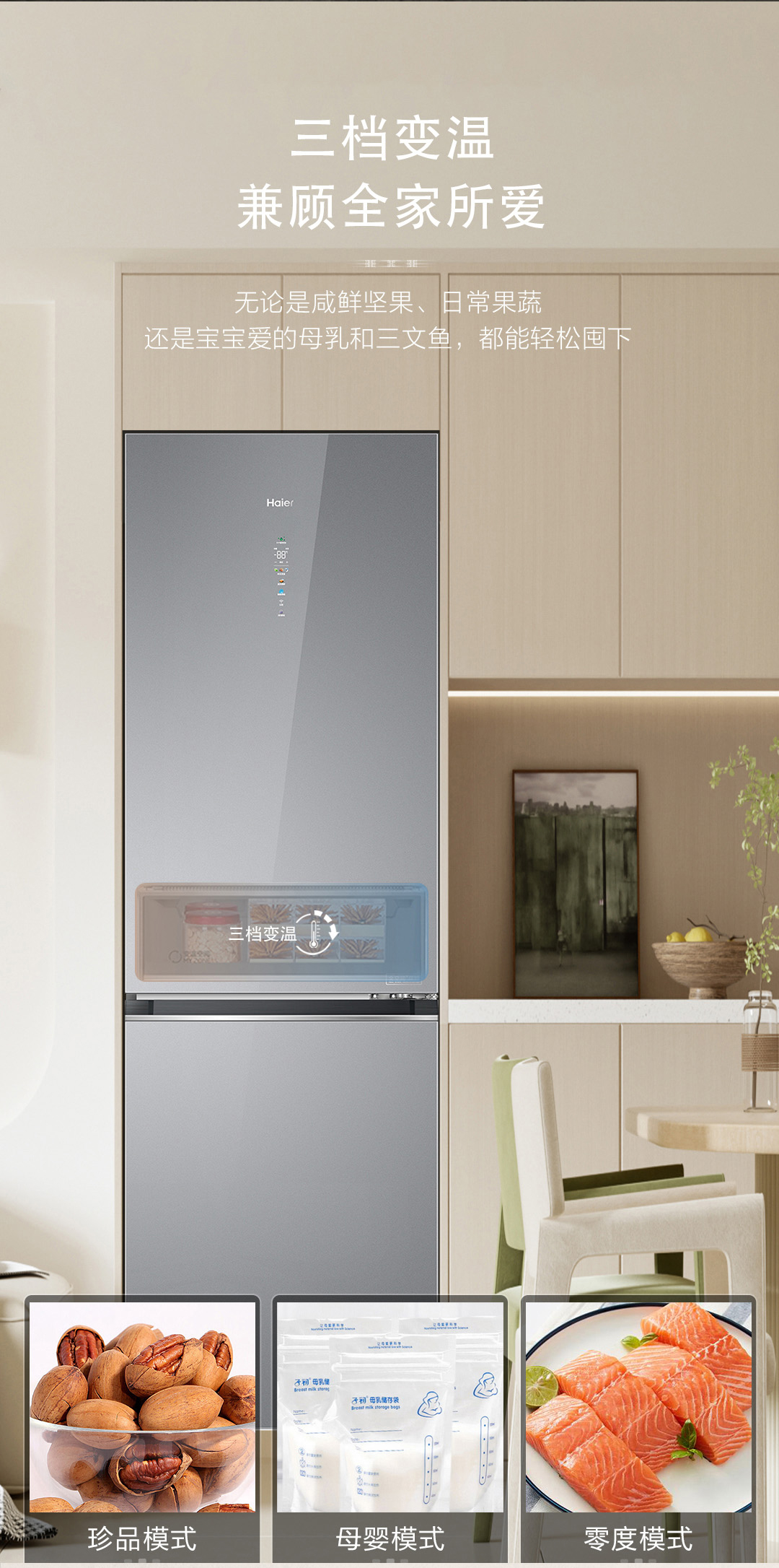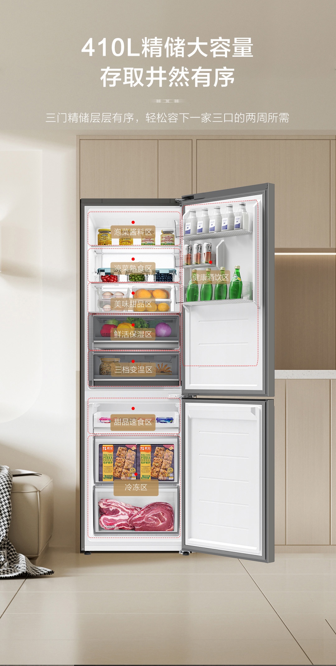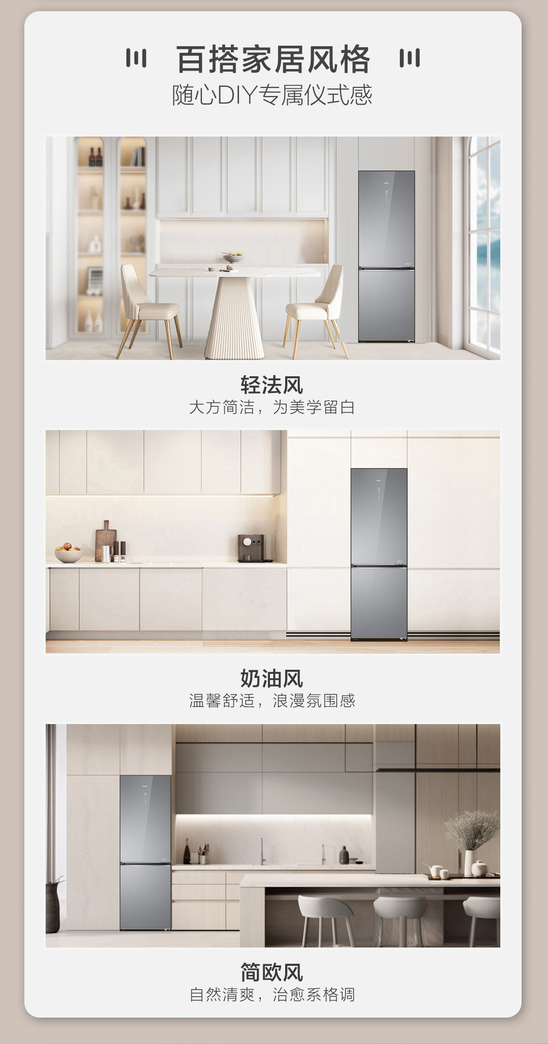 海尔(Haier)冰箱410升家用二门双开门零距离自由嵌入全空间保鲜一级双变频BCD-410WLHC214GXU1(灰)