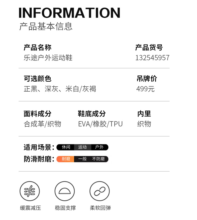 【耐磨橡胶 防泼水鞋面】乐途户外登山运动鞋-5957 加厚中底 软弹缓震
