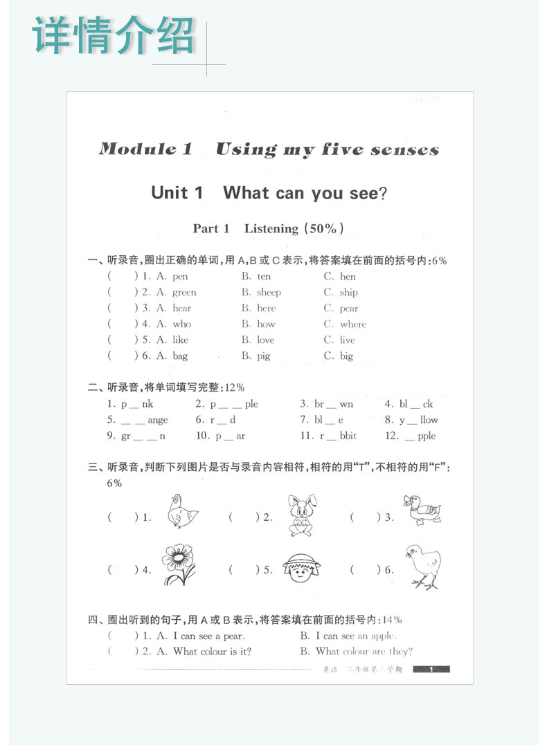 我能考第一 金牌一课一练 英语N版 (此版本不含光盘) 试用本 二年级第二学期/2下 上海小学教辅 中西书局