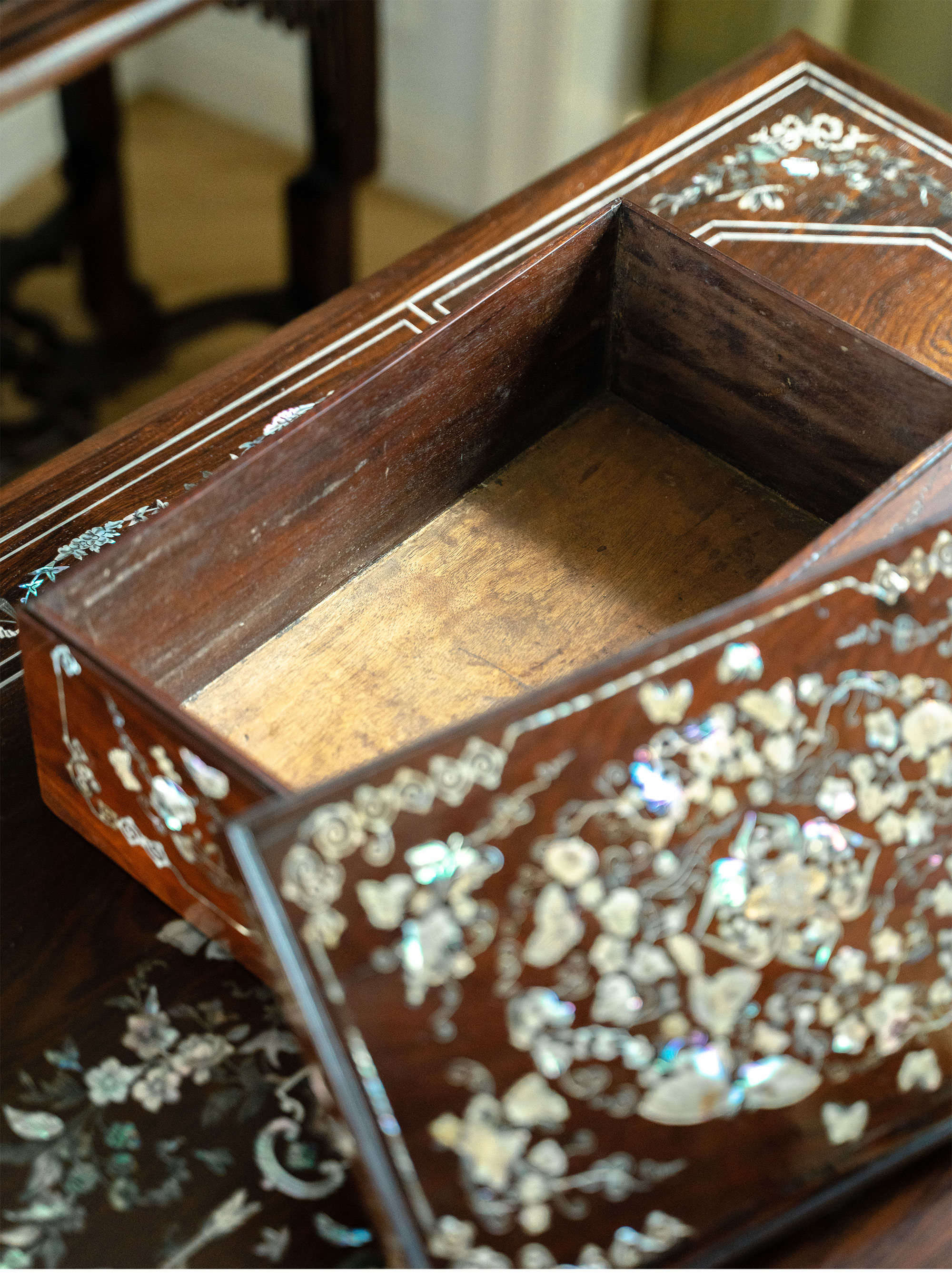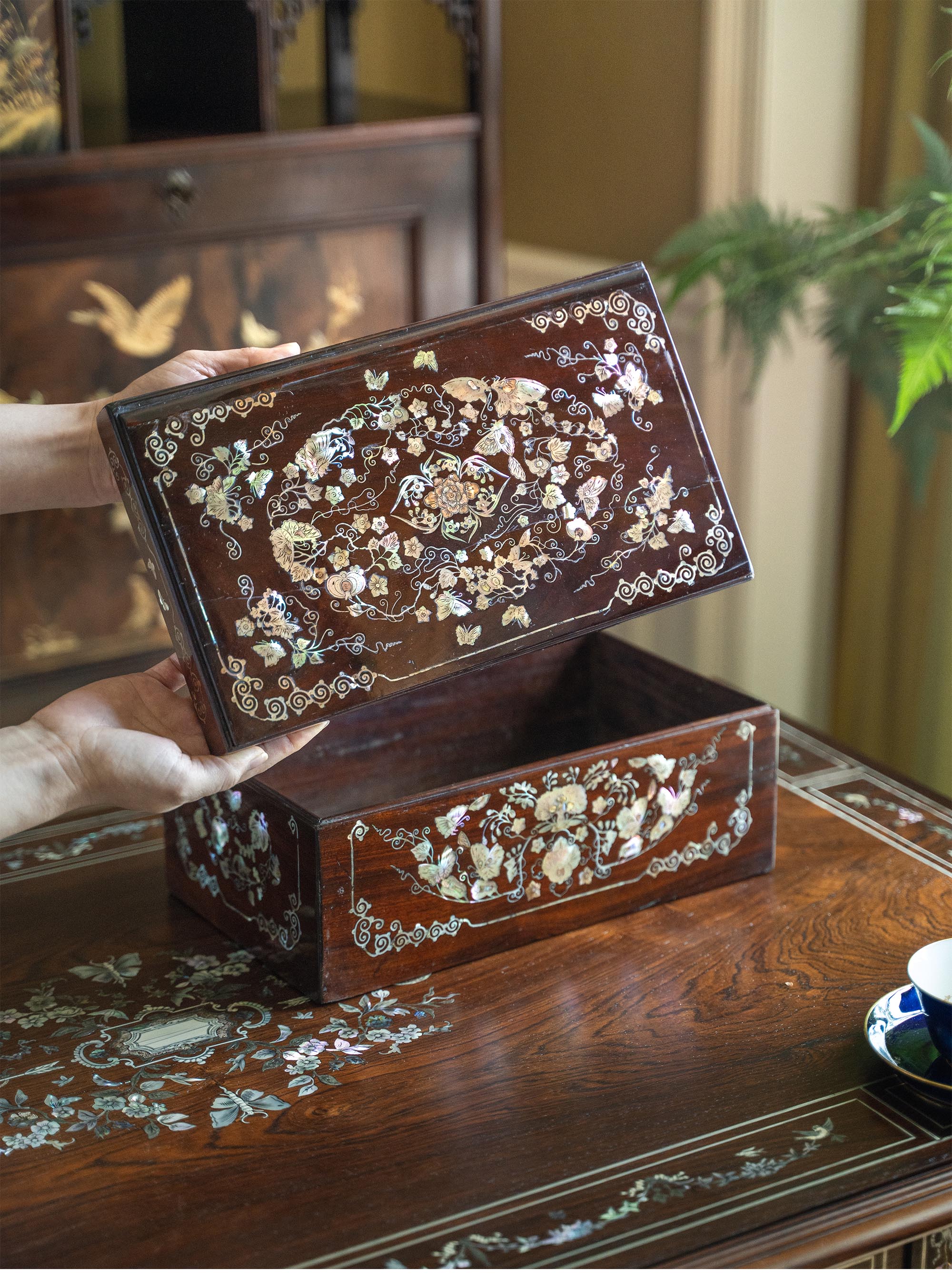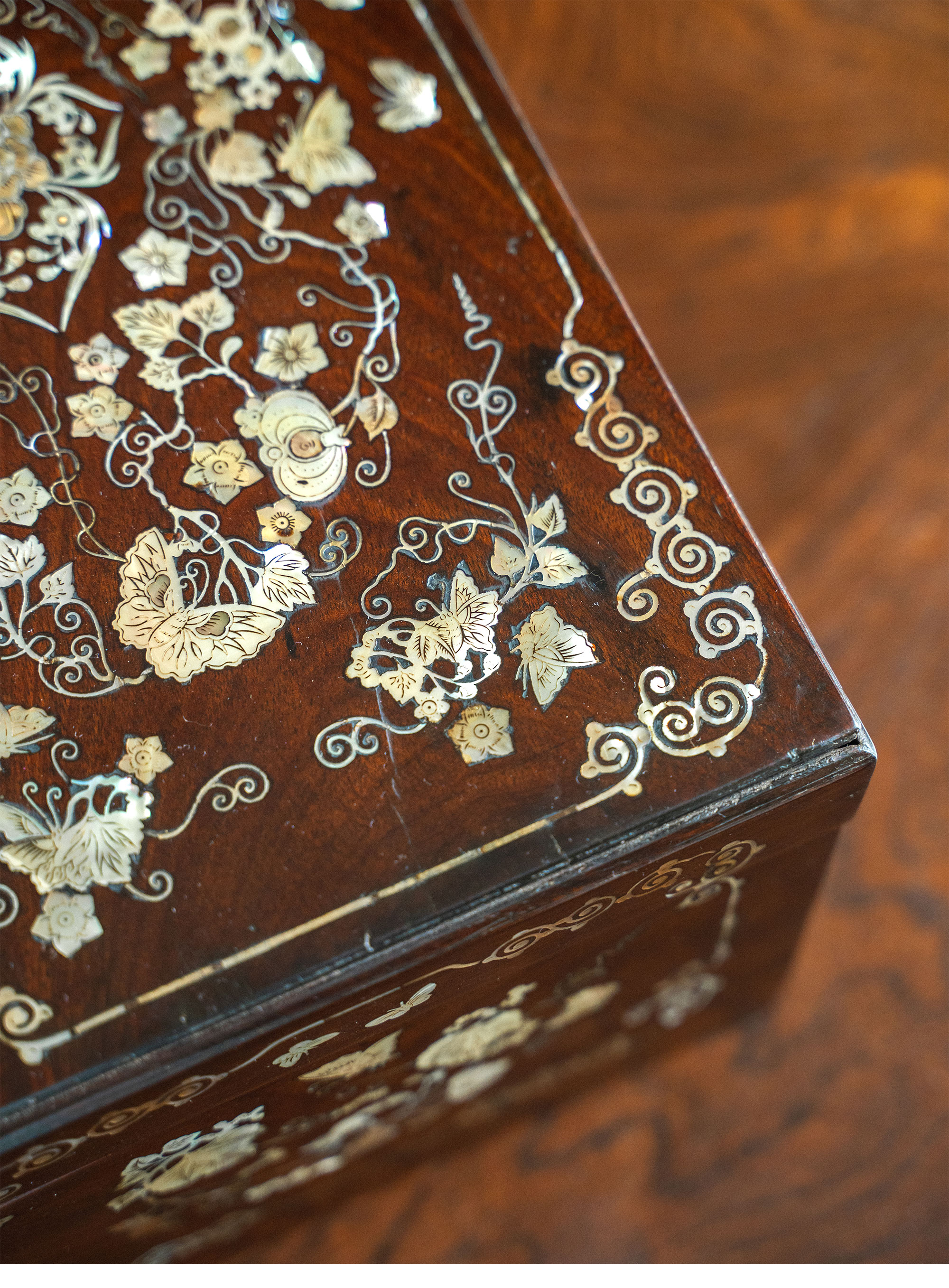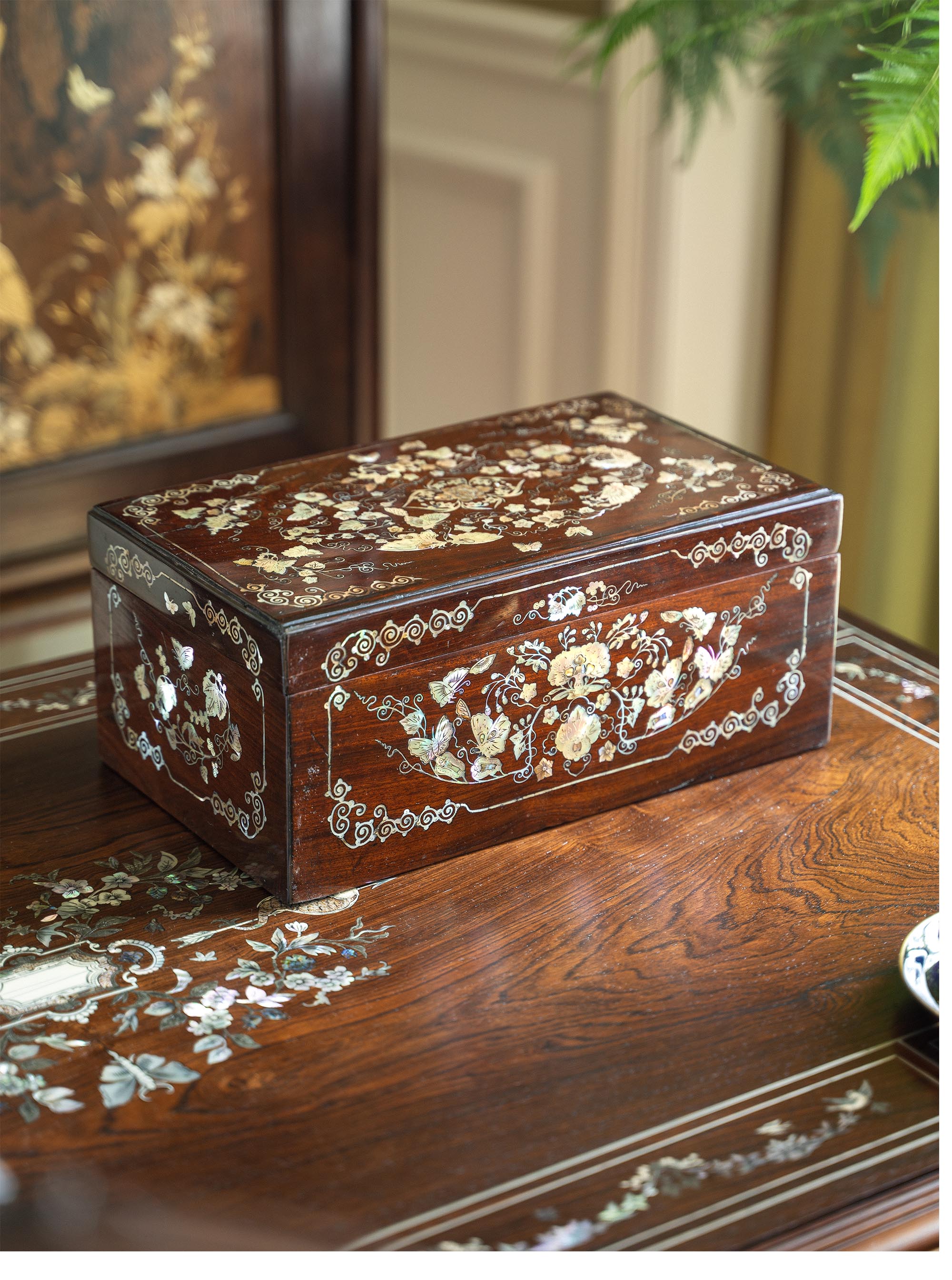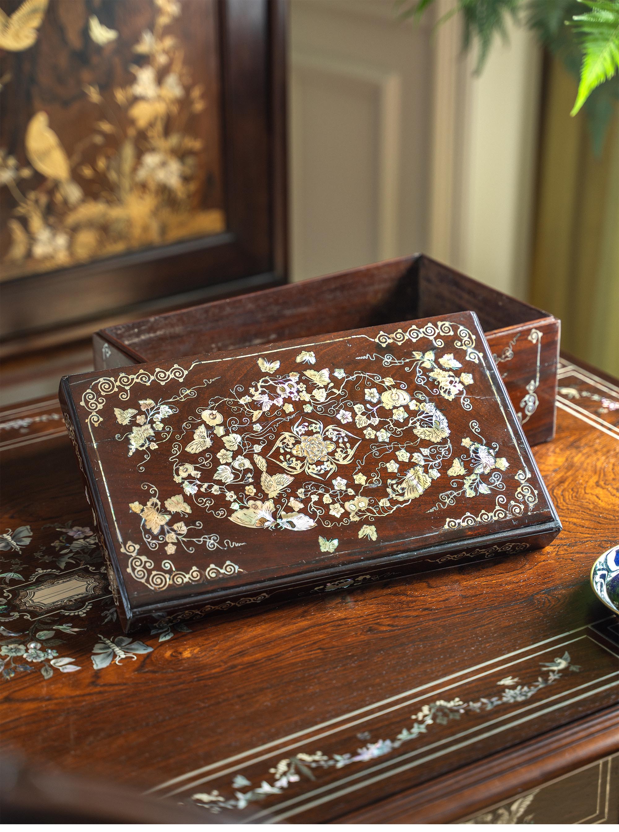20世纪中国出品硬木嵌螺钿「瓜瓞绵绵」主题珍宝盒