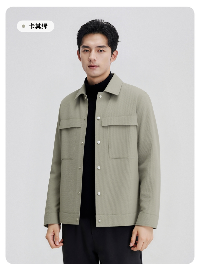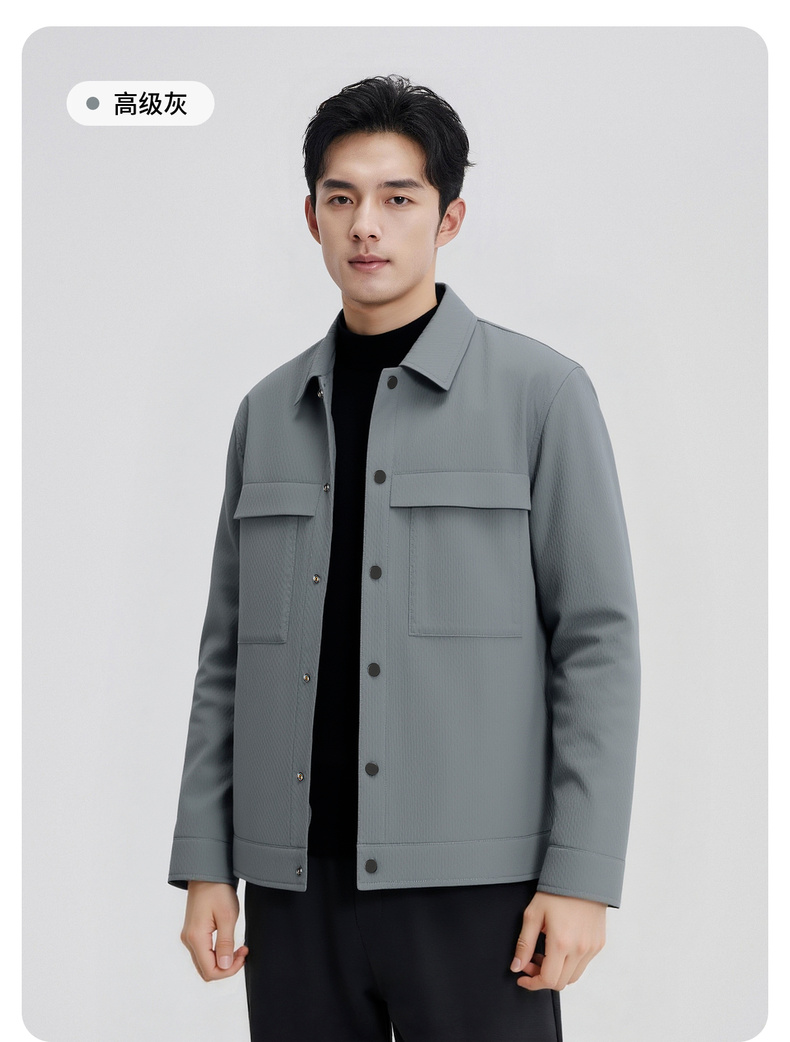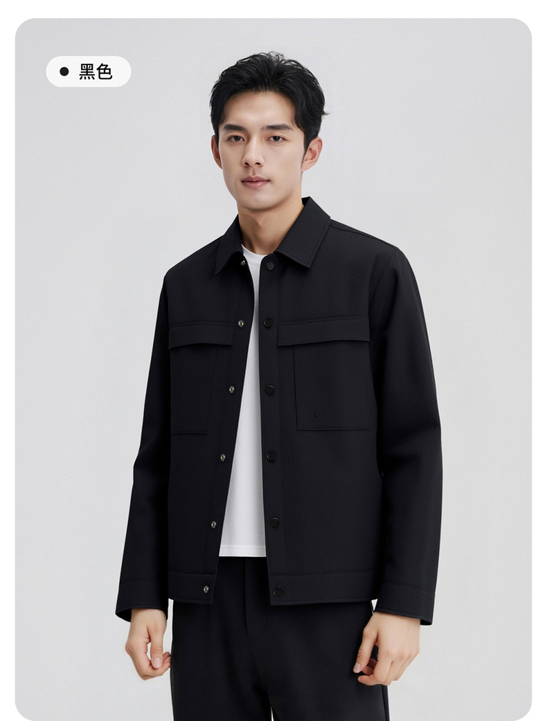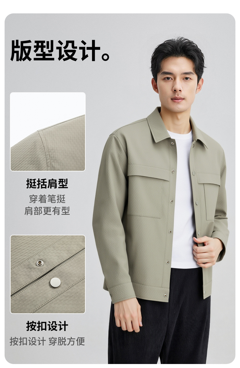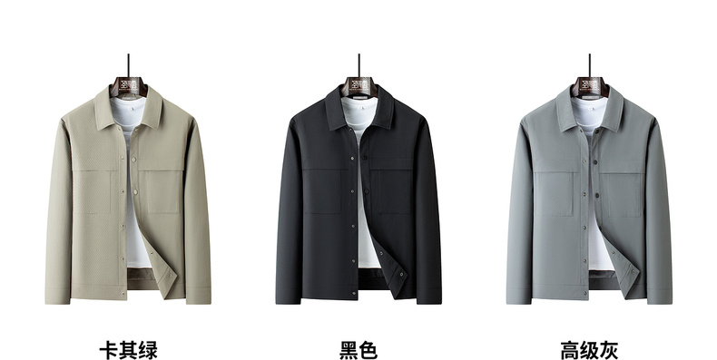 圣得西男士翻领夹克2025年秋季新款华夫格肌理暗纹通勤长袖外套男