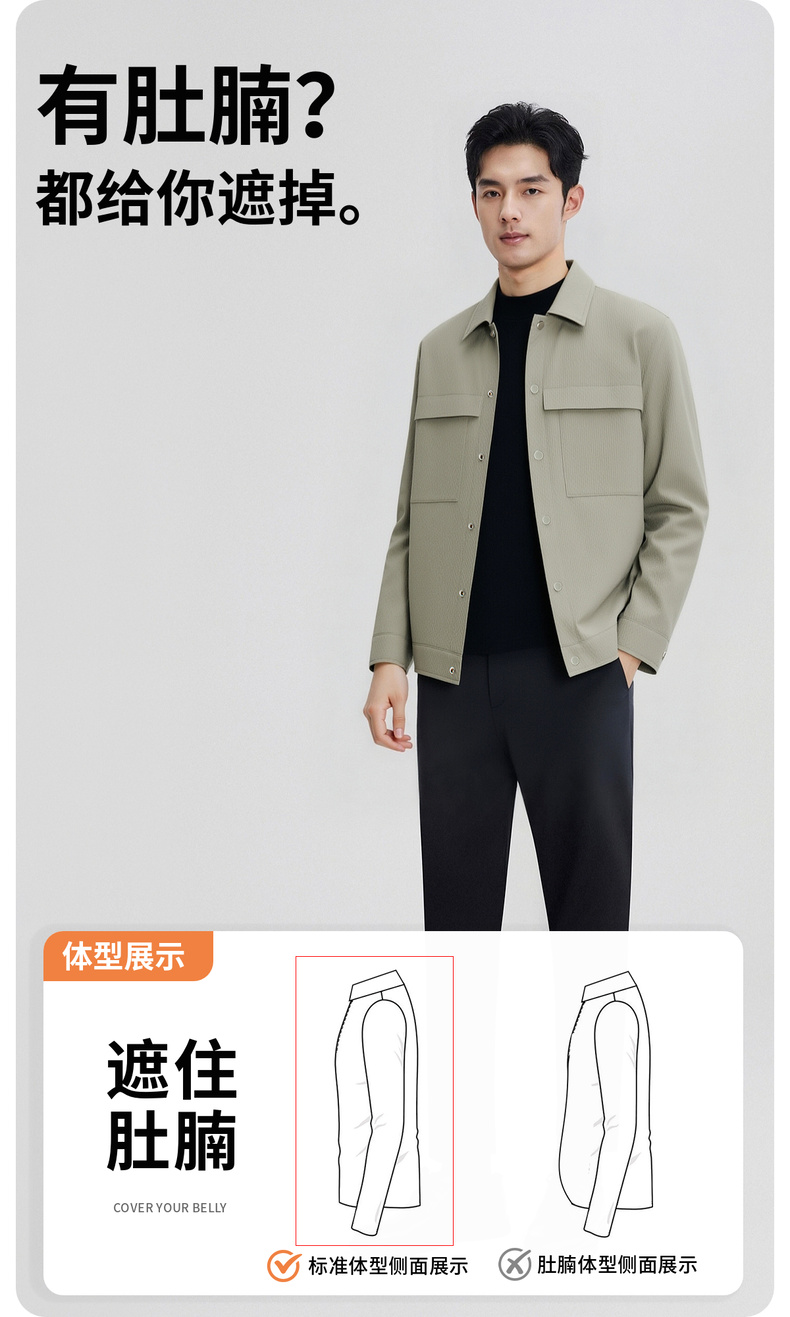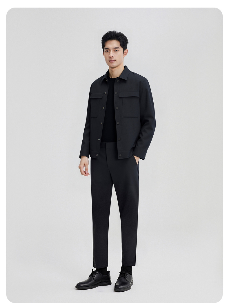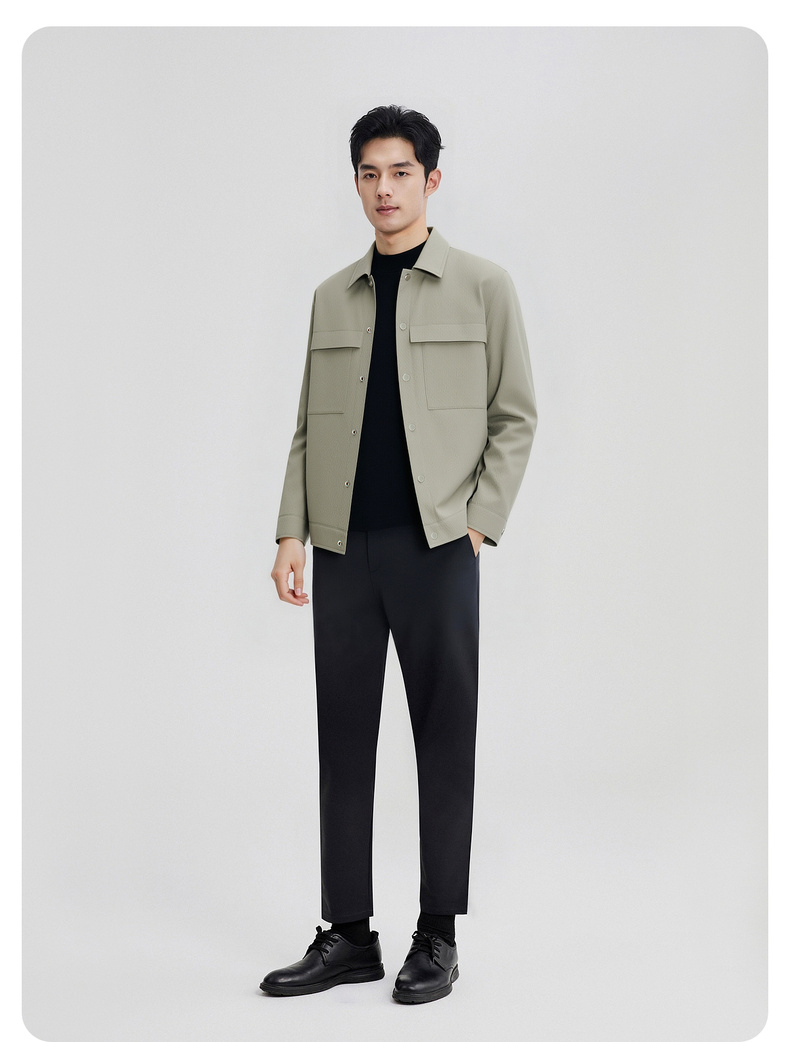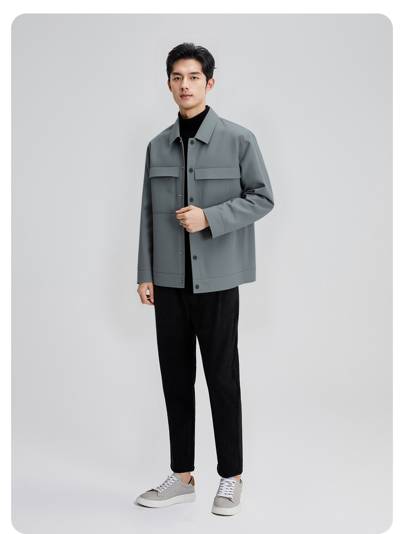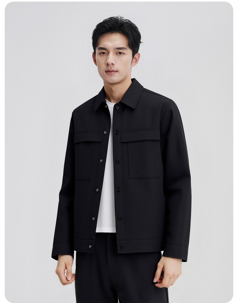 圣得西男士翻领夹克2025年秋季新款华夫格肌理暗纹通勤长袖外套男