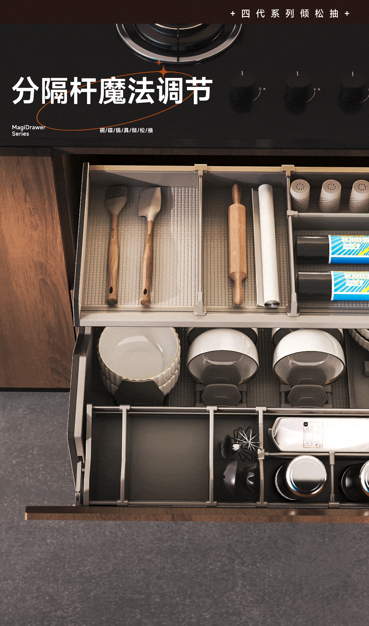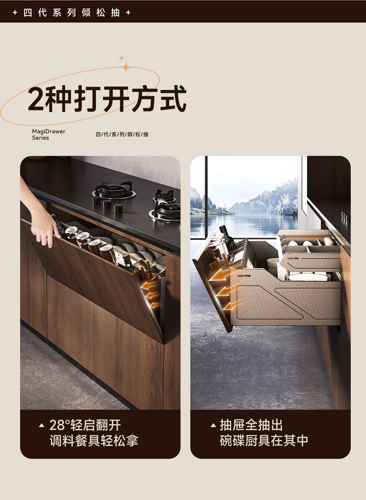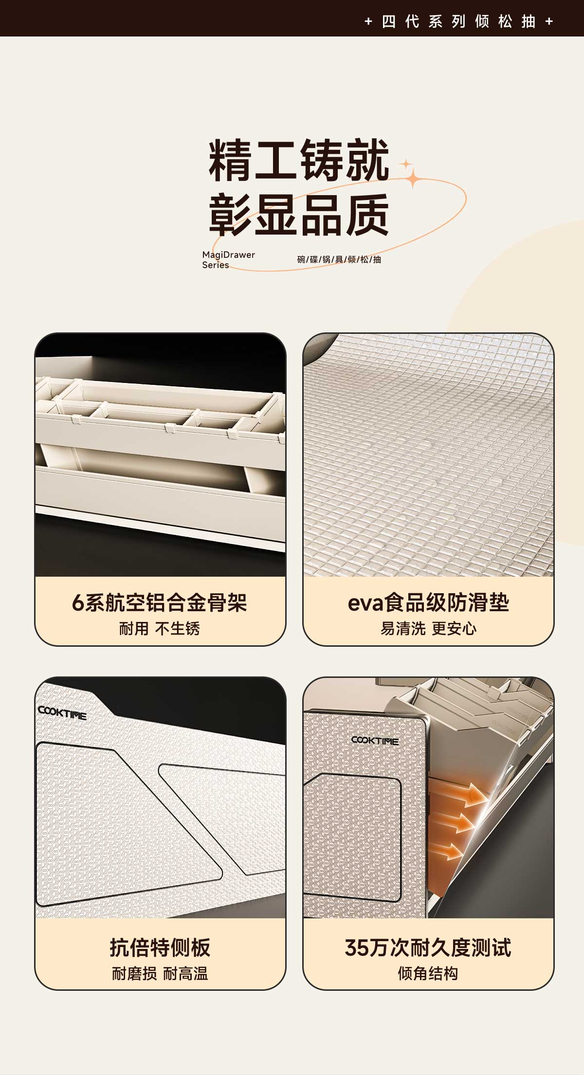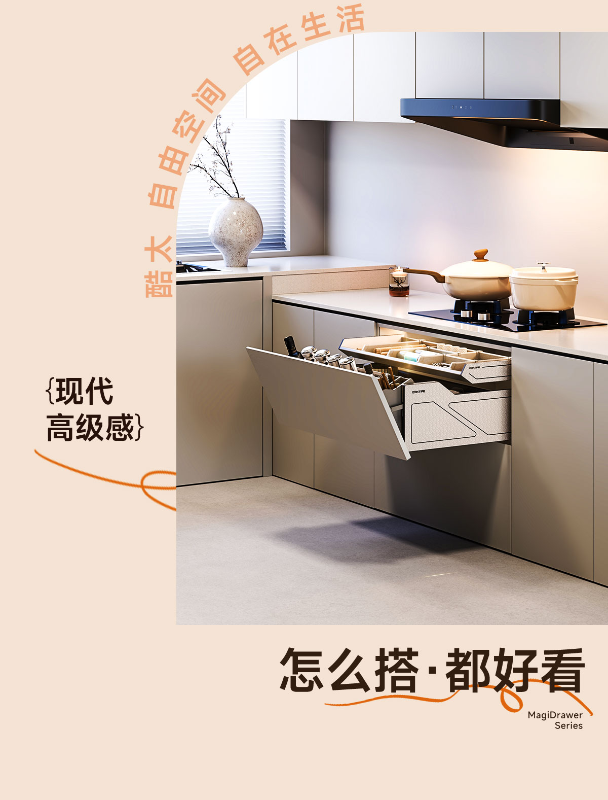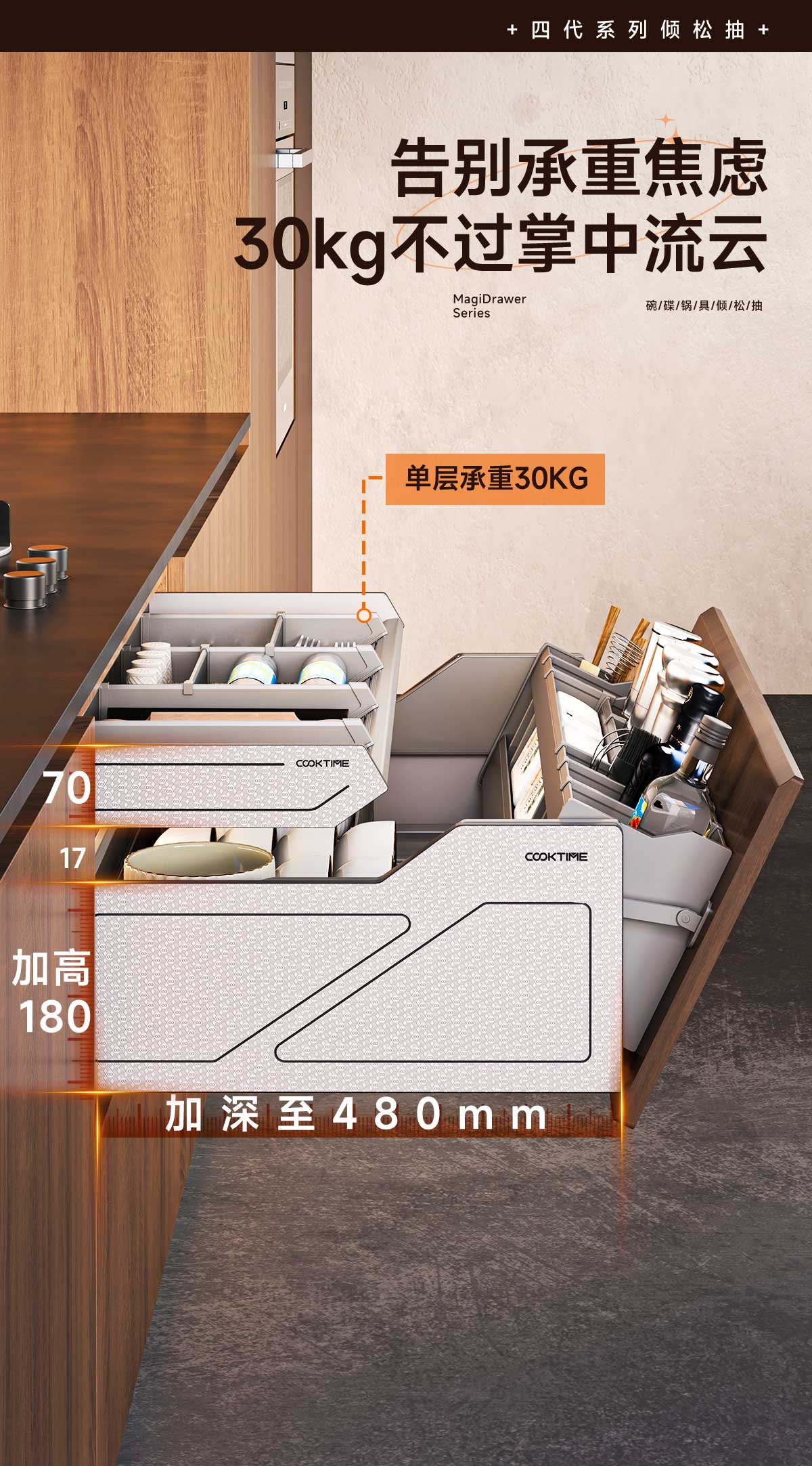 - 酷太坚持8年自主研发,已获得专利证书130项,拥有一套领先市场的厨房收纳系统,为千万中国家庭解决厨房脏乱差,缔造厨房新生活。