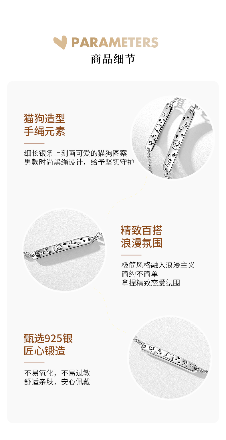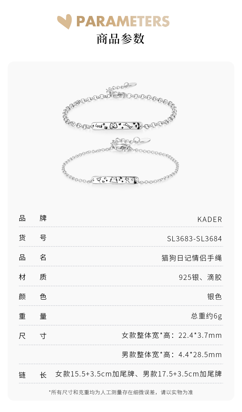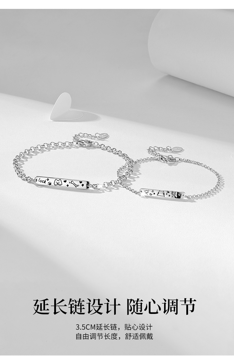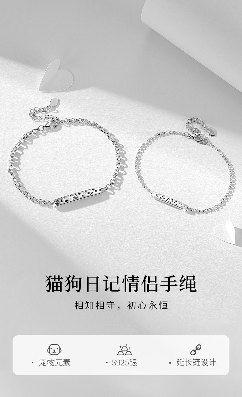 卡蒂罗/KADER 猫狗日记情侣手链 萌趣爱恋欢喜冤家趣味学院风纯银手饰一对 小众高级感原创百搭生日214情人表白