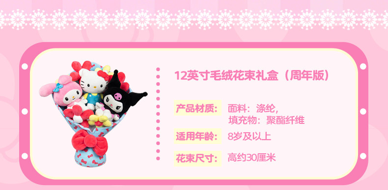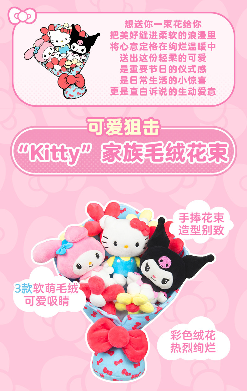 Jazwares Hello Kitty 毛绒花束礼盒 手捧花女生节日礼物送女友 三丽鸥玩偶花束