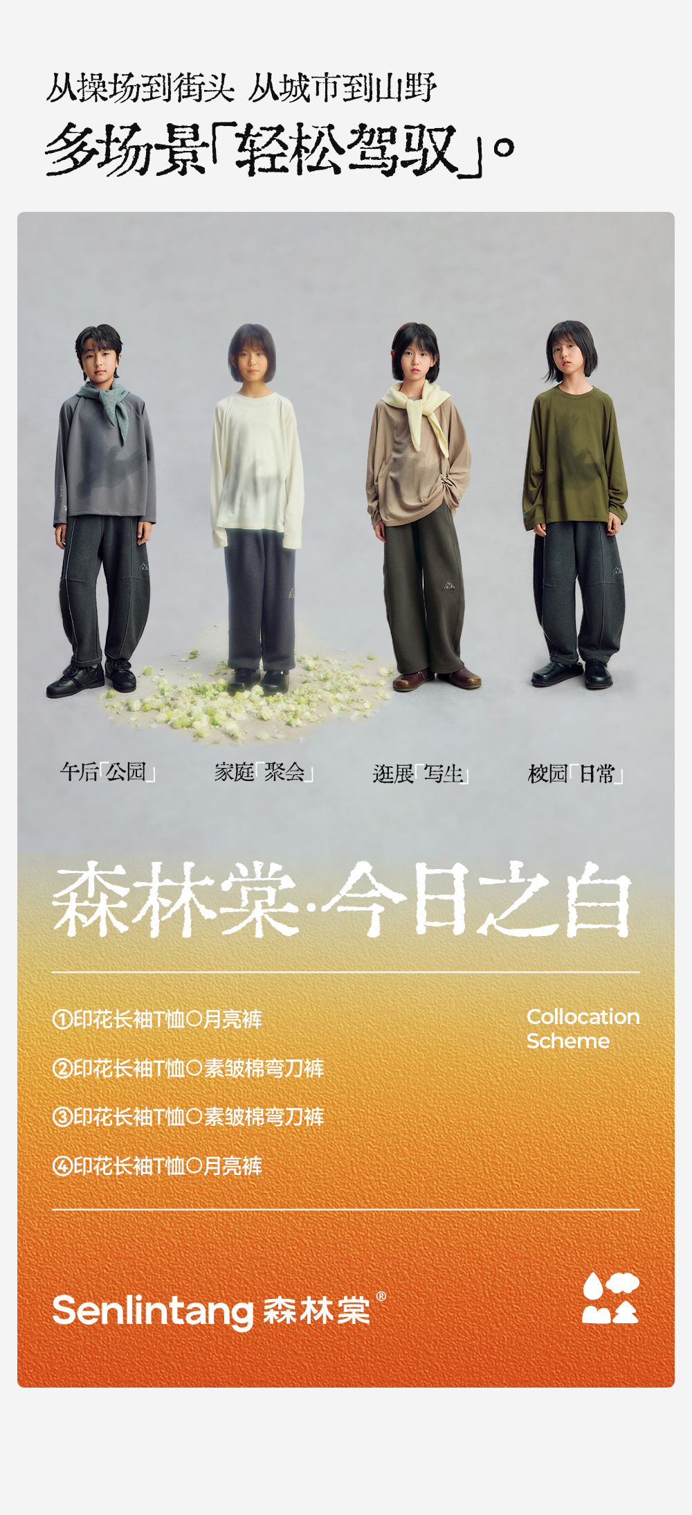 【今日之白系列】森林棠26新款休闲舒适单向导湿儿童印花长袖T恤60225326【HZ】