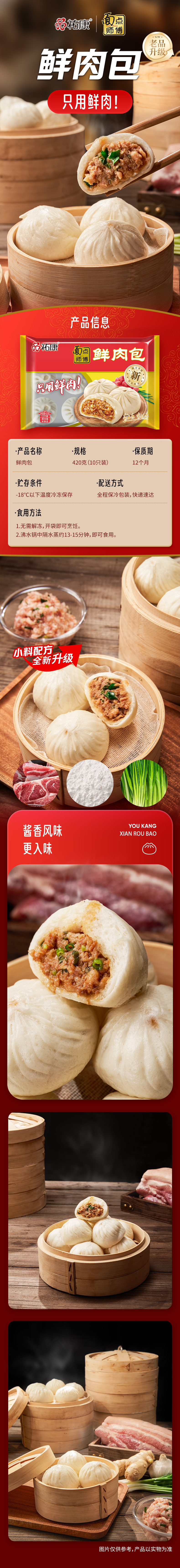 【包邮套餐】祐康面点师傅420g鲜肉包*3包