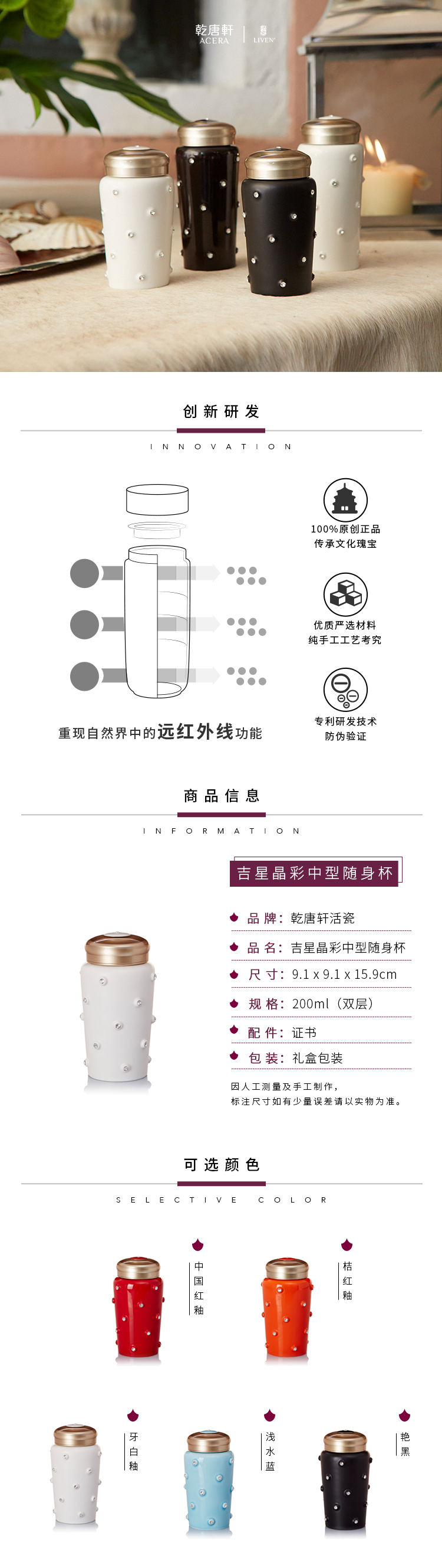 - 乾唐轩创立于1986年, 它以艺术融入生活美学,把传统陶瓷结合现代科技,以创造人类健康美好的生活为标志