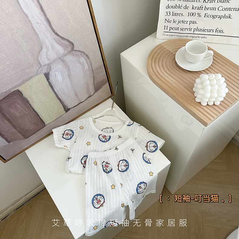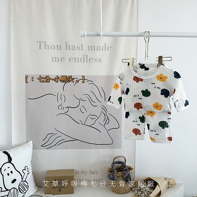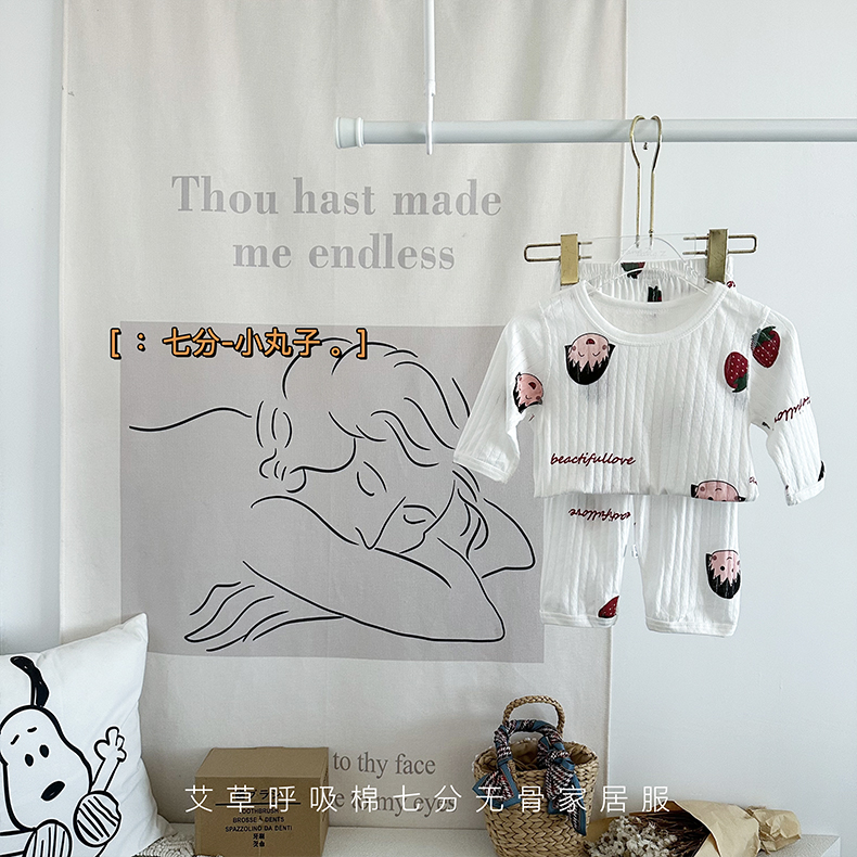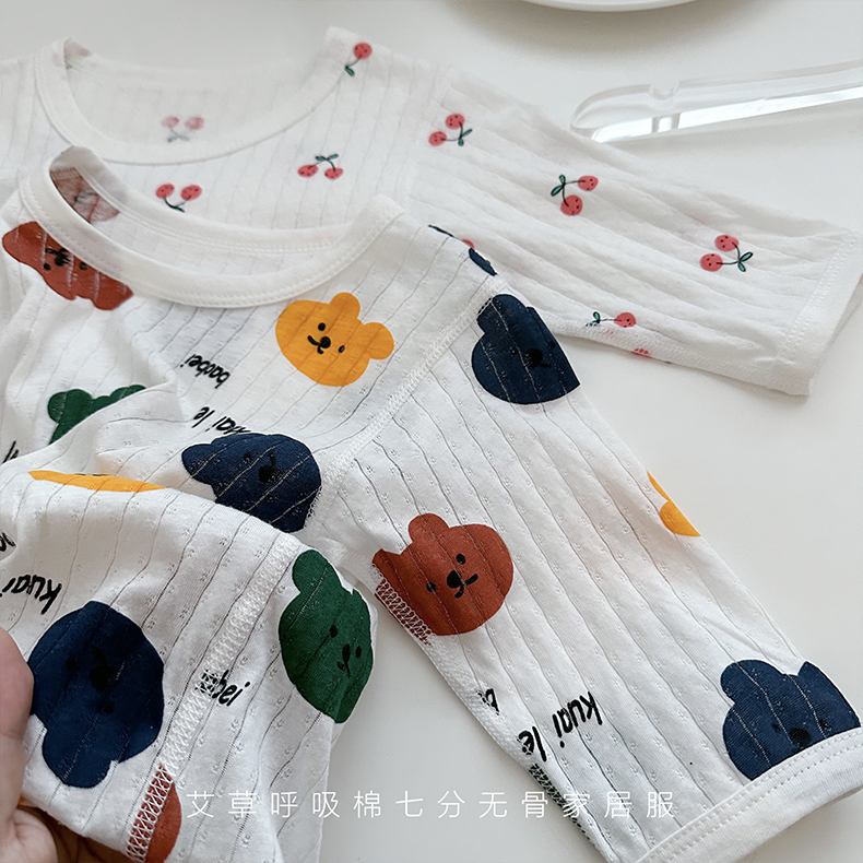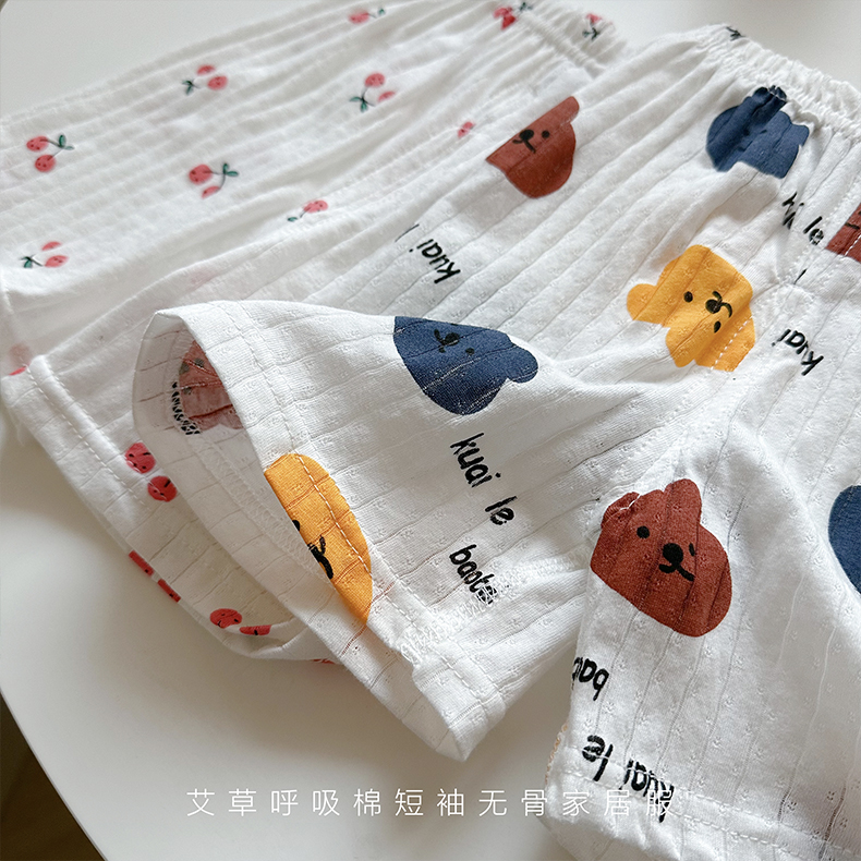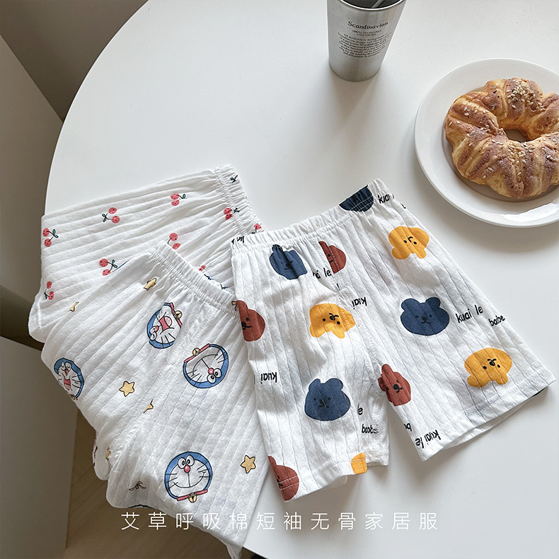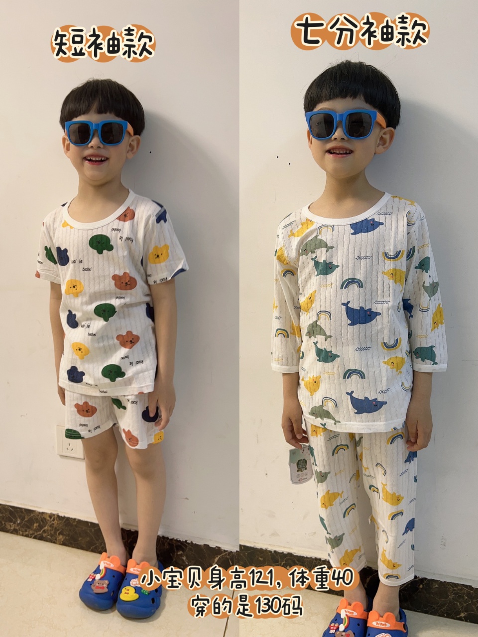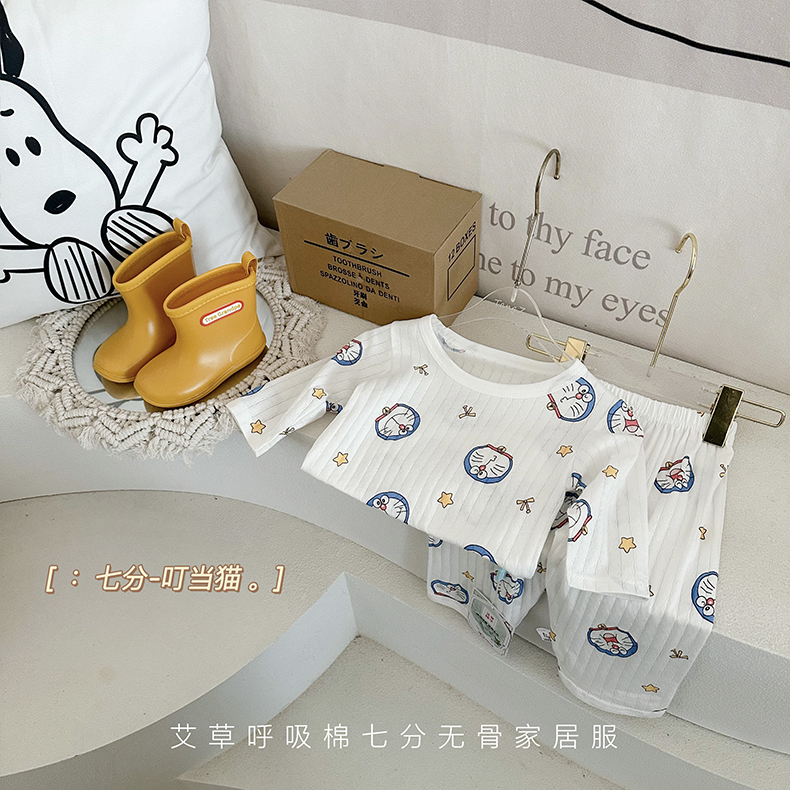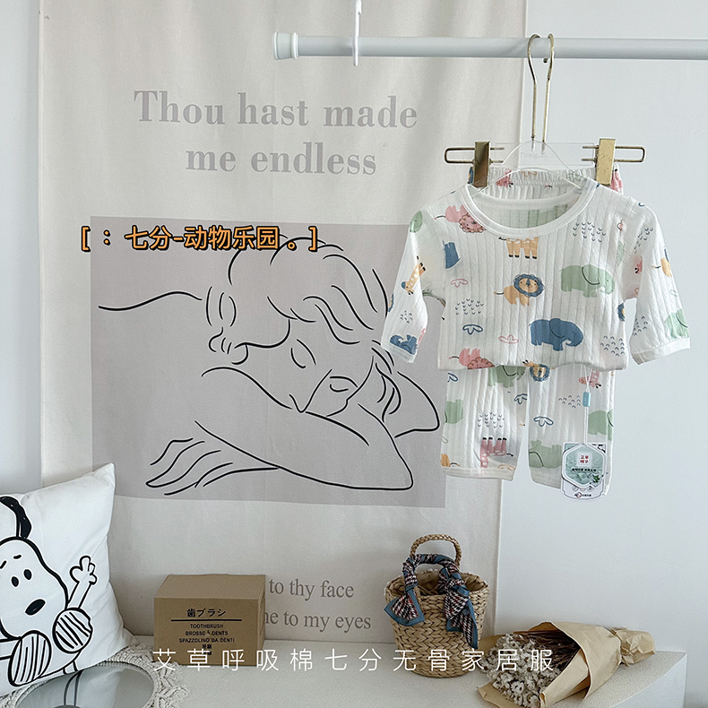 纯棉!短袖/七分袖【59元/买一送一】夏季薄款儿童家居服,短袖款+七分款,纯棉材质,添加艾草精华,A类面料,亲肤透气