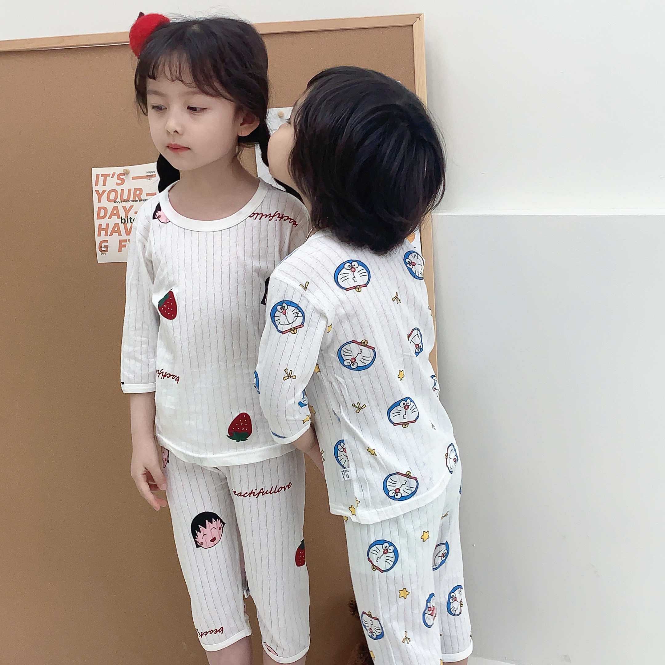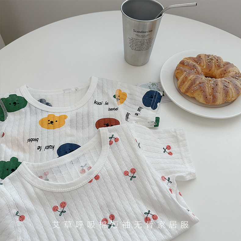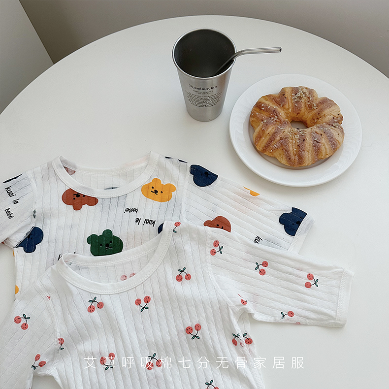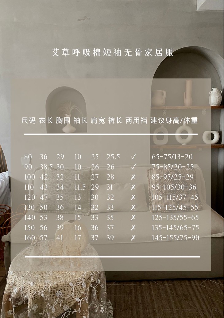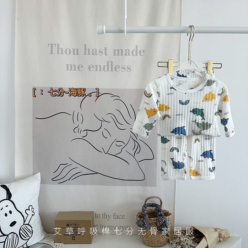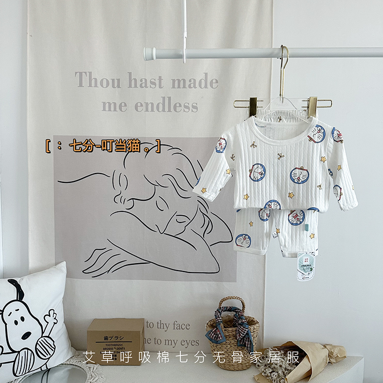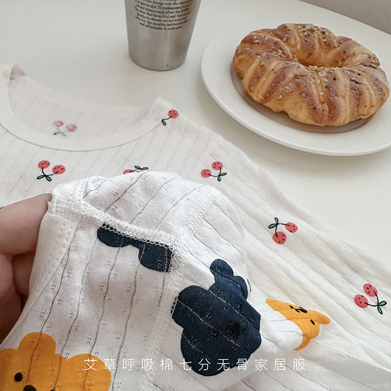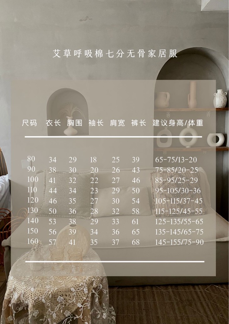纯棉!短袖/七分袖【59元/买一送一】夏季薄款儿童家居服,短袖款+七分款,纯棉材质,添加艾草精华,A类面料,亲肤透气