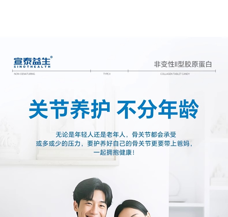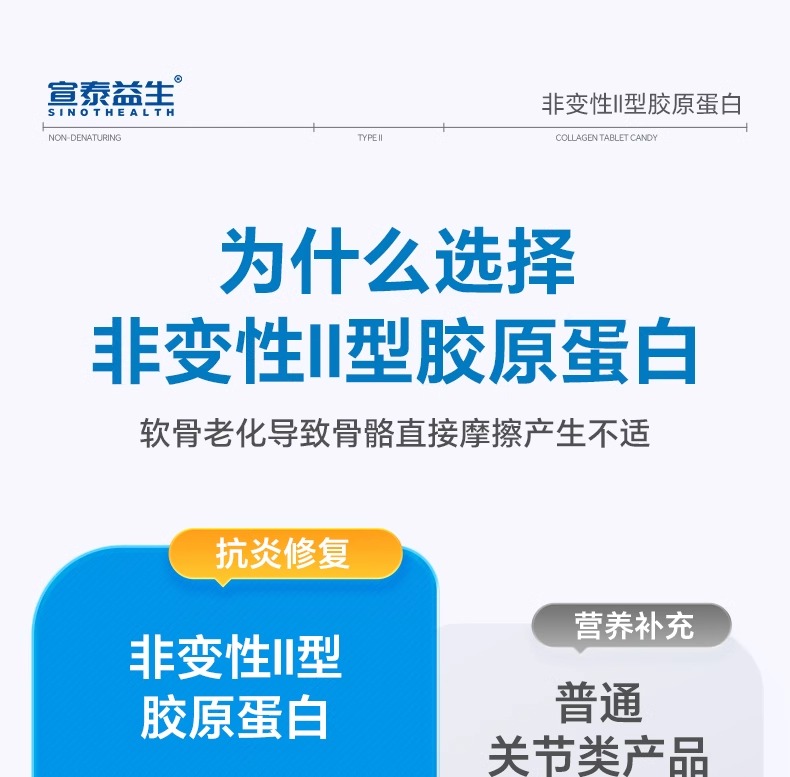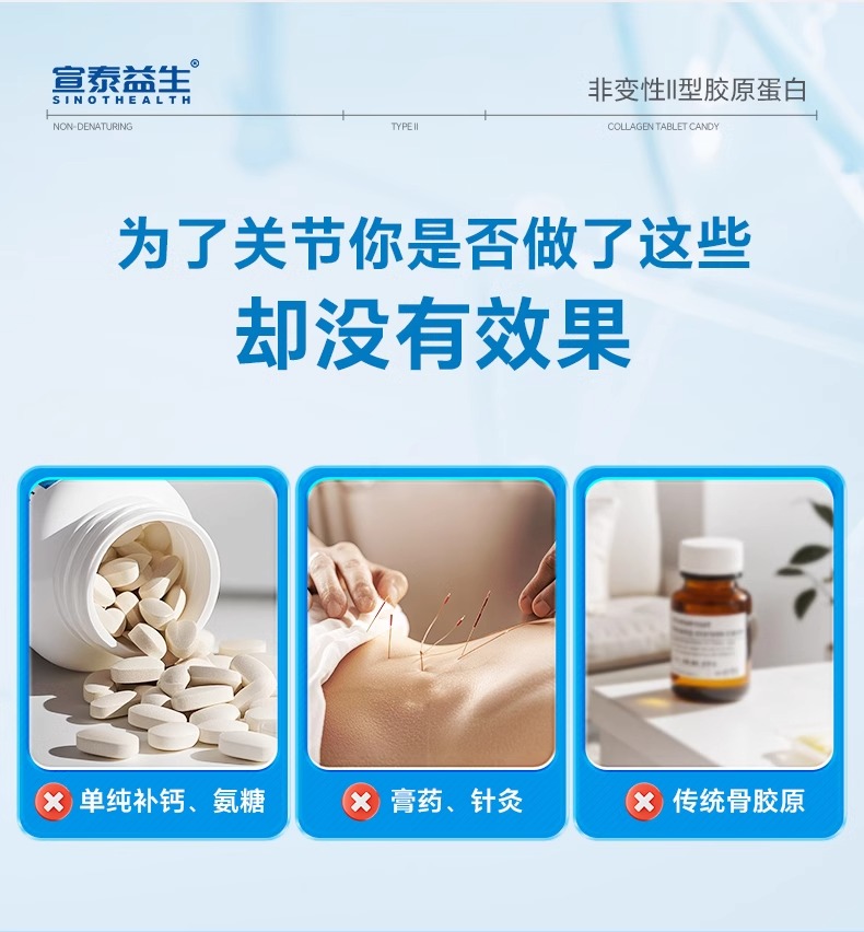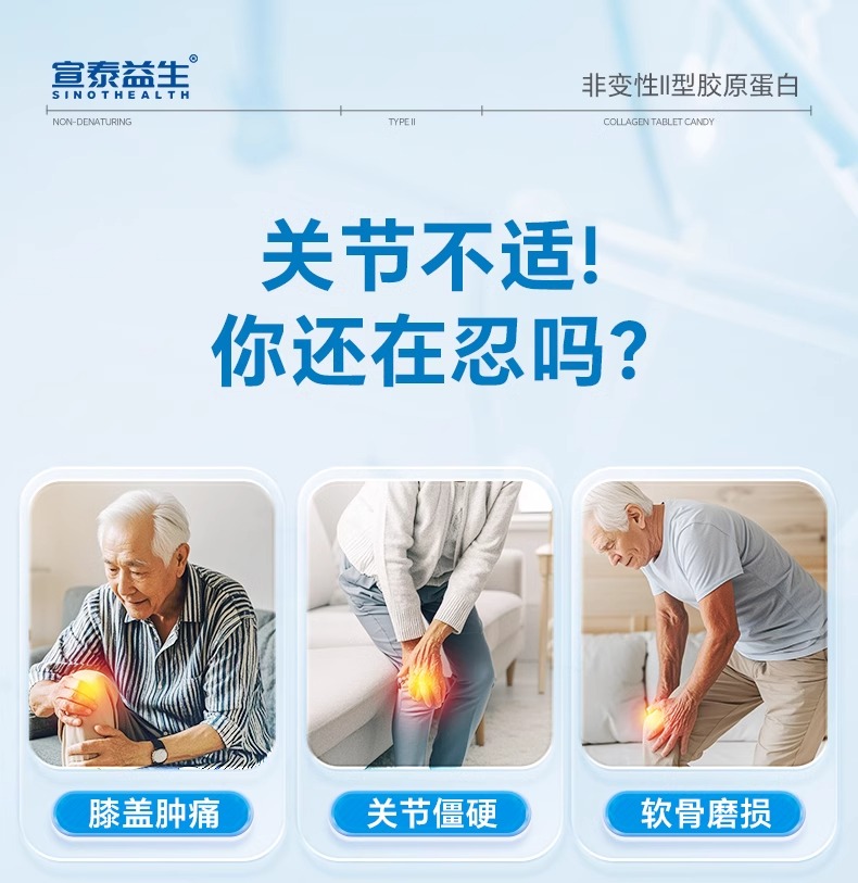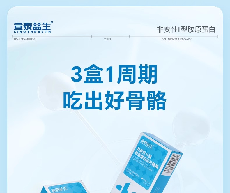 【宣泰益生】UCII胶原蛋白软骨素非变性二型胶原蛋白压片糖果膝盖关节氨糖