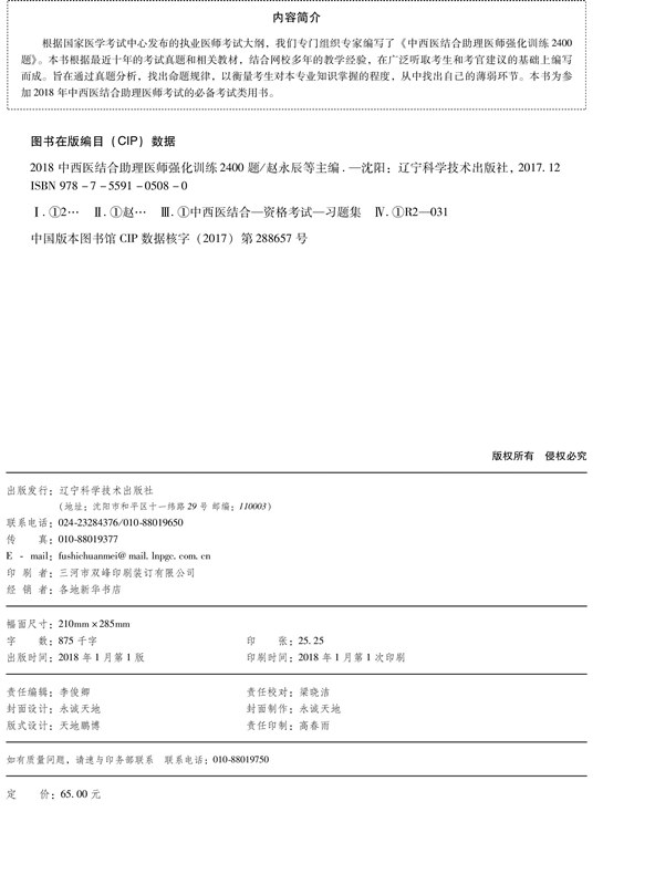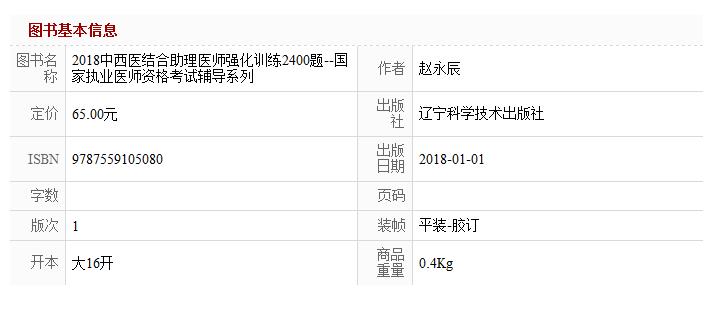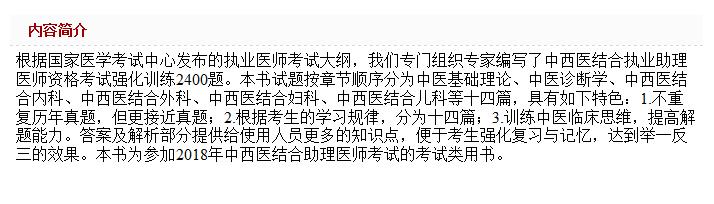 2018中西医结合助理医师强化训练2400题--国家执业医师资格考试辅导系列
