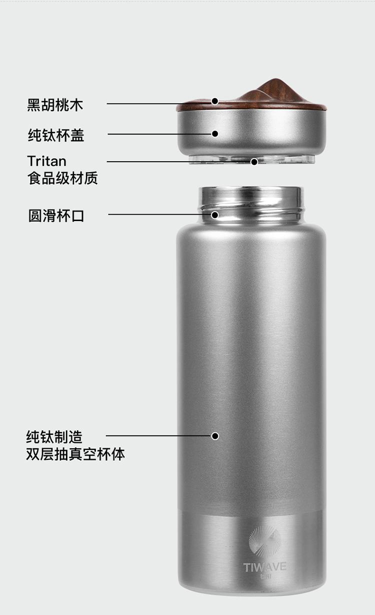 钛阳 纯钛保温杯 父爱如山S系列 500ml 抑菌除味 轻盈坚固 无重金属 办公伴侣