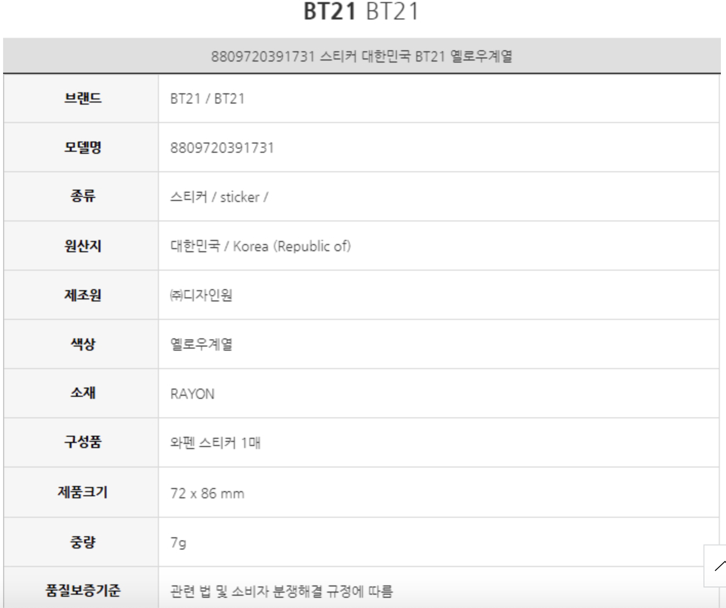 韩国 可爱 Line Friends BT21CHIMMY Wapen贴纸(4型)JPY带授权招加盟代理