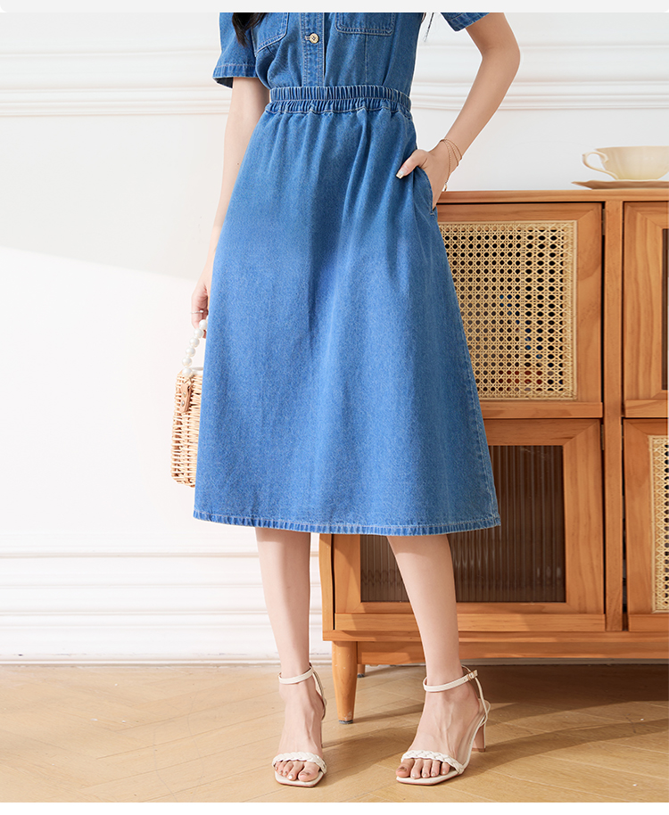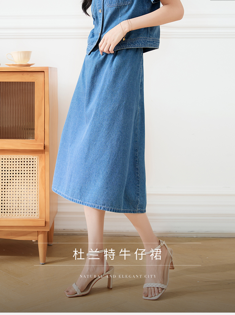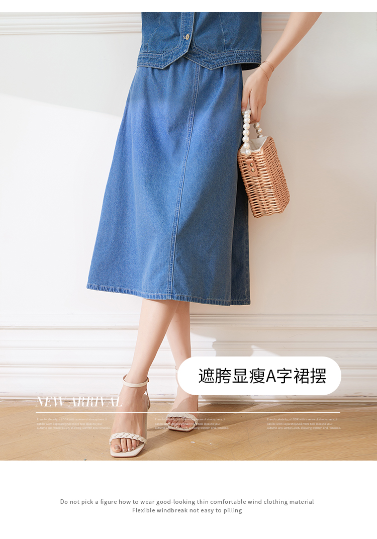 【专属特价】熙世界遮胯显瘦牛仔半身裙女2025夏款通勤百搭小个子梨形A字裙