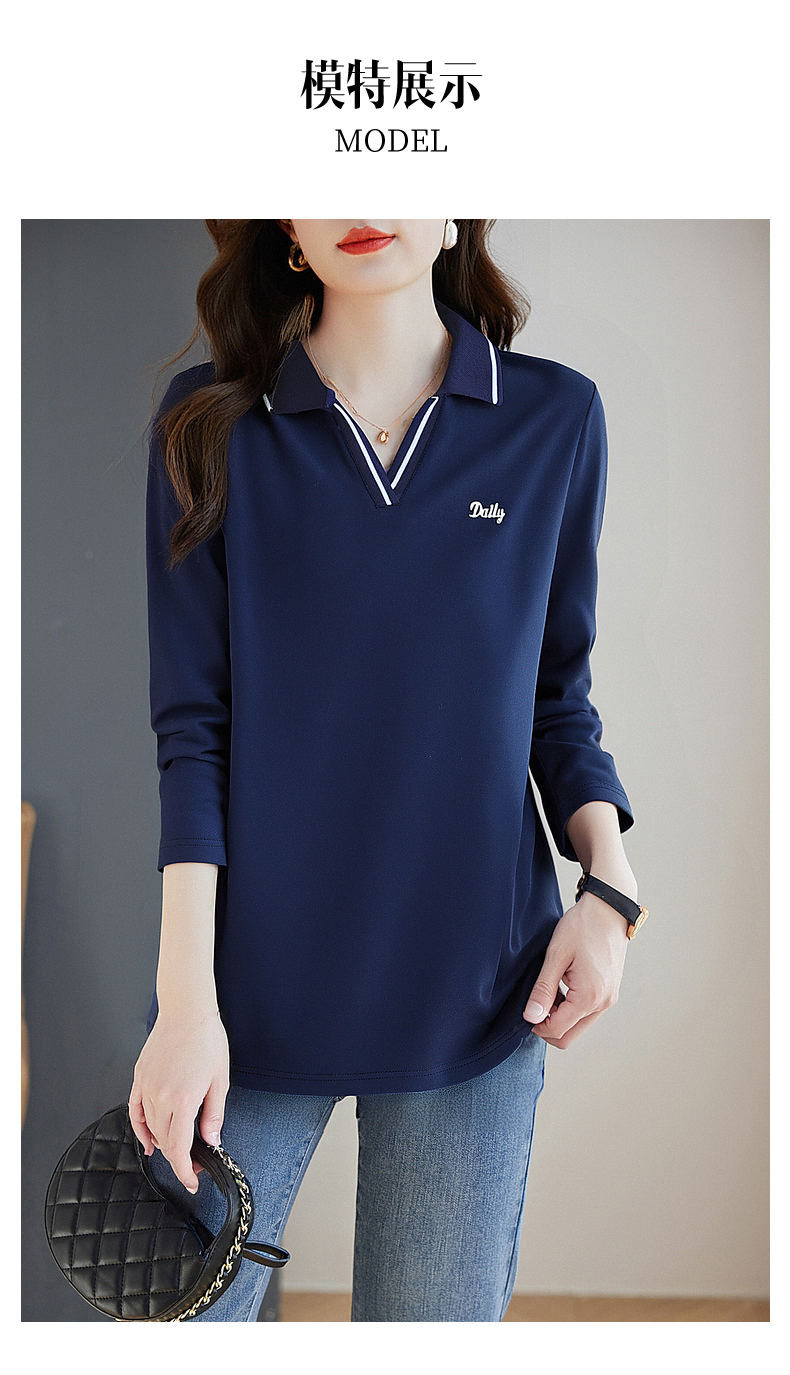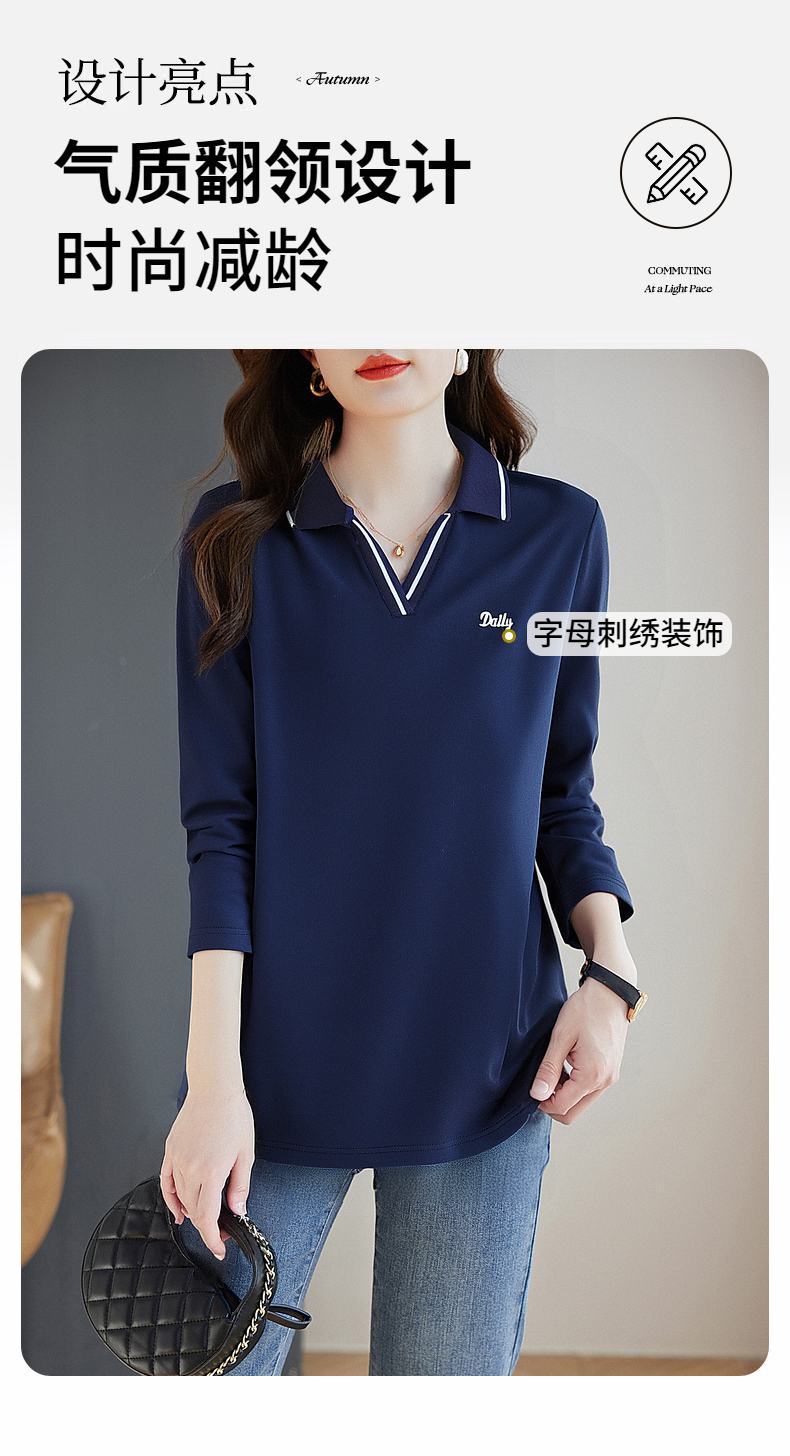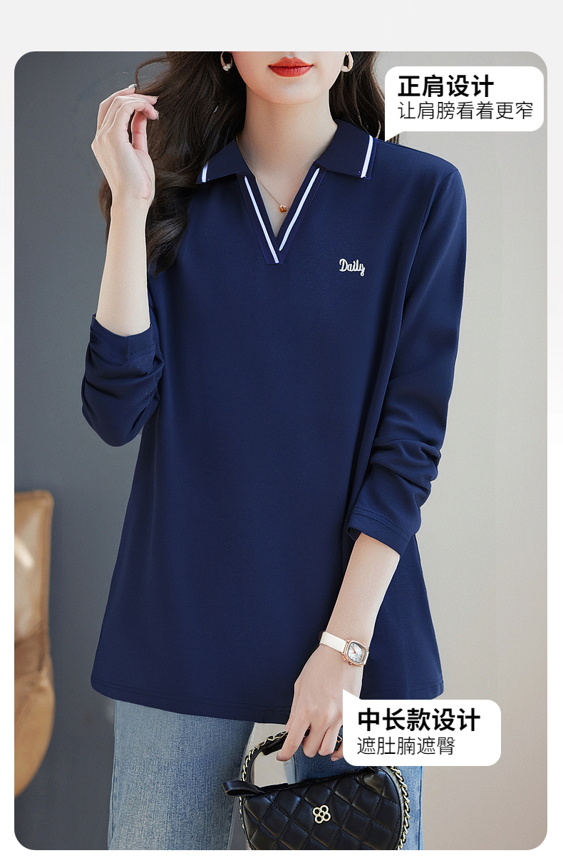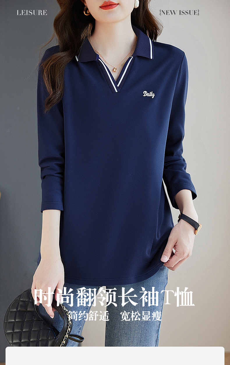 翻领长袖t恤女秋季2026新款胖mm宽松大码女装显瘦POLO衫洋气上衣