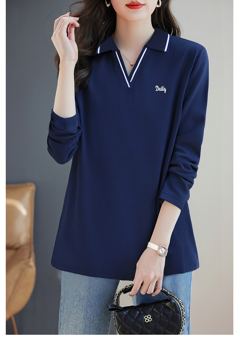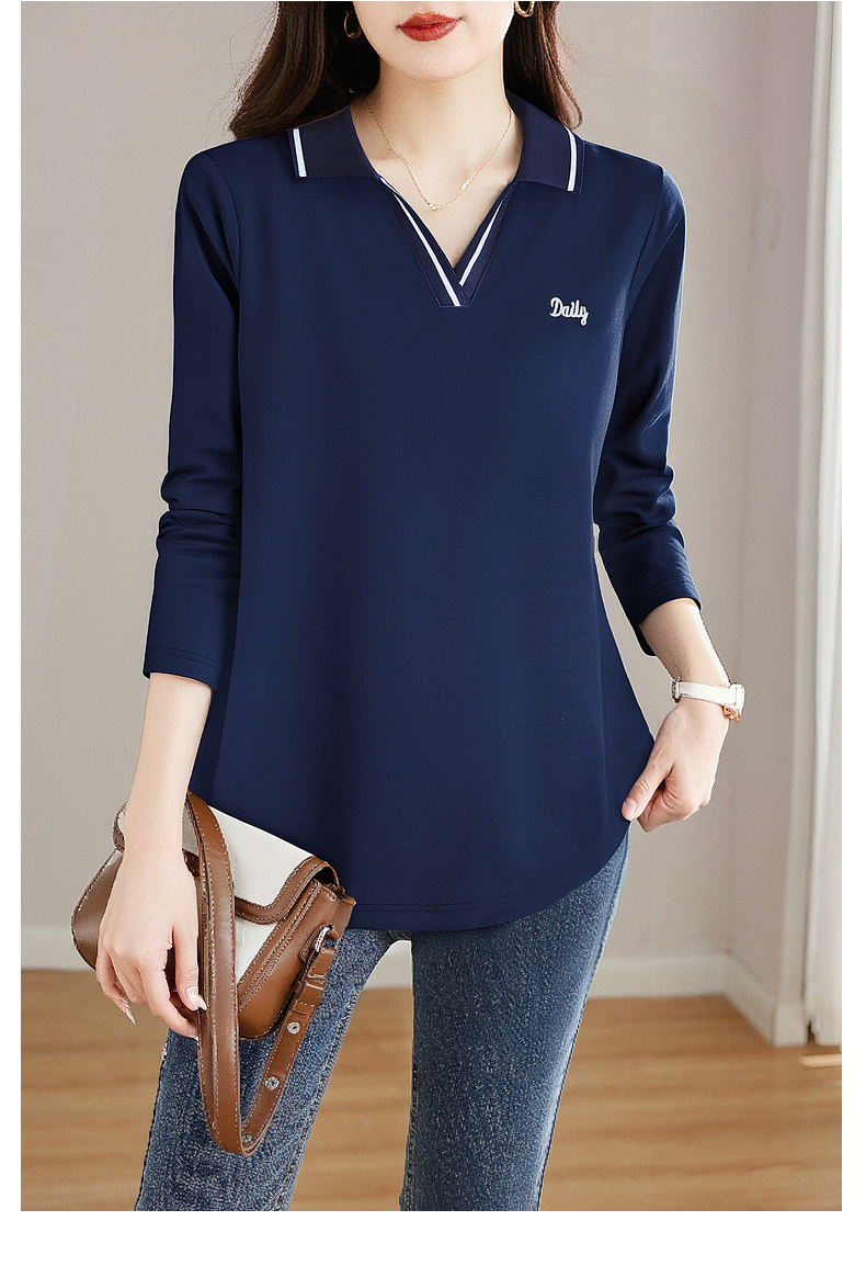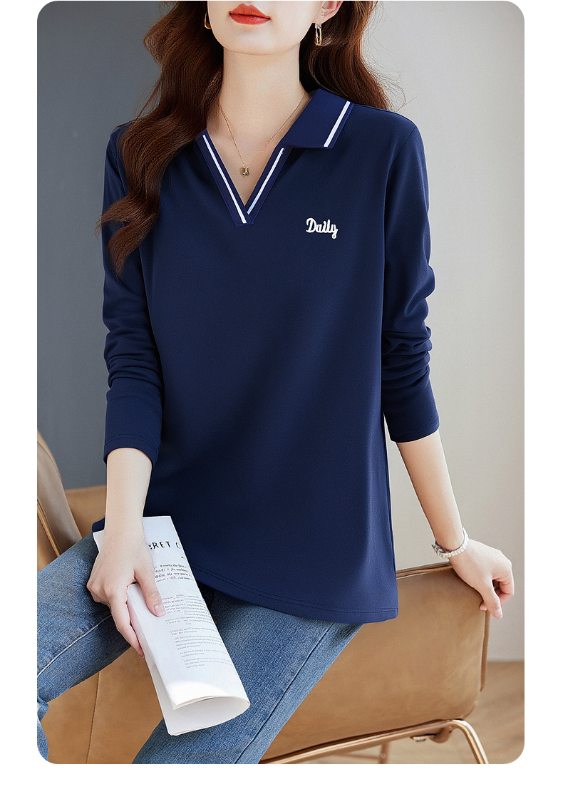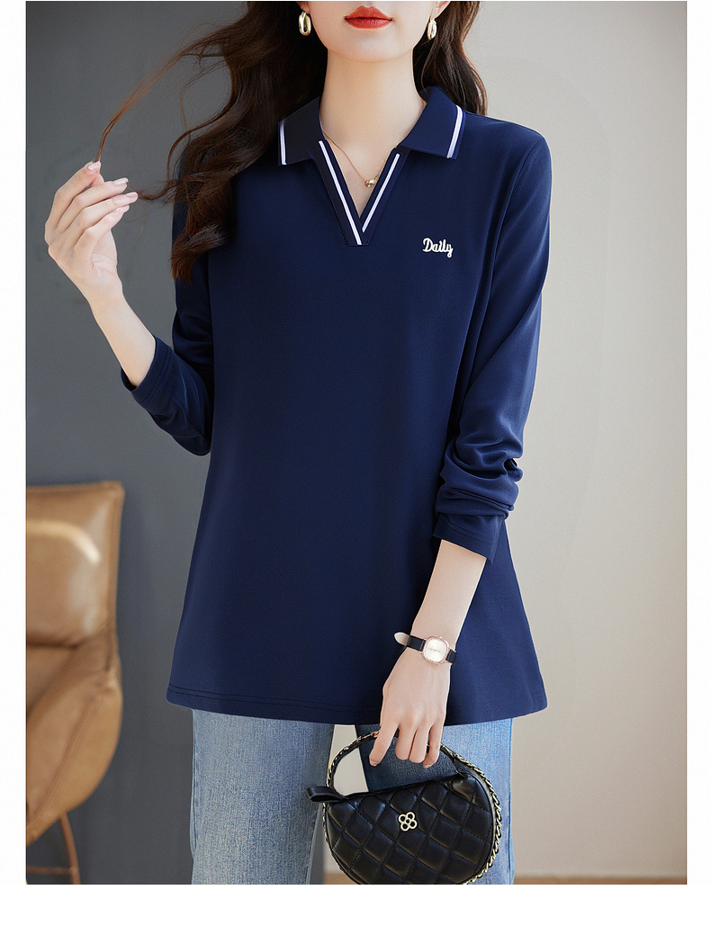 翻领长袖t恤女秋季2026新款胖mm宽松大码女装显瘦POLO衫洋气上衣
