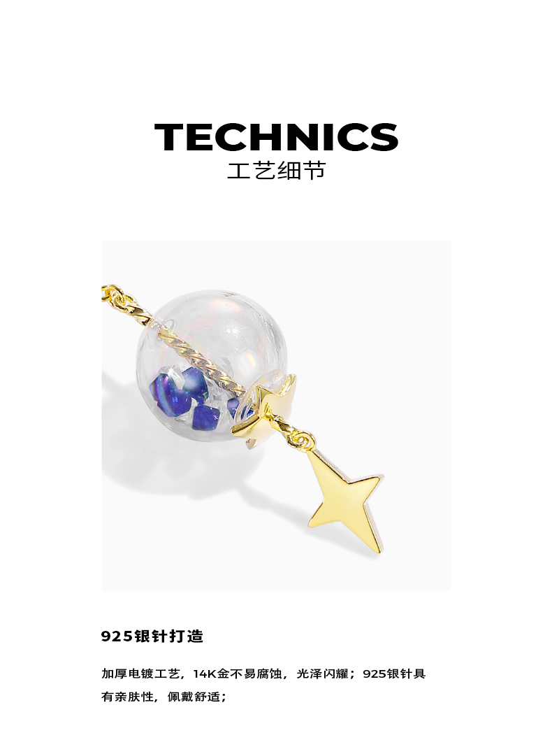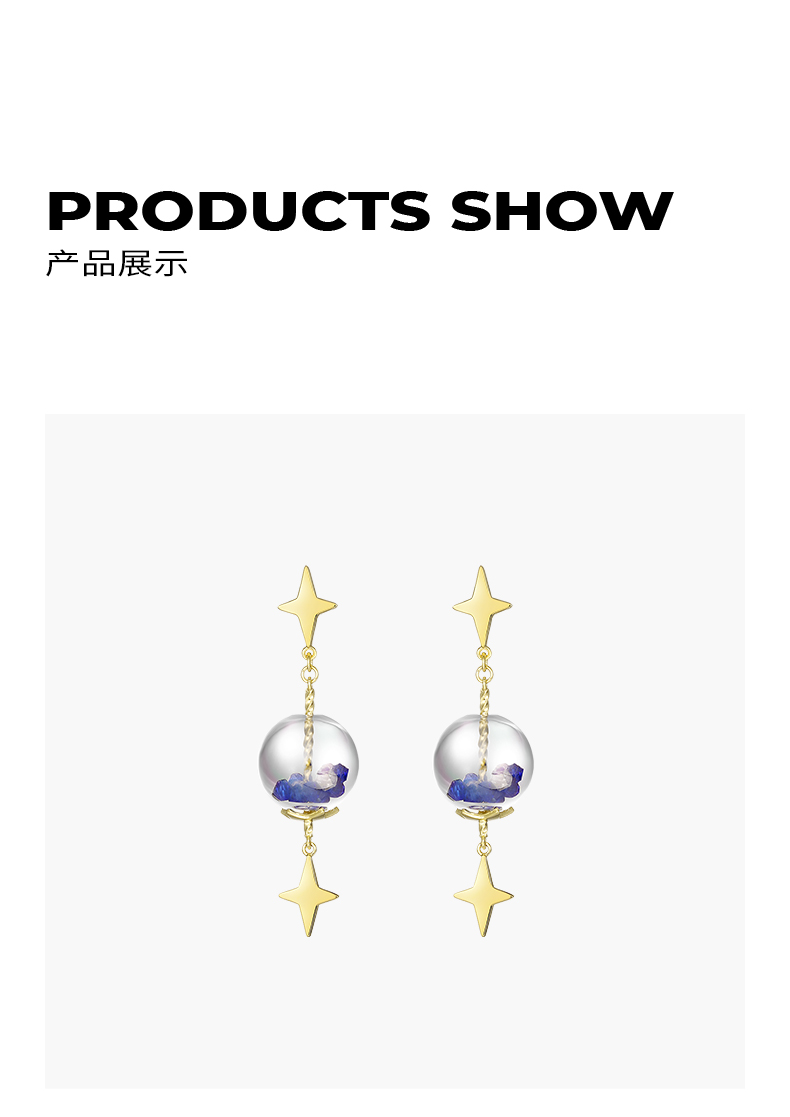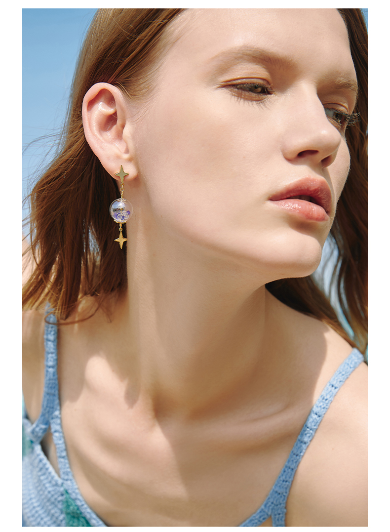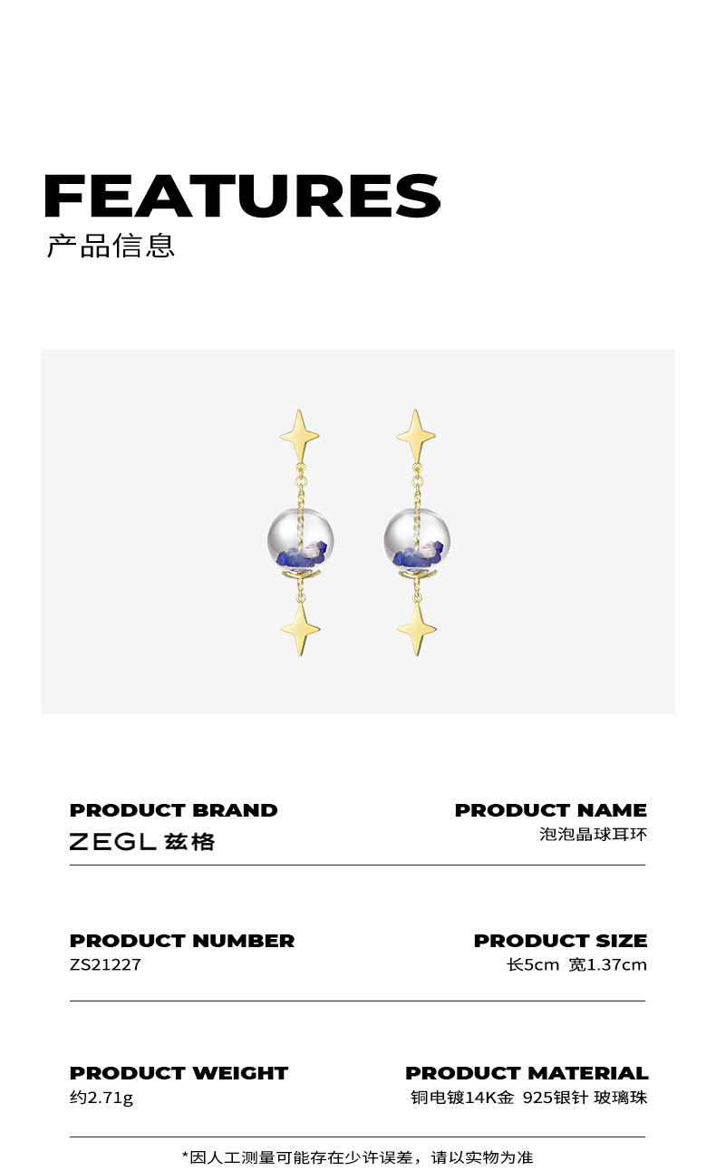 ZEGL设计师泡泡晶球耳环女夏个性小众星星耳坠耳钉925银针耳饰品