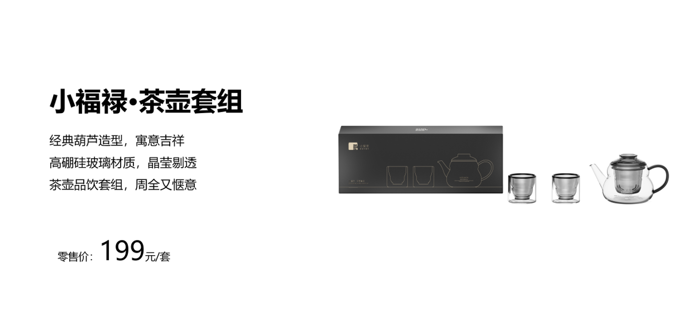 小罐茶小福禄·茶壶套组-茶壶530mL、茶杯*2*95mL 高硼硅玻璃材质