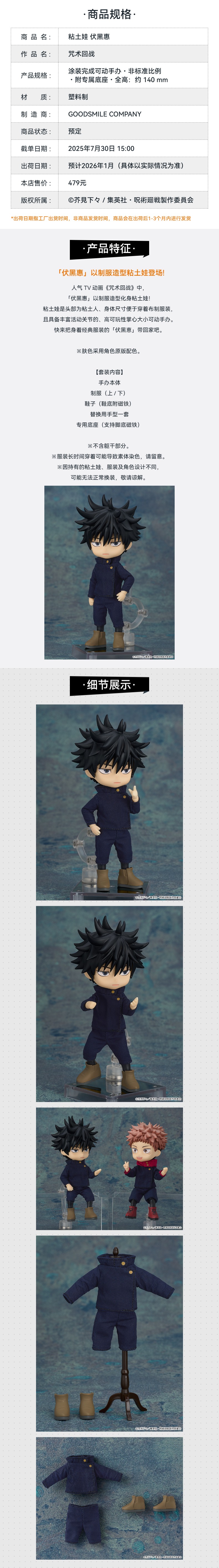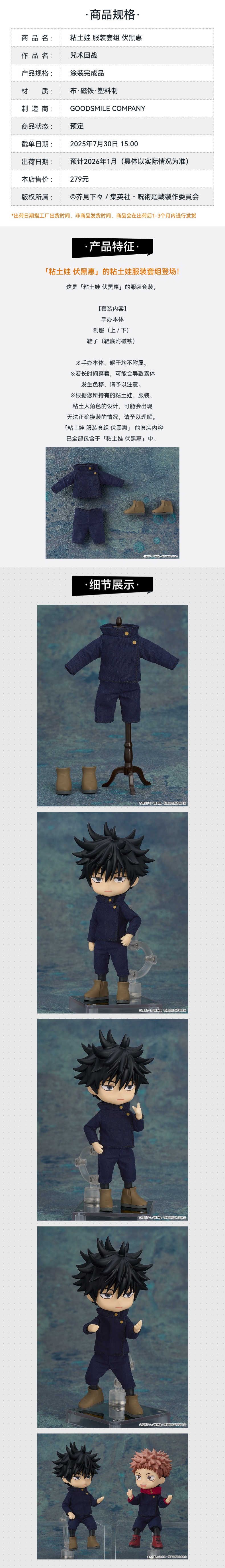 【GSC现货】粘土娃 伏黑惠/服装套组 咒术回战