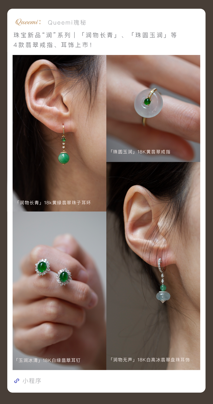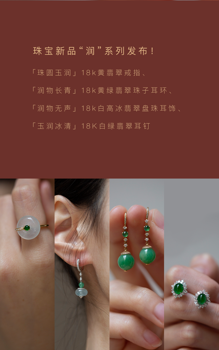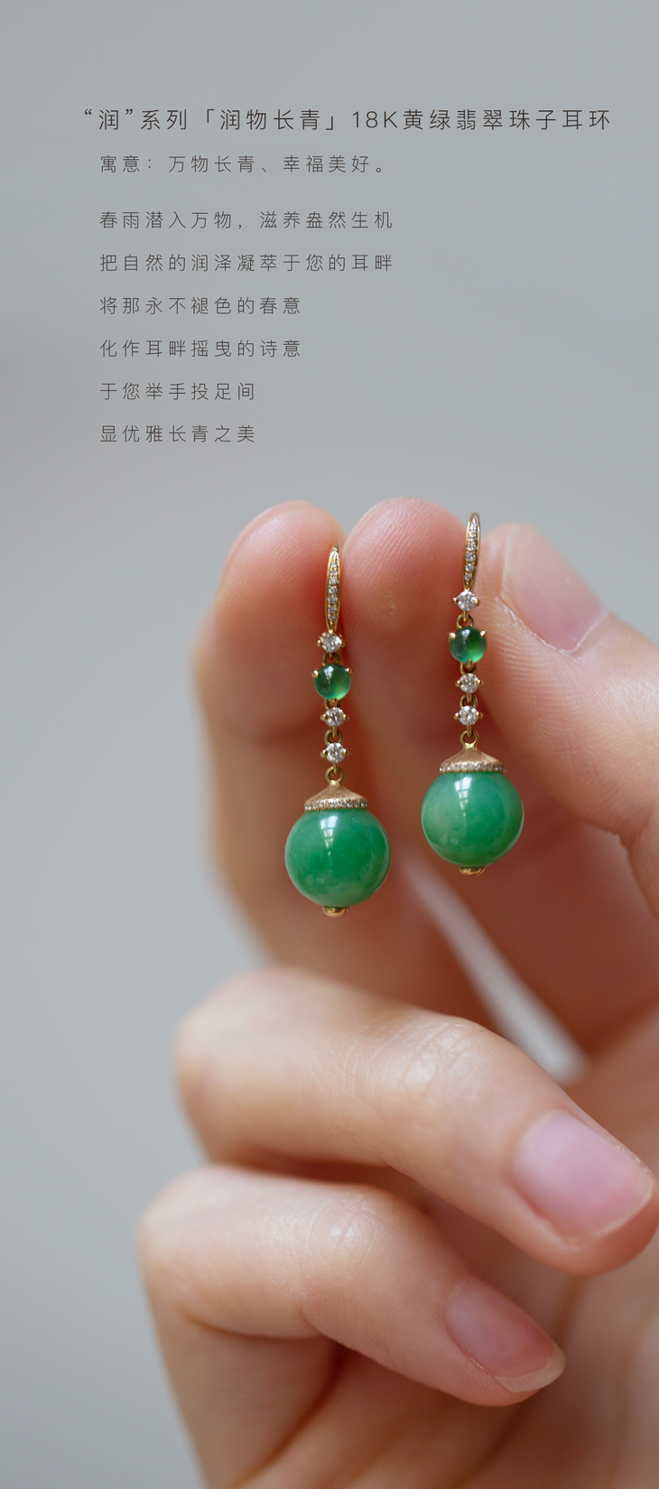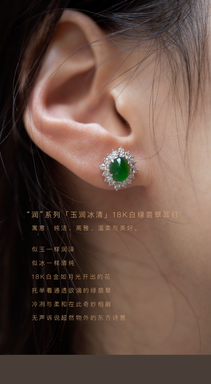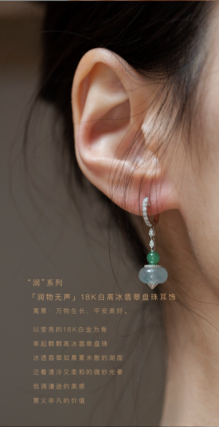 ”润”系列「润物无声」18K白高冰翡翠盘珠耳饰