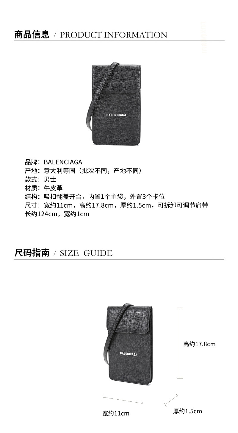 Balenciaga/巴黎世家 2021款 男士牛皮革单肩斜挎包手机包 640536 1IZI3