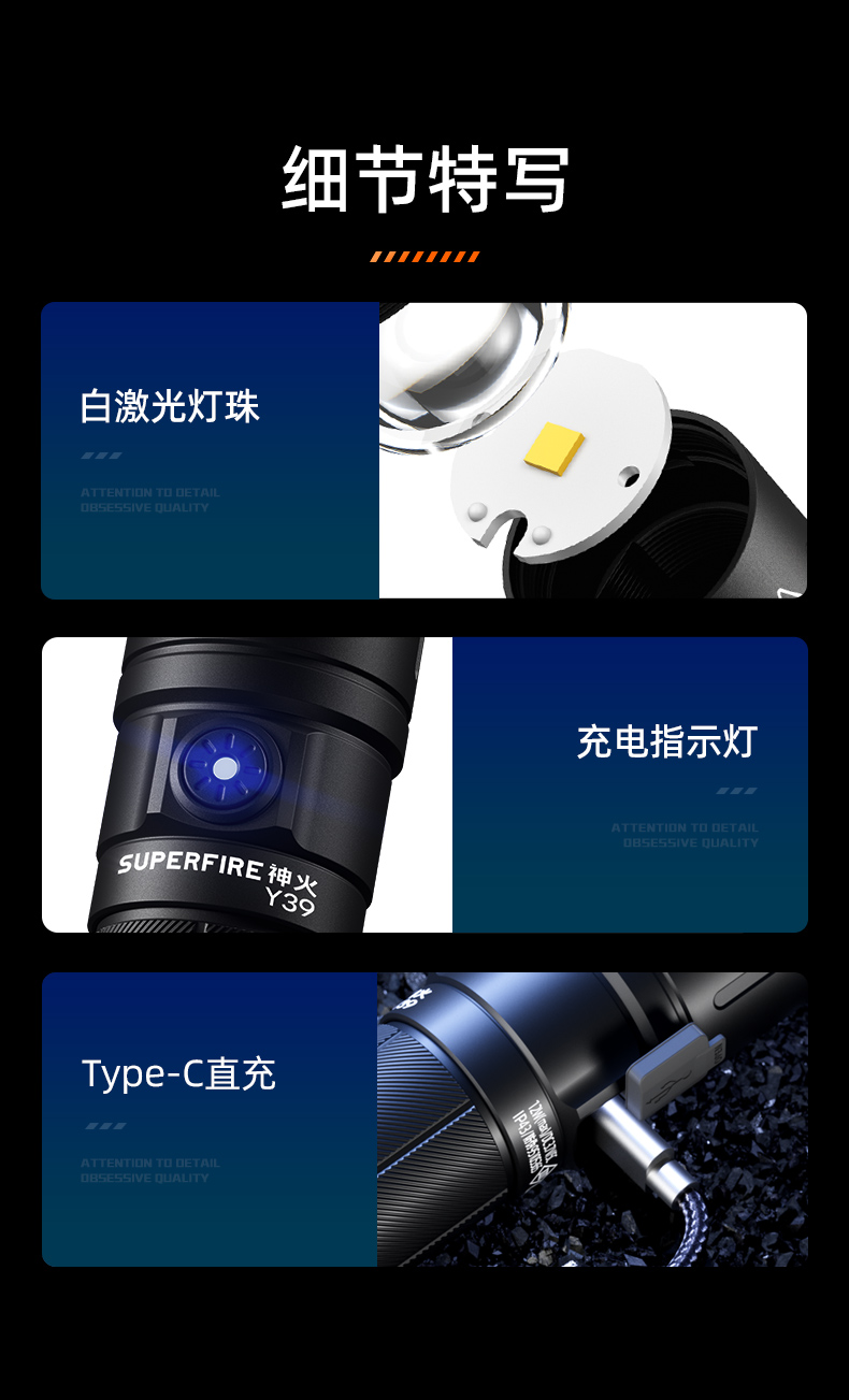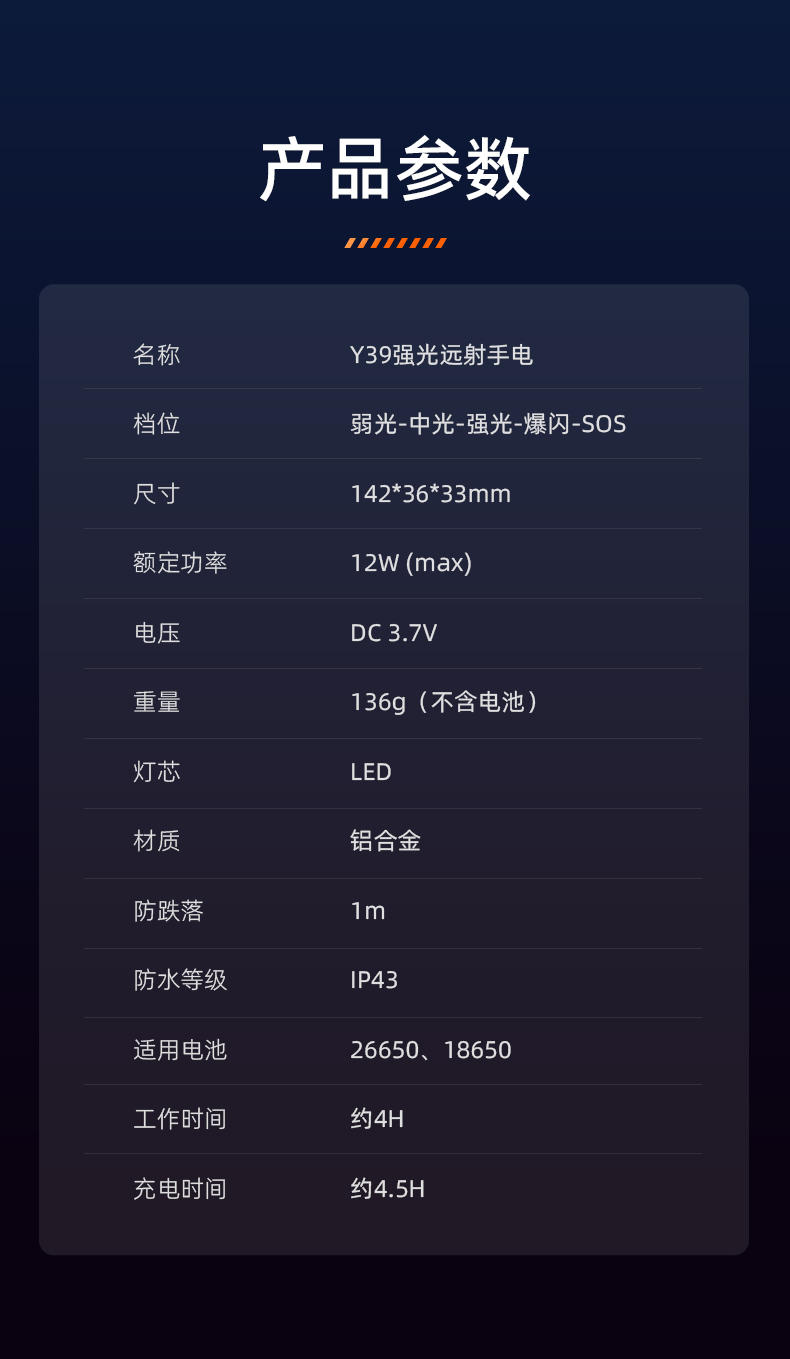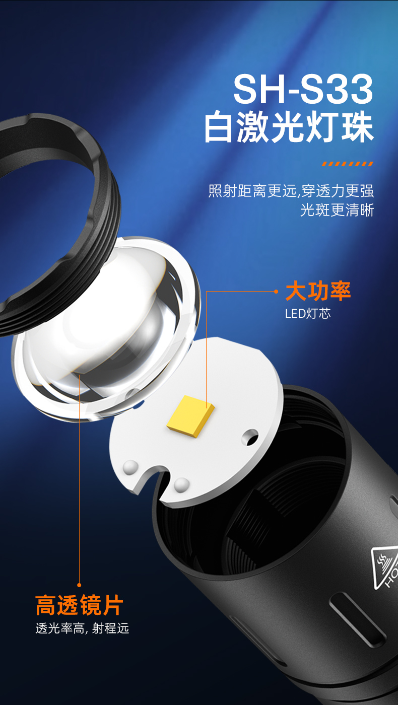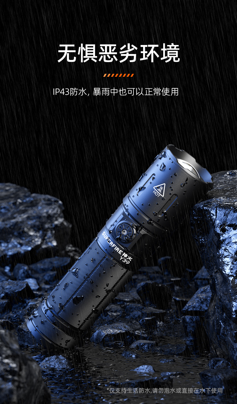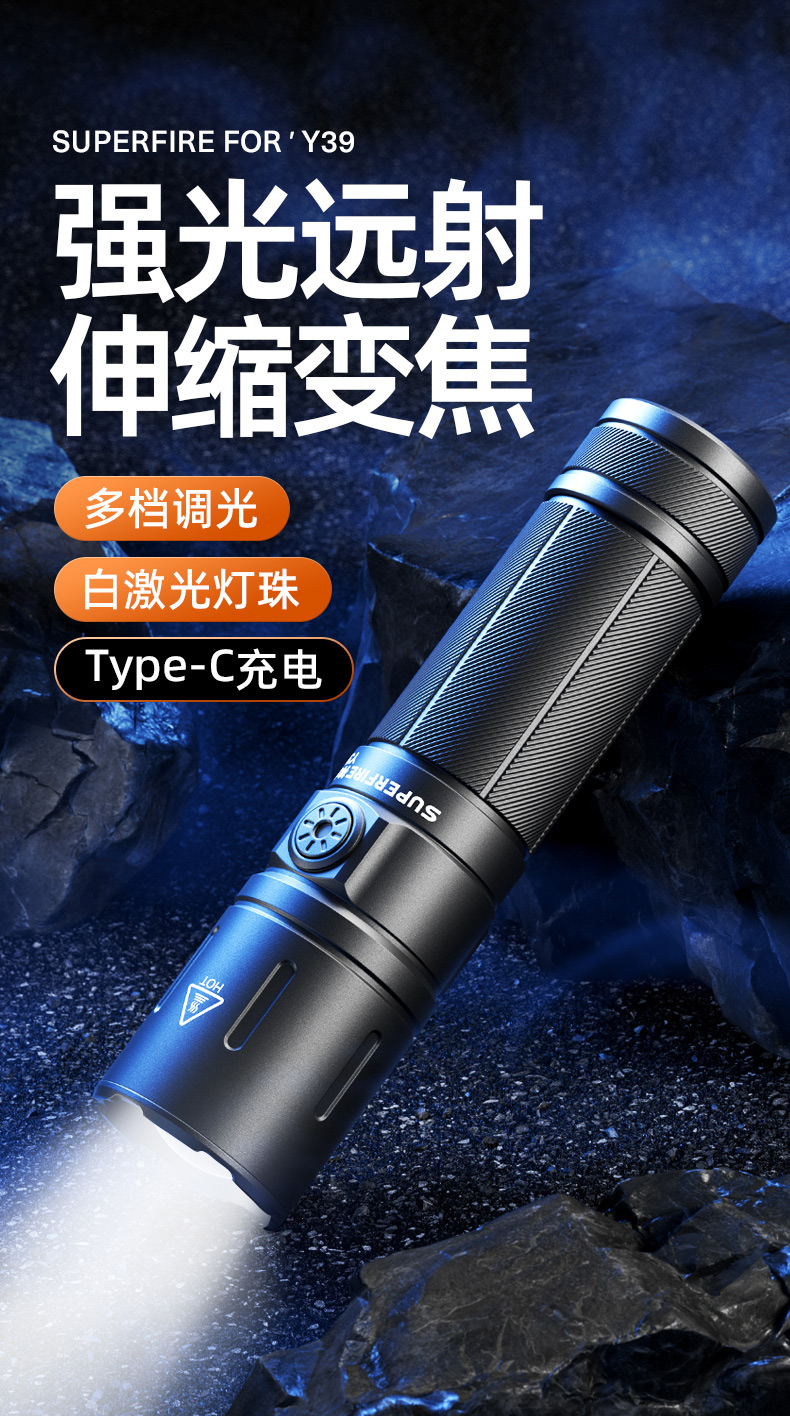 神火强光手电Y39高亮白激光远射变焦超长续航户外家用照明装备