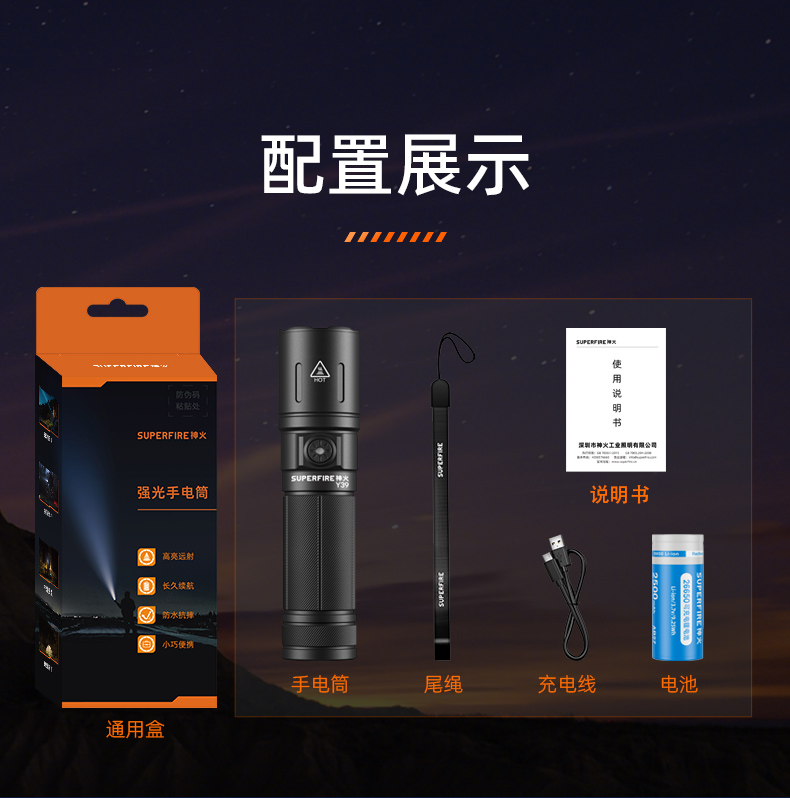 - 神火SUPERFIRE是集研发,生产,销售,服务于一体的综合型高科技企业。秉承创新为本,市场为导向,质量求生存,服务社会为宗旨的经营理念持续发展至今。国内国外热销100多个国家和地区深受广大消费者青睐