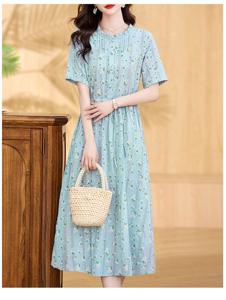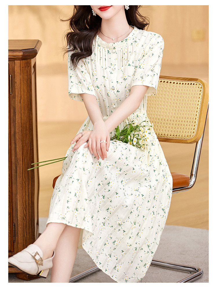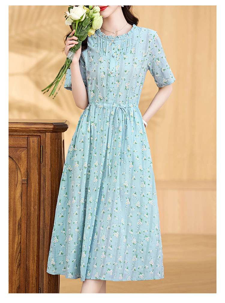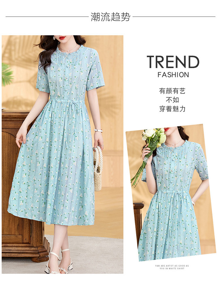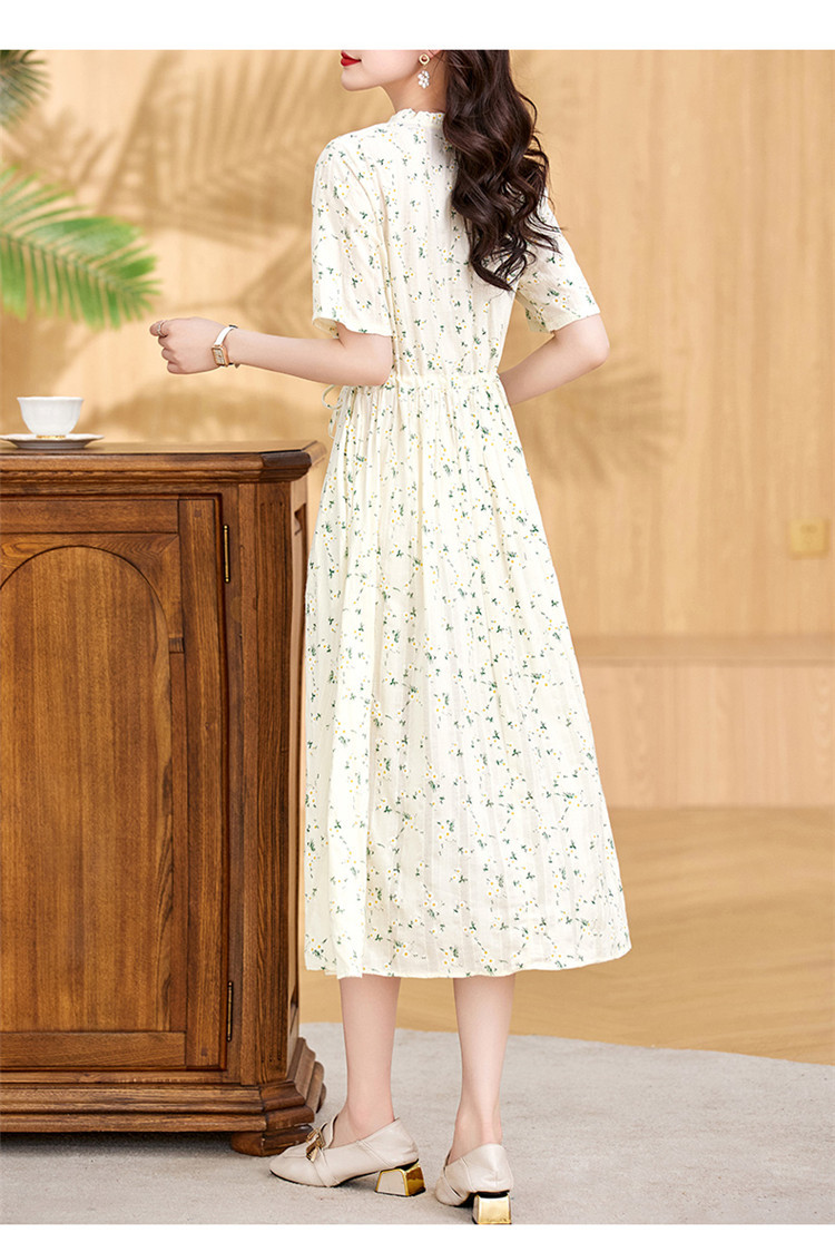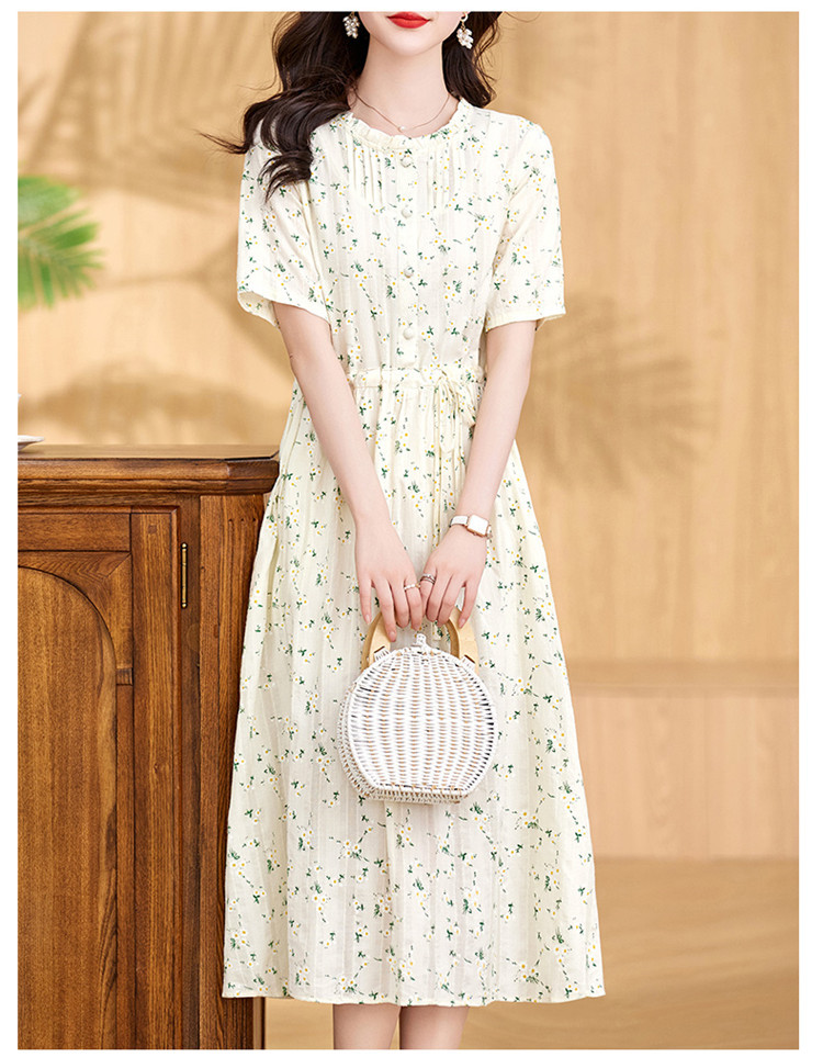 气质清新,拼接花边收腰显瘦女神范碎花棉麻连衣裙HR-WX207-19